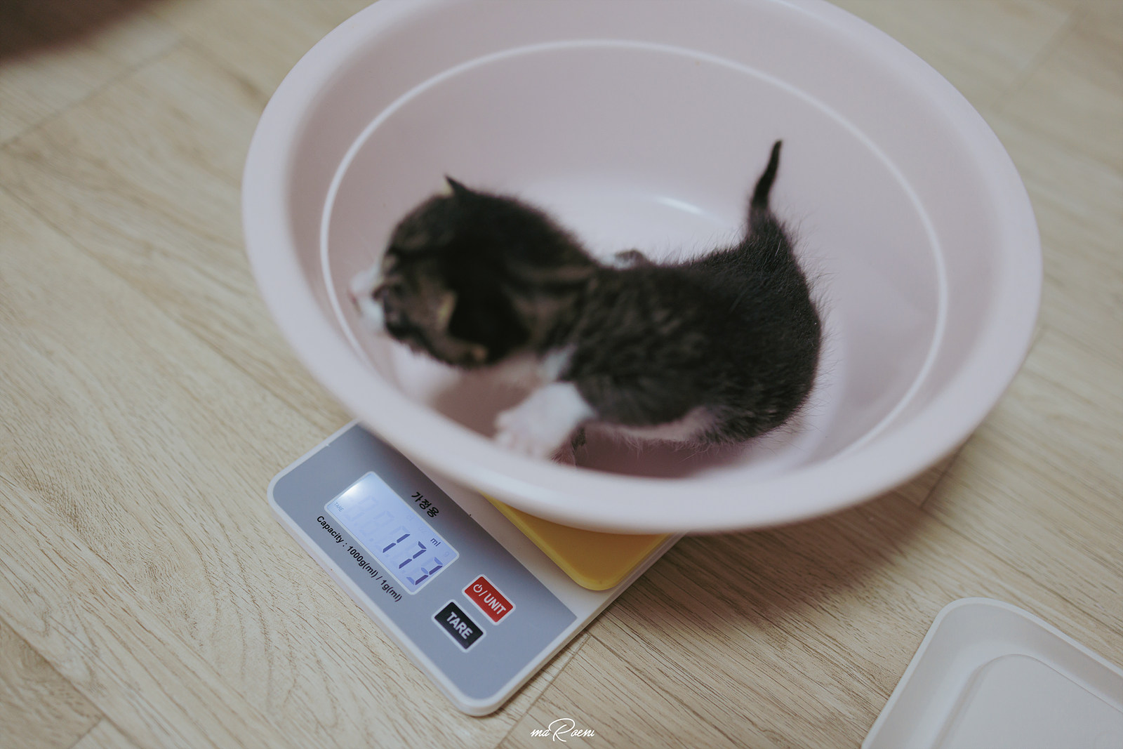 2~3주차에 접어든 오늘! 무게를 확인해보니 171g 정도더라. 보통 이맘때쯤 200g을 넘어가야 한다는데 얘는 너무 못먹어서 그런지 무게가 살짝 덜 나가는 것 같다. 그래서 3시간마다 한번씩 깨워서 분유를 주고 살짝 돌아다니게 해 준 다음 다시 잠재우는 것을 반복하고 있는 중이다.
