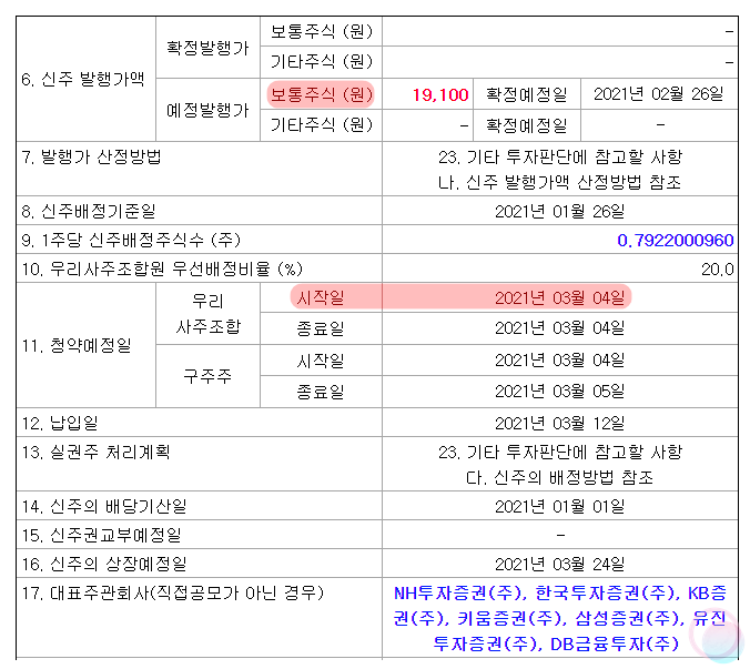 2. 배정수량x발행가를 계산하여 주식 계좌에 입금(현재는 예상가, 26일에 발행가 확정일입니다.)