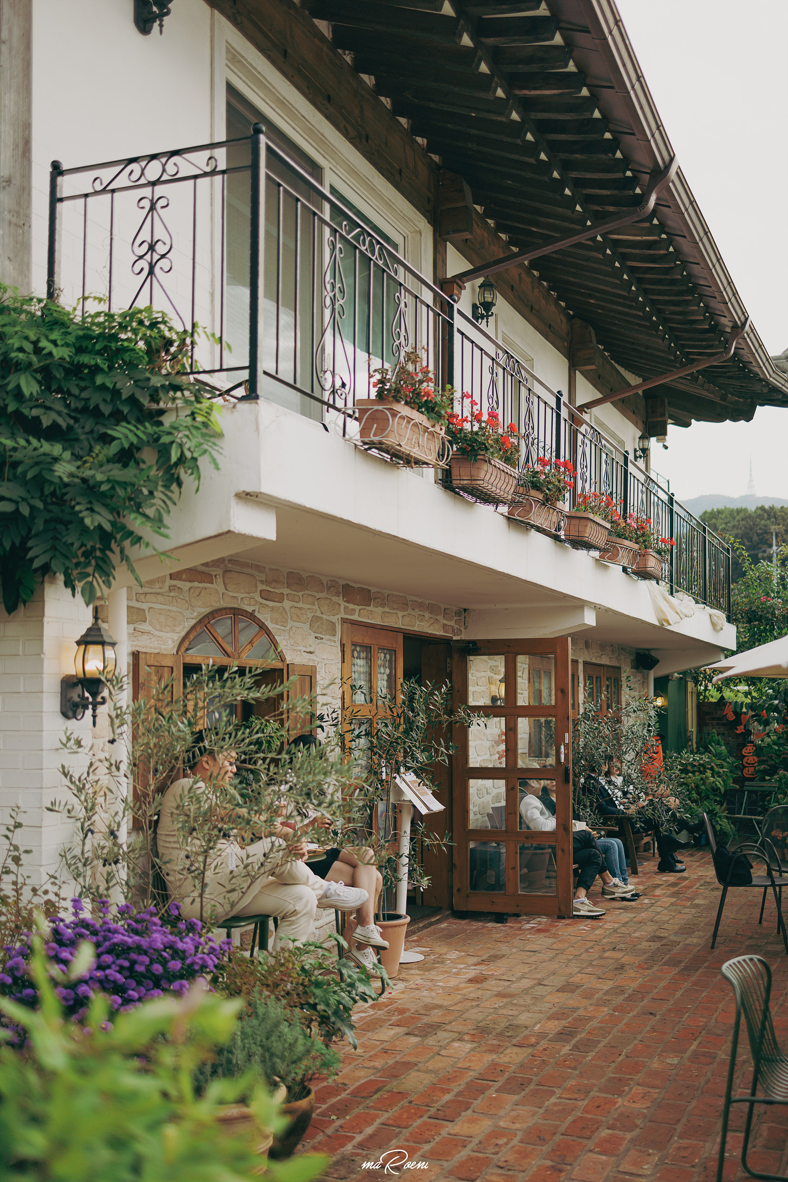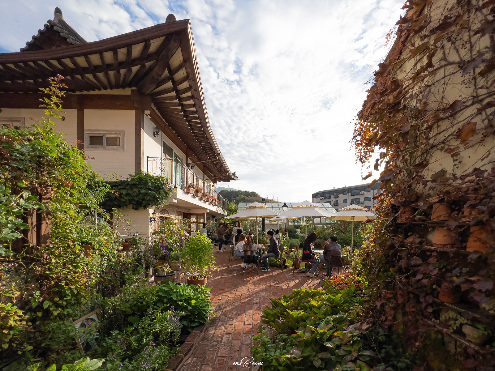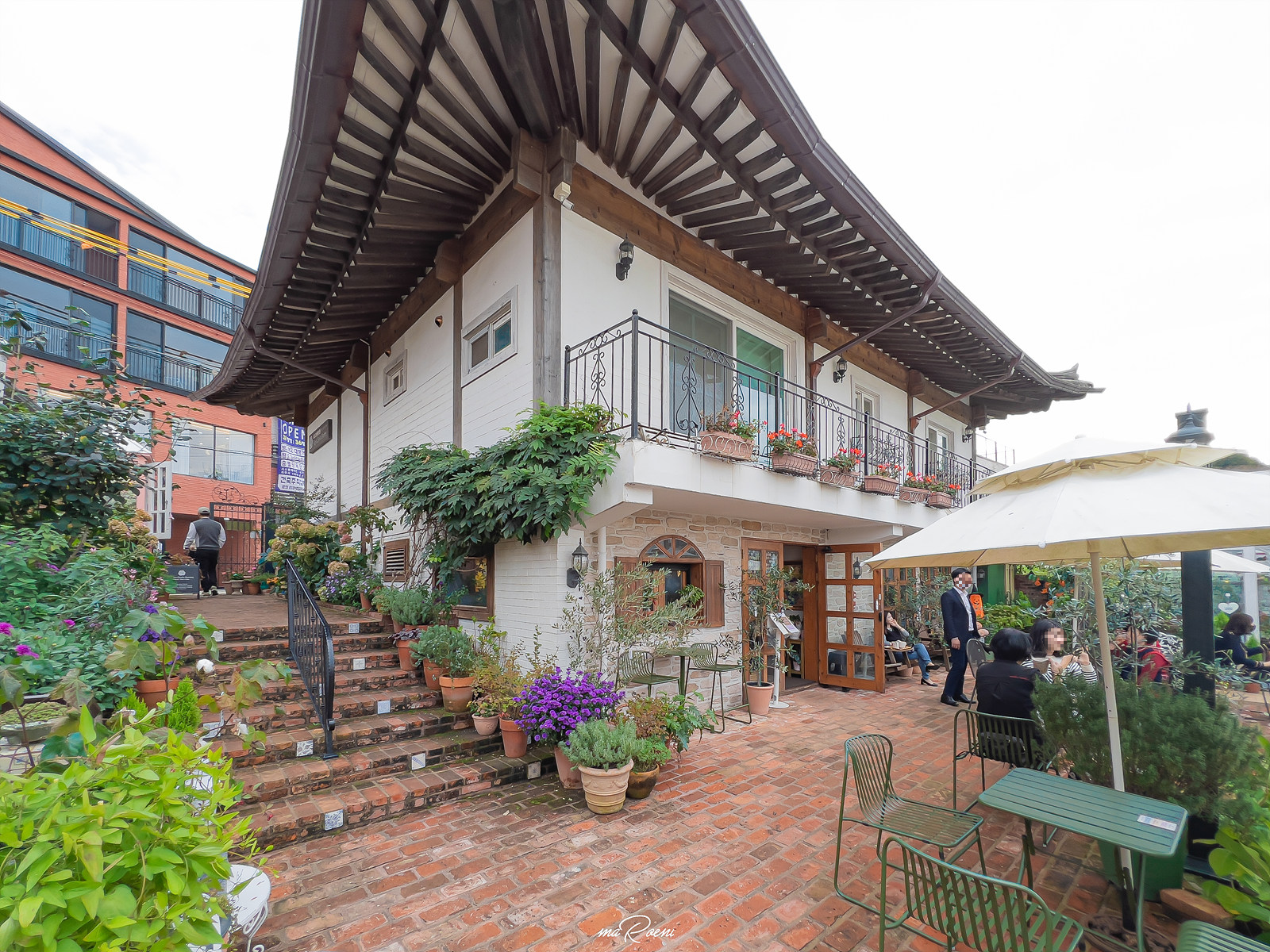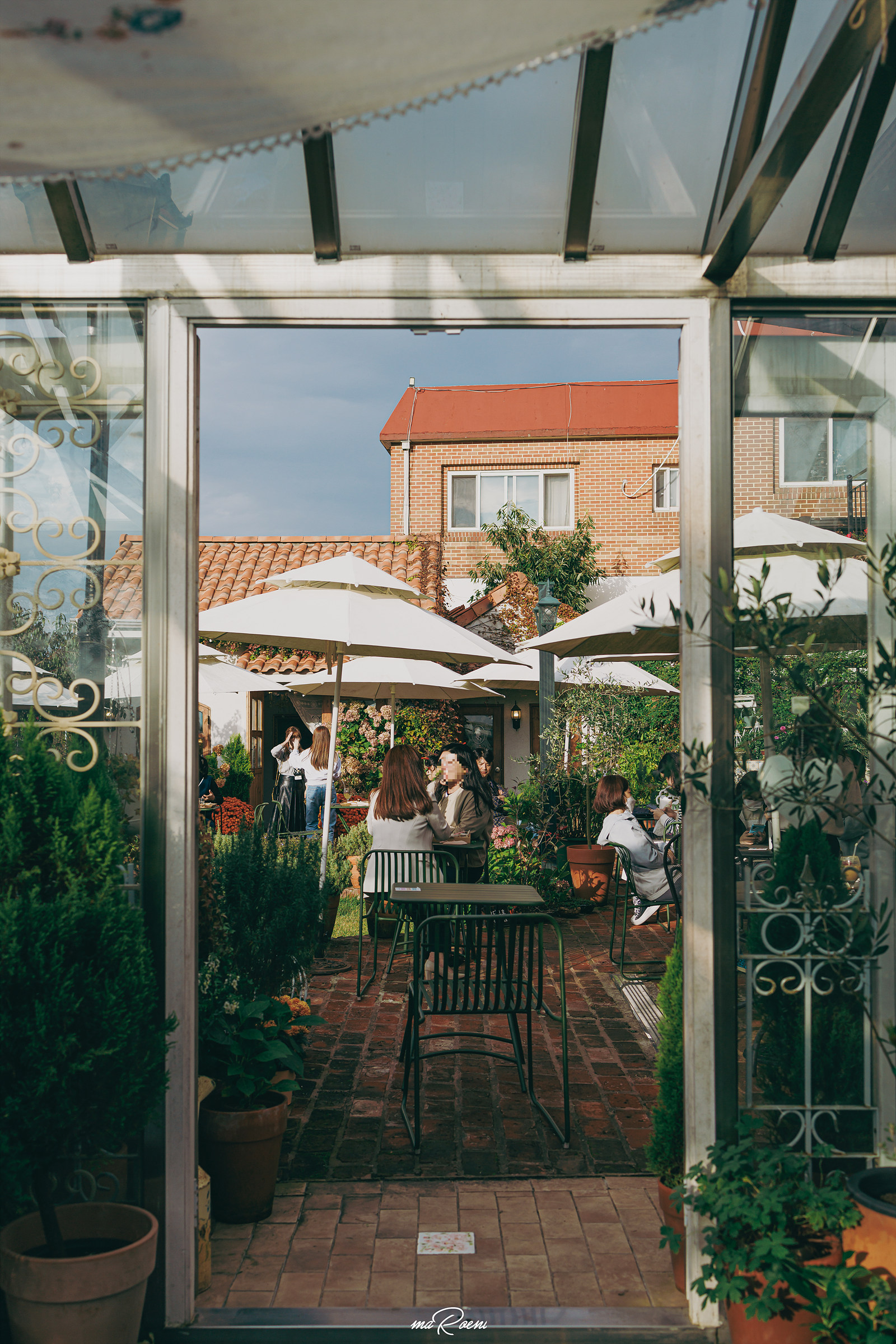 입구는 제법 허름해 보여서 살짝 긴장했었는데, 안으로 들어가 보니 유럽에 온 것 같은 느낌이 들었을 정도로 아름다운 정원이 눈앞에 펼쳐졌다. 마당에는 7개 정도의 테이블이 있었고 메인 건물인 카페를 제외하고 양쪽으로 온실과 수국 포토존이 있는데, 자세한 내용은 아래에서..