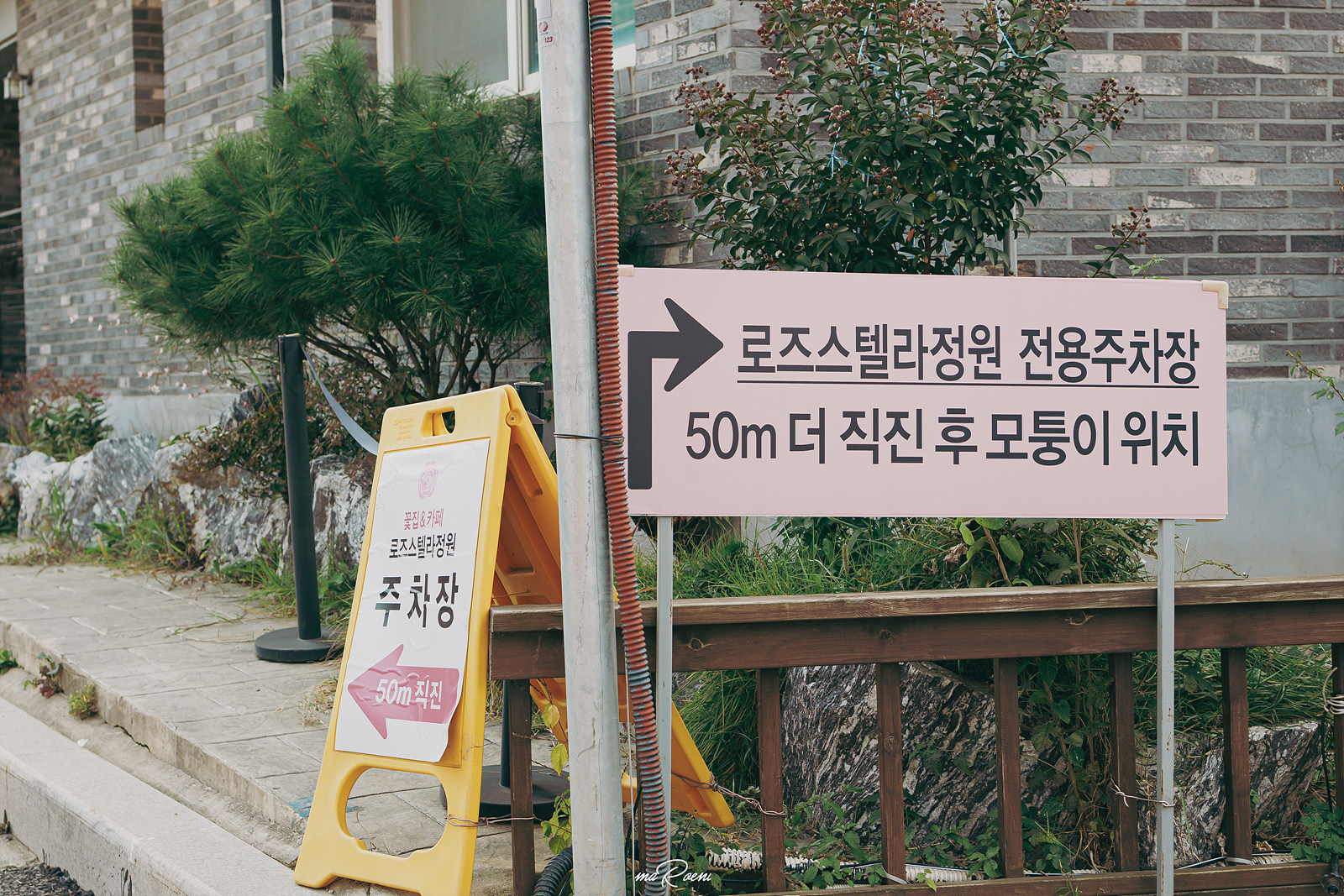 다시 본론으로 돌아와서.. 아무튼 로즈스텔라정원은 입구에 차량 3대정도 주차할 수 있으며 카페 주변에 로즈스텔라정원 전용주차장도 있으니 주차는 그렇게 어렵지 않은편이다. 카페는 로즈스텔라정원 주차장 바로 아래에 있다.
