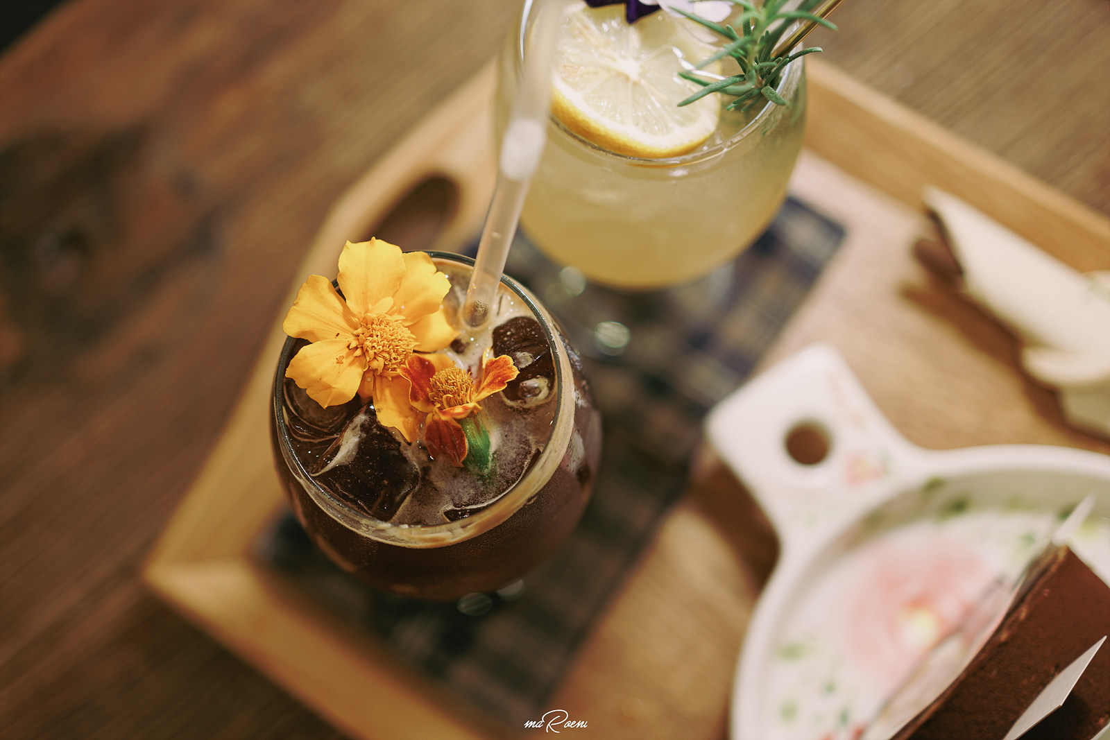 주문한 메뉴 등장! 메뉴를 받아보는 순간 입이 떡 벌어지더라. 차 위에 꽃들과 허브가 올려져 있는데 데코가 어쩜 이리도 예쁜지! 보통은 카페에서 음료가 나오면 대충 찍고 바로 흡입하는 스타일인데, 이날만큼은 그럴 수가 없었다. 여기서도 한컷, 저기서도 한컷.. 음료 들고 여기저기 돌아다니느라 정말 바빴던 것 같다.