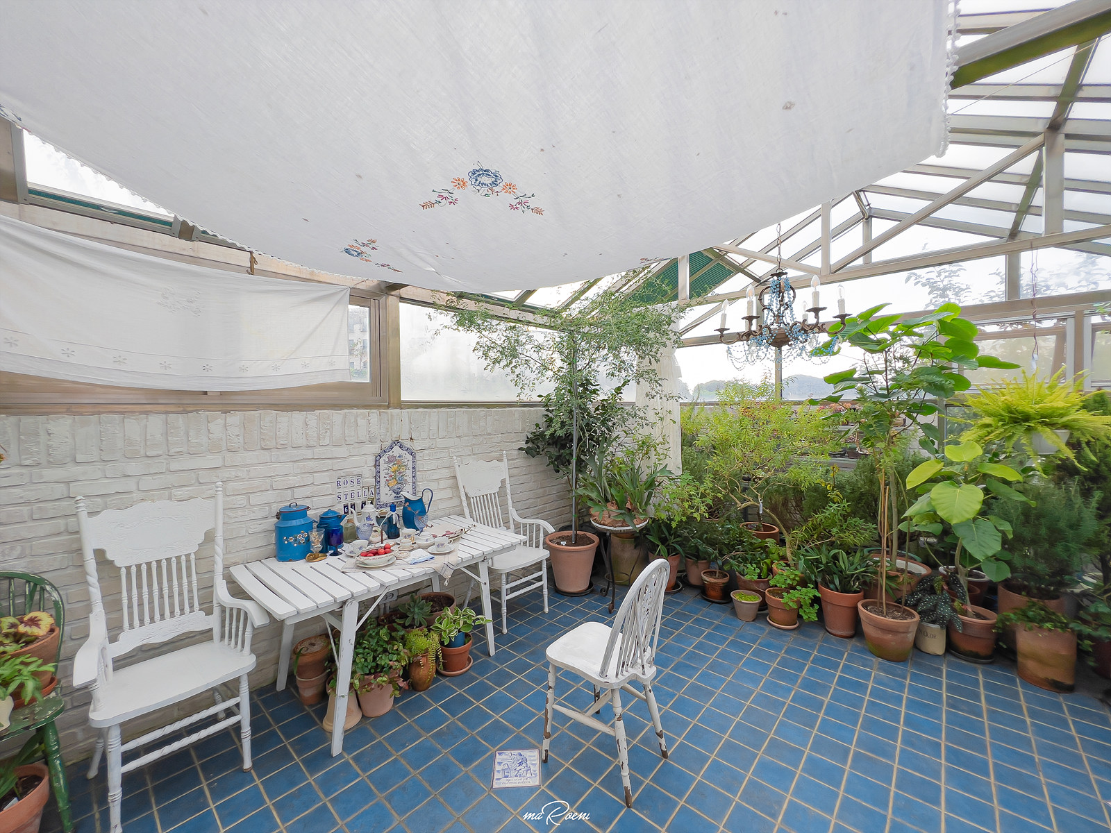 화장실 타일이 깔려있는 이곳은 온실 느낌으로 꾸며진 공간이다. 참고로 수국방에서도 음료를 마실 수 없고, 이곳에서도 음료를 마실 수 없다. 고로 사진이나 잔뜩 찍고 가셔요~ 라는 목적으로 만들어진 공간이라고 볼 수 있겠다. 남들이 말하길.. 산토리니에 와있는 것 같다니.. 유럽풍이니.. 그러던데, 사실 여긴 그렇게 임팩트가 큰편은 아니다. 오히려 수국방보다 별볼일이 없었음.