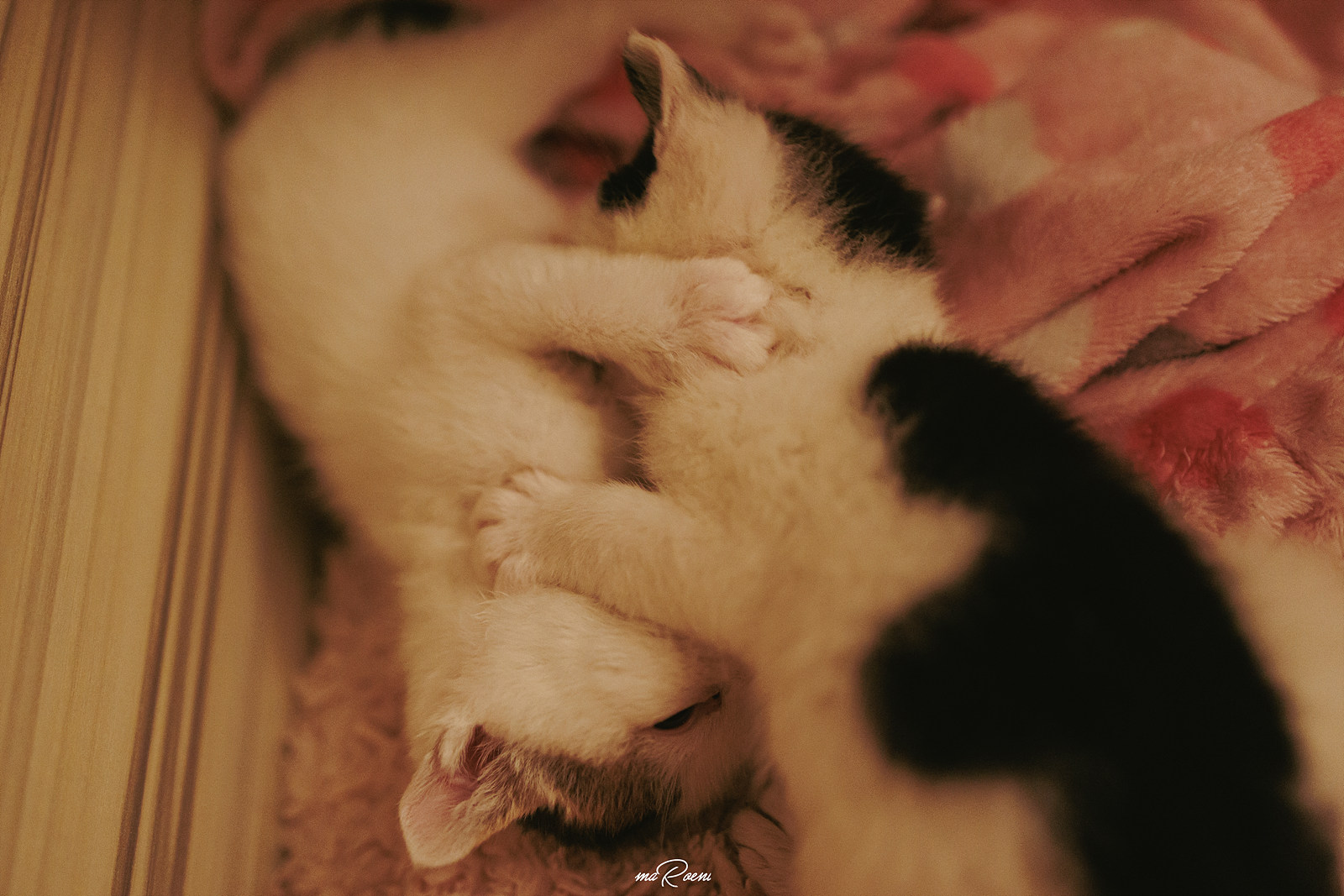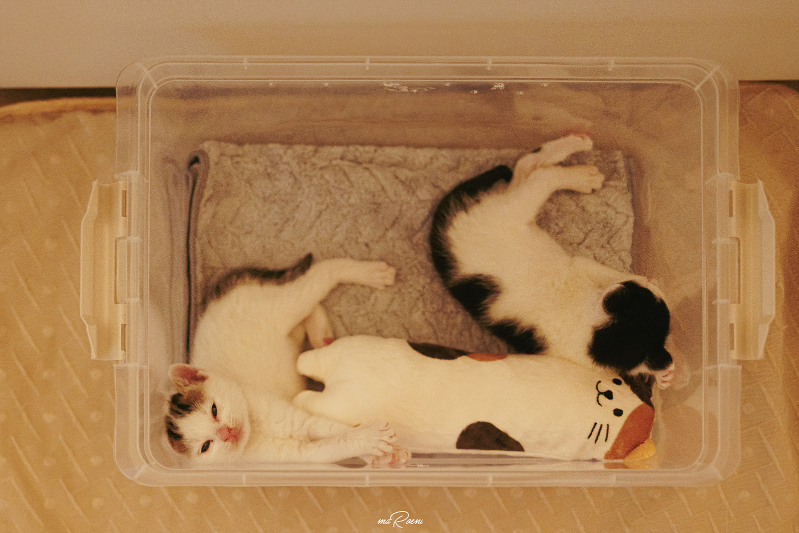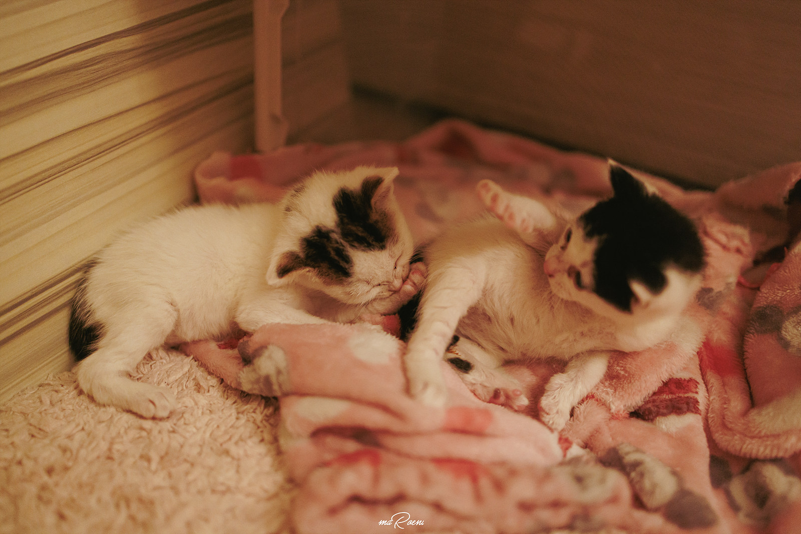아무튼! 일단은 급한대로 집으로 데려왔는데 아무것도 먹지 못해서 그런가, 다 쉬어가는 목소리로 사람을 경계하던 녀석들. 하지만 봄이를 보호했을 때처럼 따땃한 분유와 함께 봄이가 일주일동안 지냈었던 뜨끈한 핫팩자리를 선사하니 언제 그랬냐는듯 조용히 잠을 자더라.