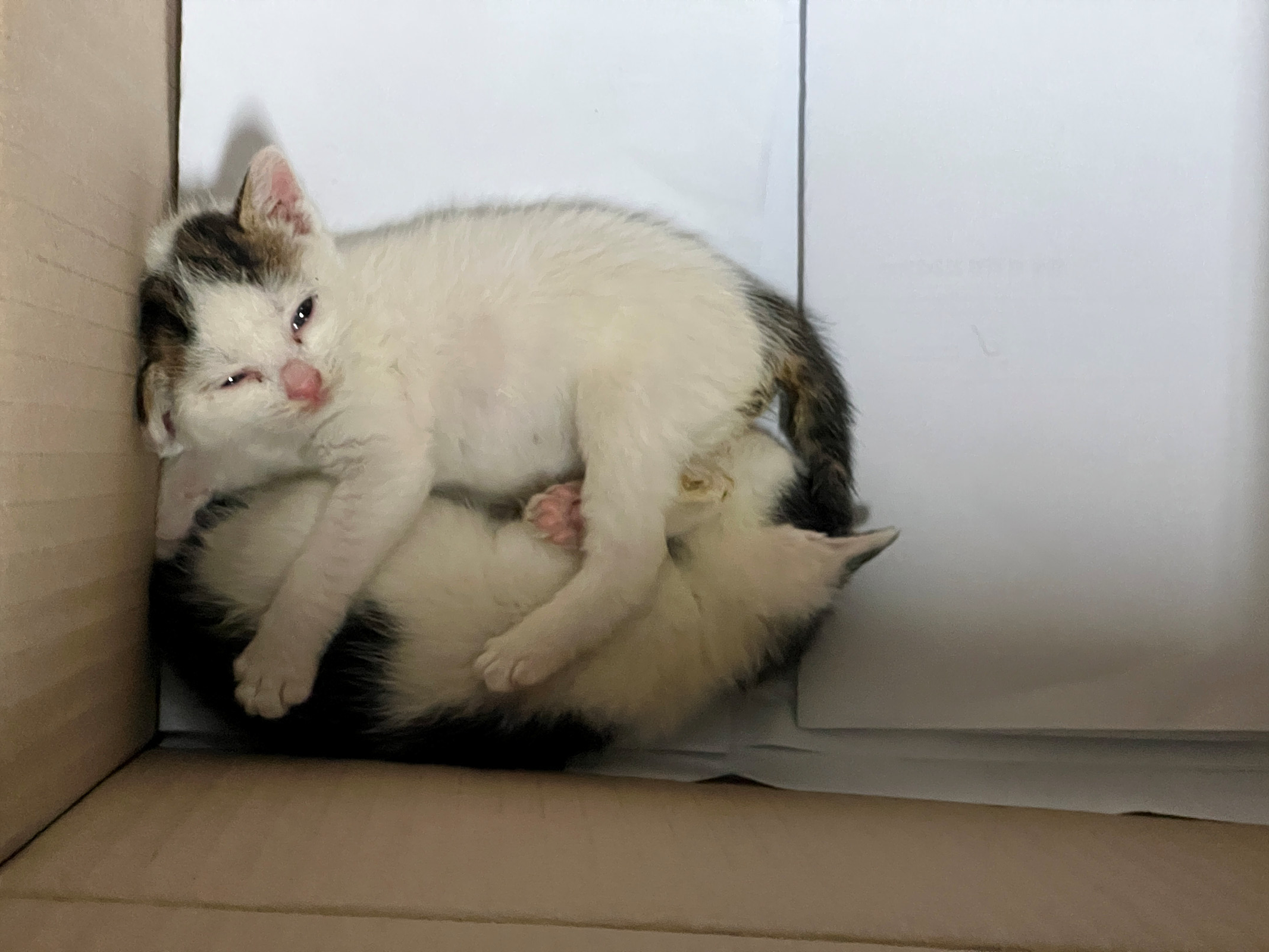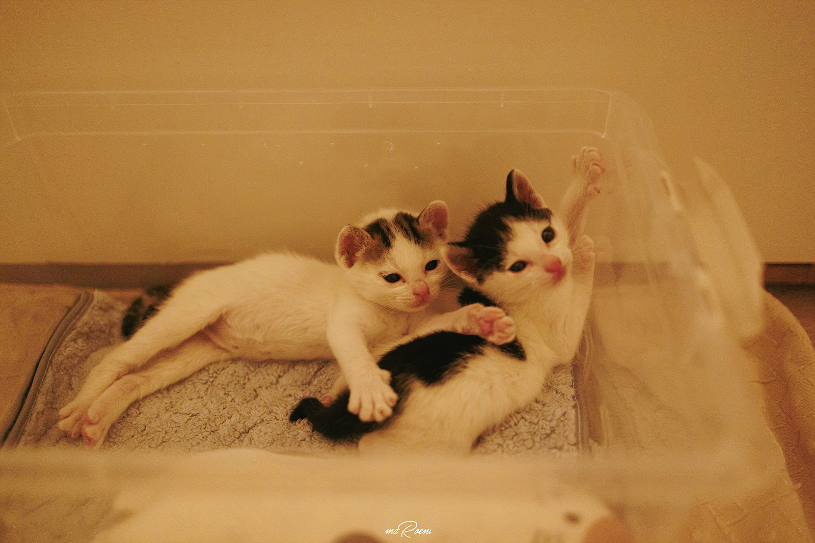 문제는 모든 새끼를 데려간게 아니라는 것.. 이번에는 사진 속 두마리를 버려두고 갔다. 목요일부터 보이지 않던 어미는 결국 금, 토, 일요일 모두 새끼들이 버려진 곳에 나타나지 않은 것 같았다. 월요일에 출근을 하니 녀석들은 박스를 벗어나 창고를 돌아다녔는지 몸이 새까맣게 변해있었고 서로의 체온에 의지한 채 구석에 머리를 박고 바들바들 떨고 있었다. 화가 머리끝까지 났다. 버릴꺼면 우리가 케어했던 봄이나 버리고 갈 것이지.. 왜 아무런 죄가 없는 애들을 이렇게 버리고 간건지.. 정말 고양이라는 녀석들의 머릿속은 알다가도 모르겠다.