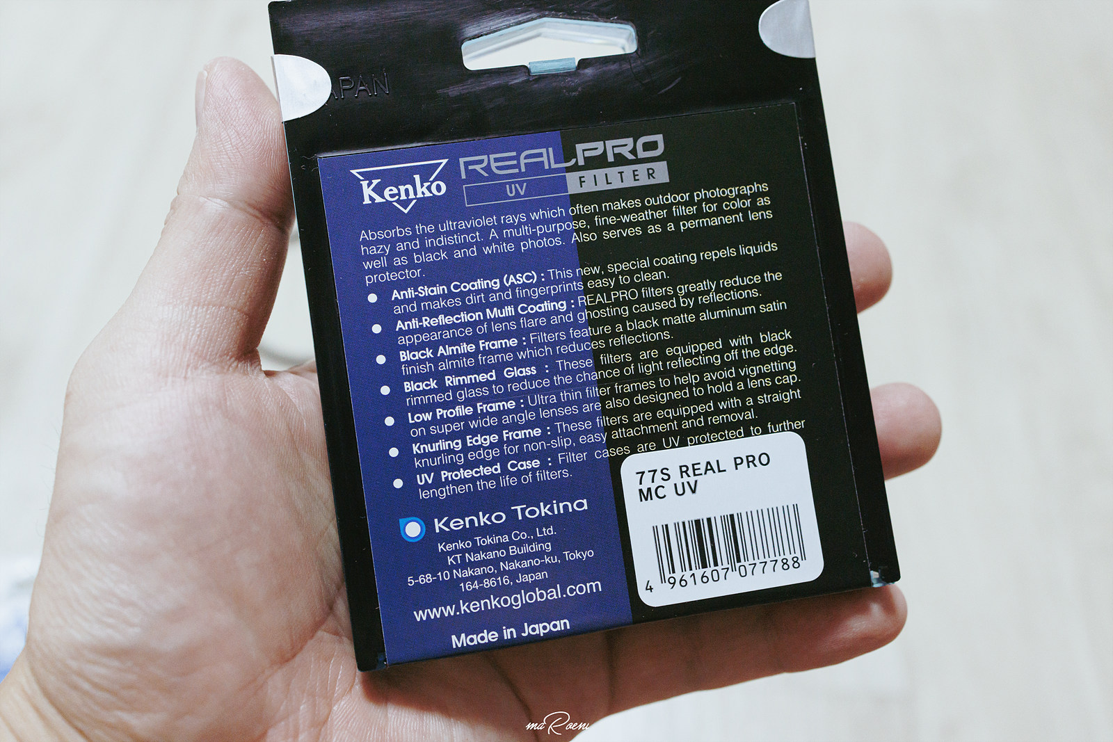서론이 길었는데, 사실 나는 가격적인 부분 때문에 줄곧 겐코 MCUV 필터만 사용해왔었다. 렌즈알 보호도 나름 잘 되고 화질면에서 크게 손해를 보는 것 같지 않았기에 무덤덤하게 사용했었다. 근데 UV 필터나 MCUV 필터에 가장 큰 단점이 하나 있었는데, 그것은 바로 오염에 상당히 취약하다는 것이었다. 이 두 종류의 필터들은 코팅이 거의 없는 수준이라서 지문이나 먼지가 묻었을 경우엔 닦아내기가 상당히 힘들고 닦아낸다고 한들, 생각처럼 깨끗하게 닦이지 않는다는 문제가 있었다. 그래서 고민 끝에 조금 더 상위의 렌즈 필터를 알아봤고 가성비로 나름 괜찮다는 겐코 리얼프로 렌즈 필터를 구매하게 되었다.