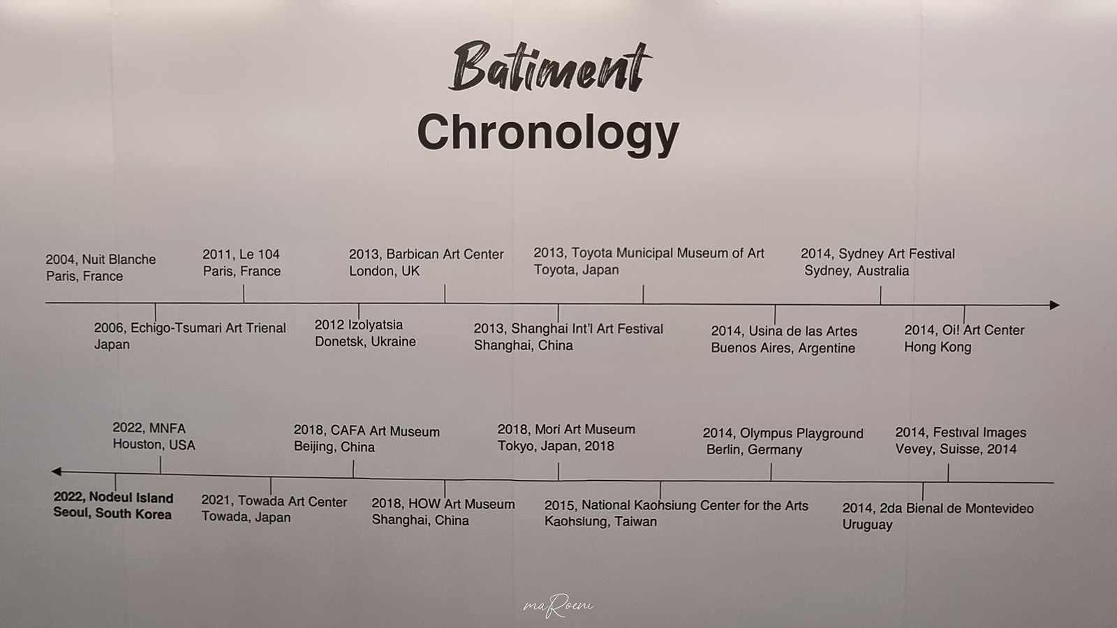 프랑스어로 건물을 뜻하는 '바티망'은 런던과 베를린, 프랑스 등 여러 나라를 투어하고 화제를 모았던 현대미술의 아이콘이라 불리는 레안드로 에를리치의 대표작이다. 그가 말하는 작품의 완성은 관객이 참여하는 것으로 설치미술 속으로 관객이 직접 들어가서 참여하는 것이라고 한다. 관객이 없다면 절대 완성할 수 없는 작품. 그렇기에 작품의 일부를 설치해놓고 관객이 참여할 수 있게 공간을 구성한 것. 설치미술을 간략하게 표현한다면 요런 느낌이 아닐까 싶다.