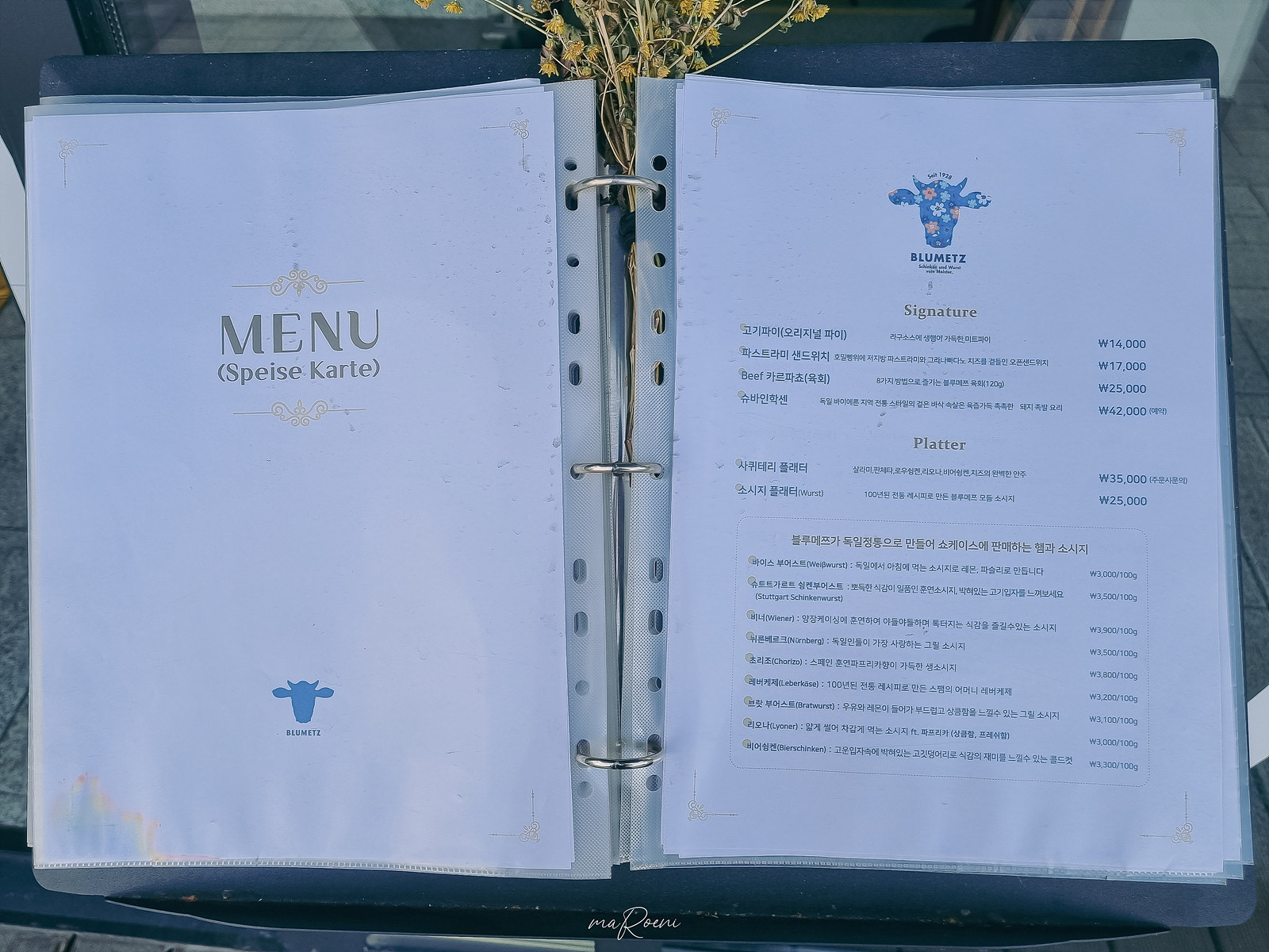 블루메쯔의 메뉴판은 대충 이러하니 가격을 참고하길 바람...