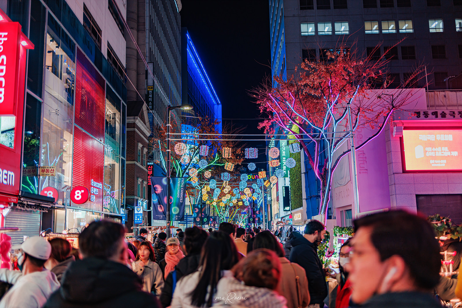 이제 곧 크리스마스라서 그런지 명동거리도 크리스마스 분위기가 넘쳐흐르는 알록달록한 조명들이 설치되어 있었다. 안 그래도 화려한 거리에 형형색색의 조명까지 더해지고, 거기에 관광객들이 채워지니 조용했던 거리에 다시 활력이 찾아왔다. 명동 신세계백화점 본점 미디어파사드에서 5분 정도 걸어오면 되니, 명동거리의 크리스마스 분위기를 만끽하고자 하는 이들은 꼭 한번 찾아오길 바란다.