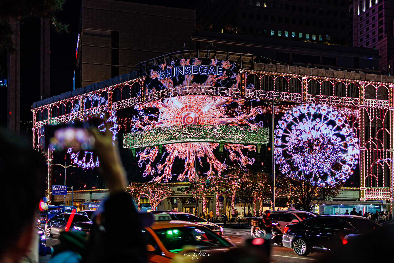 신세계백화점 벽면을 따라 걷다 보면 미디어파사드와 아름다운 조명으로 꾸며진 분수에서 명동 크리스마스 분위기를 만끽하고 있는 사람들을 발견할 수 있다. 하지만 이곳은 메인 포토 스팟이 아니기 때문에 이쁜 사진을 건질 수가 없다.