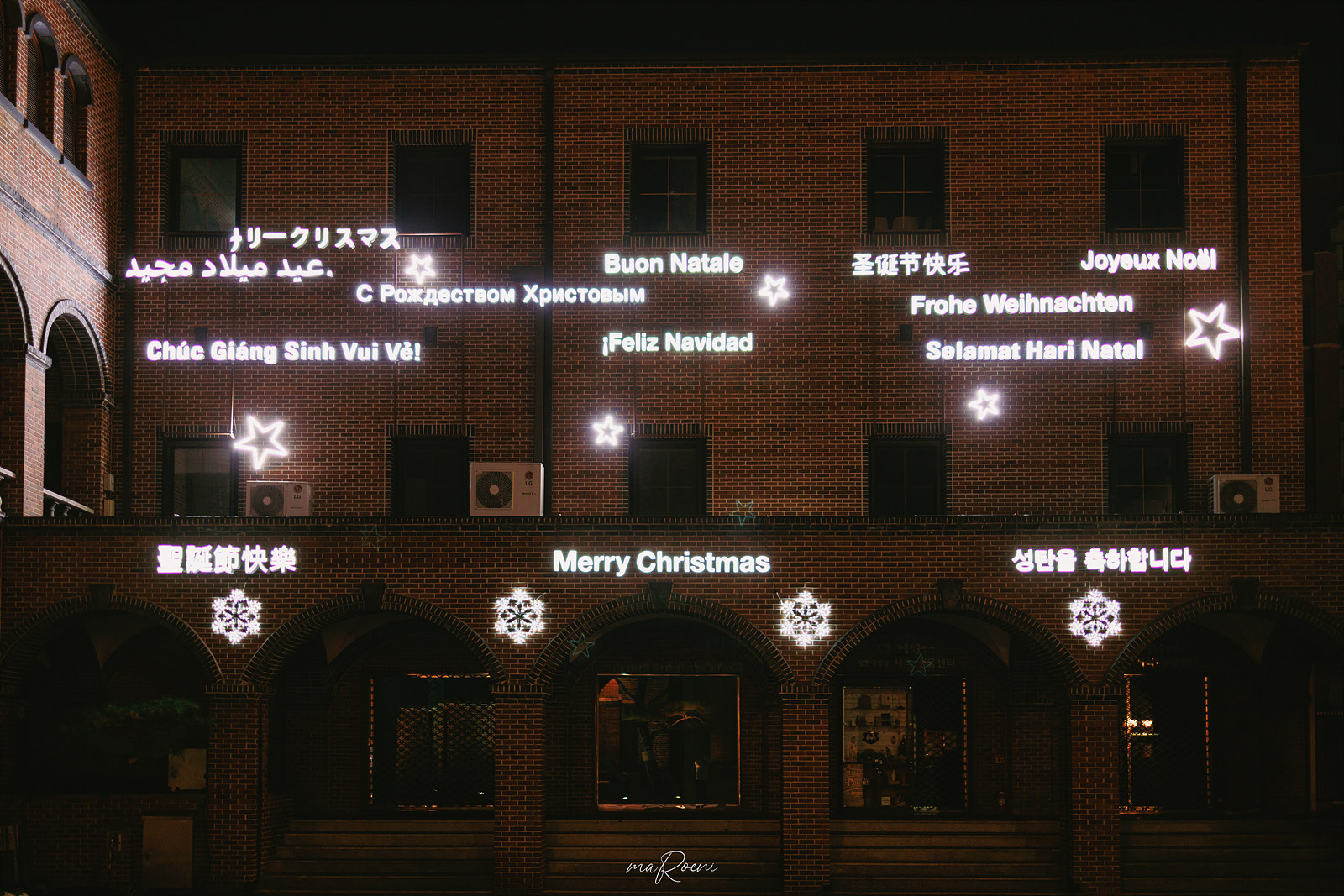다양한 언어로 장식된 크리스마스 인사. 딱히 내부를 관람하지 않아도 외부에서 느껴지는 크리스마스 감성이 어마어마하다. 여기서 읽을 수 있는 언어라고는 꼴랑 3개라니.. 조금 더 분발해야겠다.