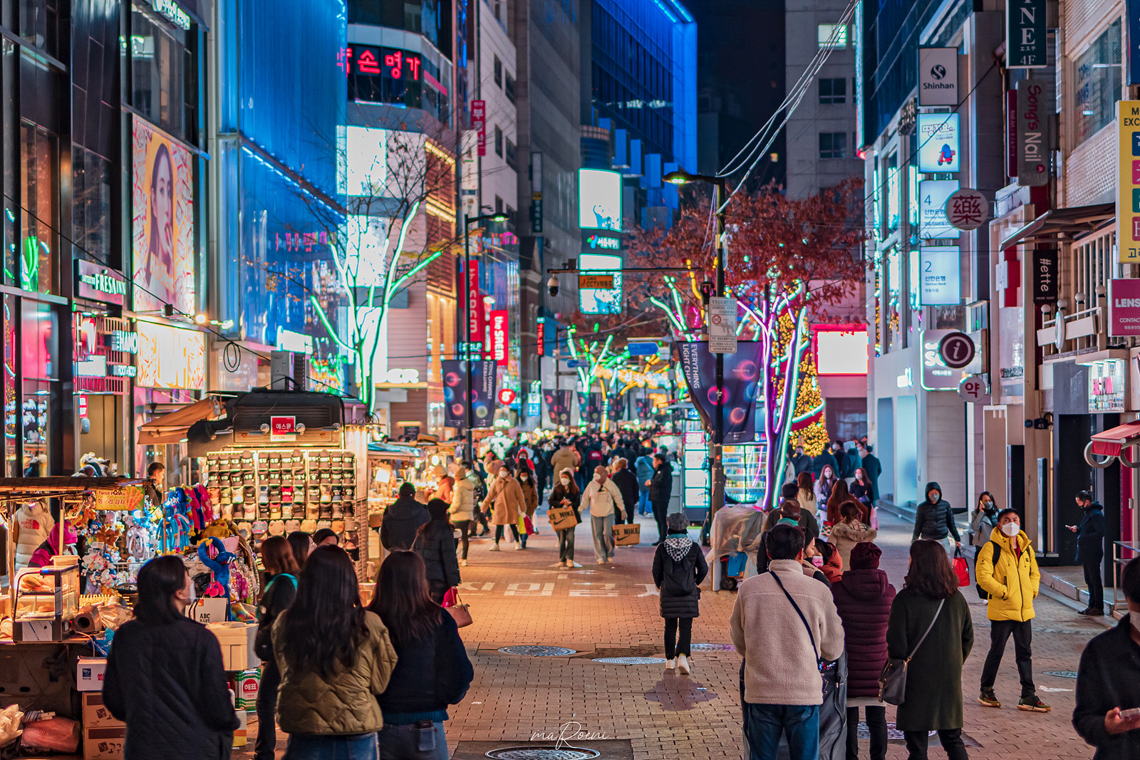 명동의 풍경을 고스란히 느껴볼 수 있는 곳. 명동역 6번 출구에서 을지로 입구까지 이어지는명동거리다. 이곳은 크리스마스와는 거리가 멀지만 다양한 먹거리들과 기념품, 쇼핑까지 한 번에 즐길 수 있는 장소로 코로나가 한창 유행했을 땐 사람들의 발길이 뚝 끊여서 정말 이곳이 서울 데이트코스로 추천되는 장소가 맞나 싶을 정도로 한산했는데, 시국이 조금 나아져서 그런지 거리가 어느 정도 회복된 모습이었다.