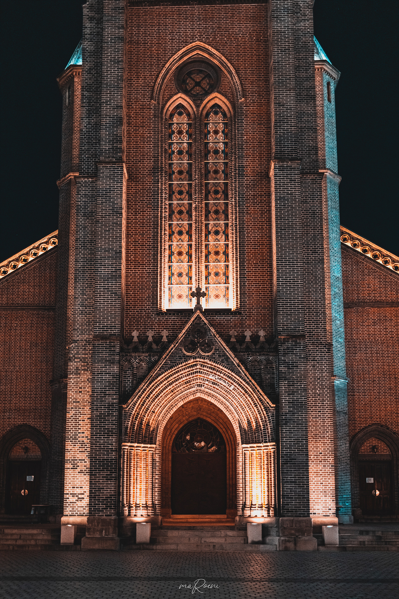 계단에서 양 옆에 펼쳐진 장미 조명은 명동성당의 포토스팟으로도 유명한데, 이 조명은 김수환 추기경을 기리기 위해 만든 LED 장미 조명으로 약 4,000개가 심어져있다고 한다.