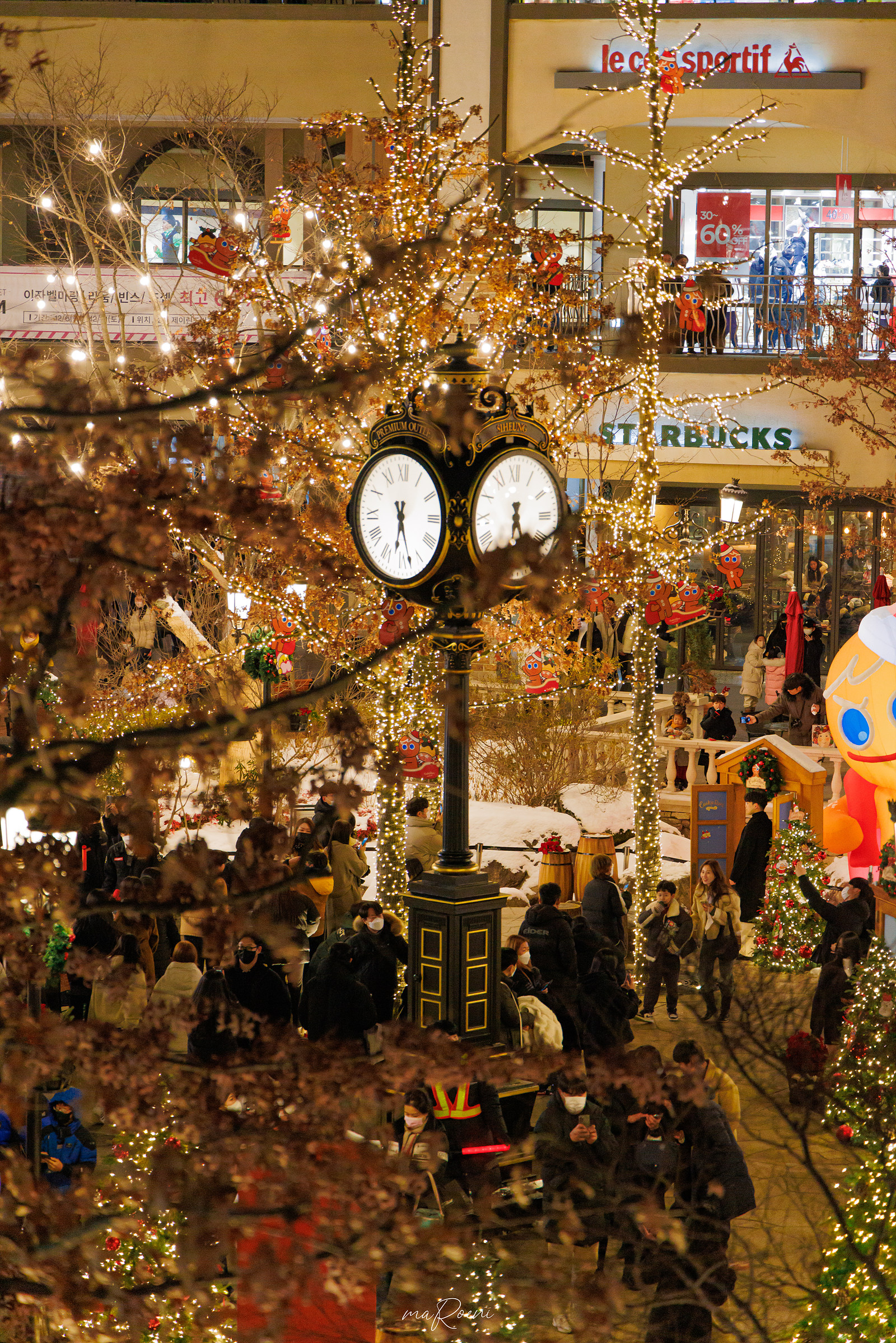전체적인 풍경을 남기고자 한다면 2층이나 3층을 이용하는 것이 좋다. 크리스마스 테마로 꾸며진 광장에는 사람들이 많고, 포토존에는 대기줄까지 존재하기 때문에 사진을 찍기가 제법 어려워 보였다. 그래서 나는 일단 2층과 3층에서 사진을 잔뜩 찍고, 광장으로 들어가서 대충 몇 컷 찍고 빠지는 방식을 선택했다.
