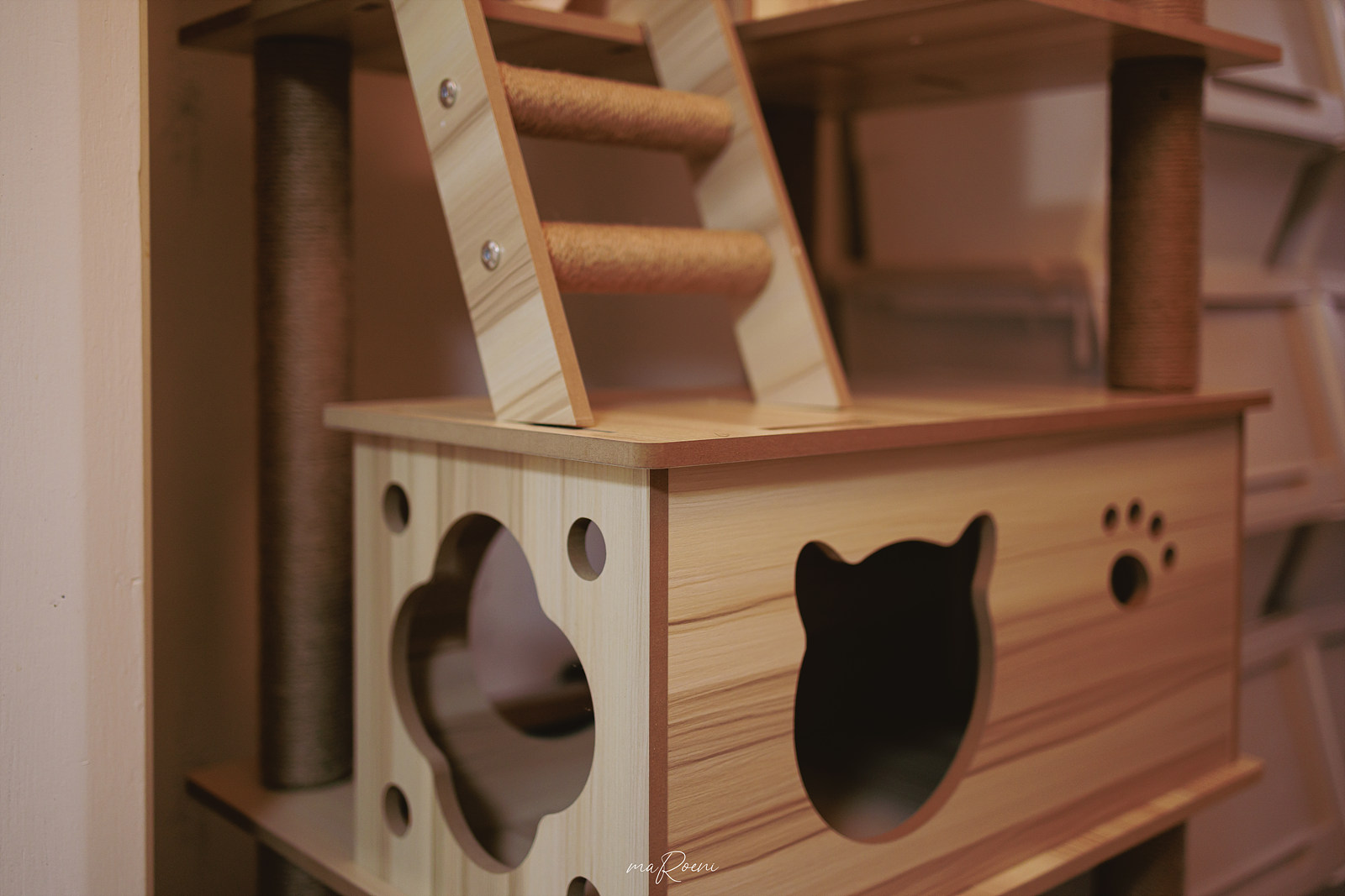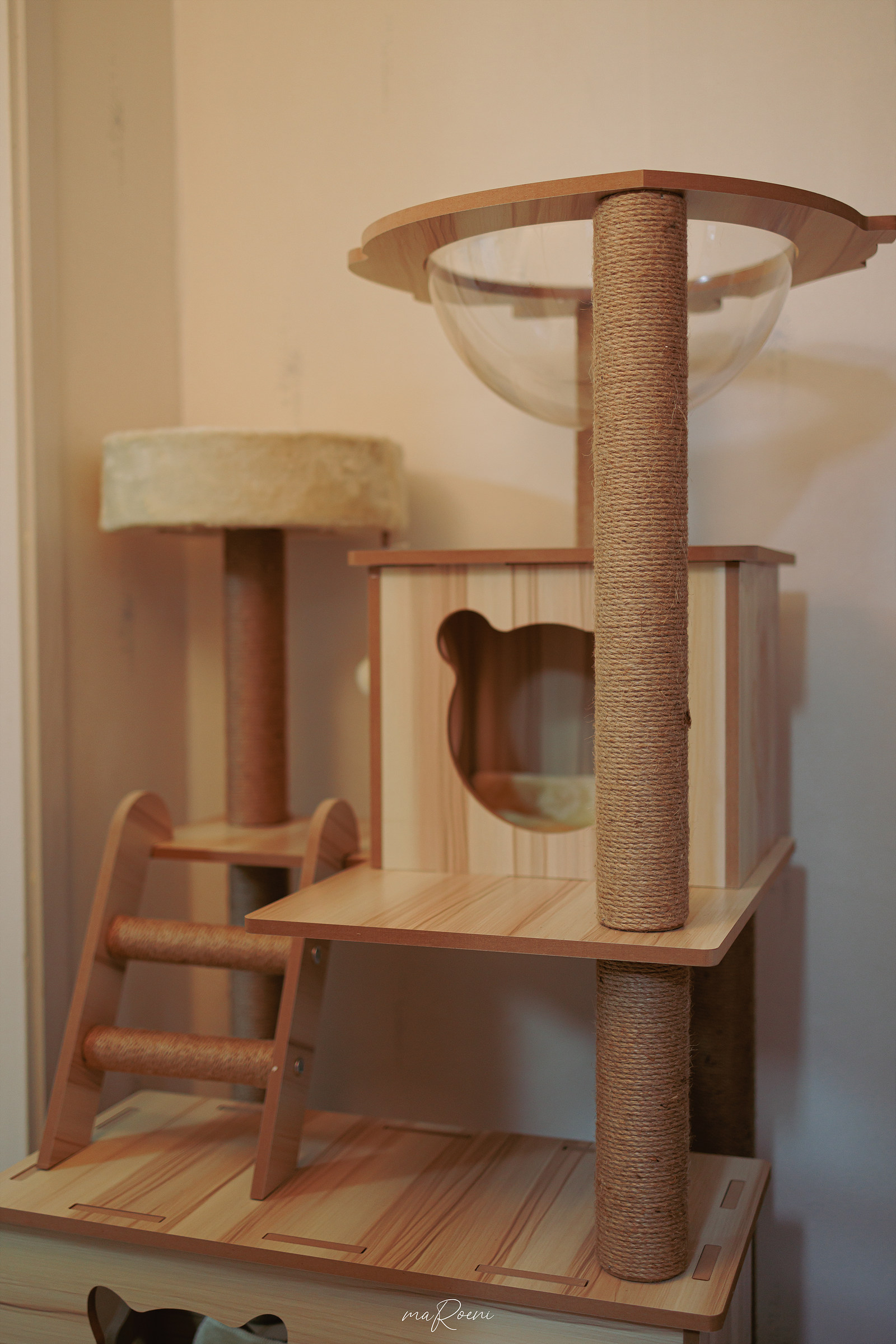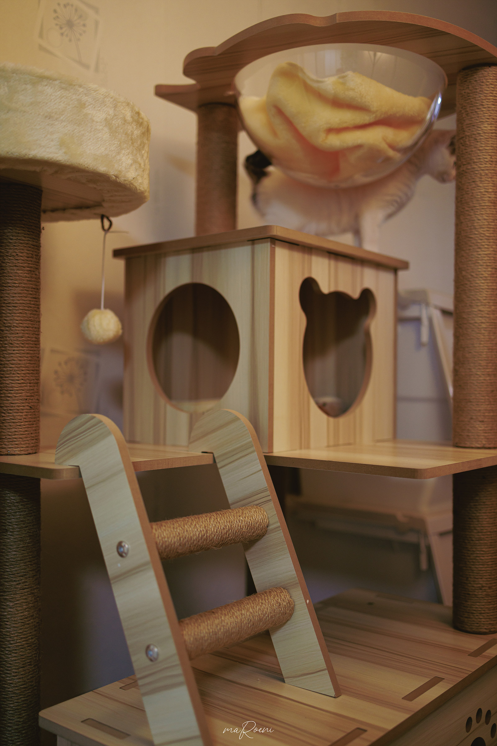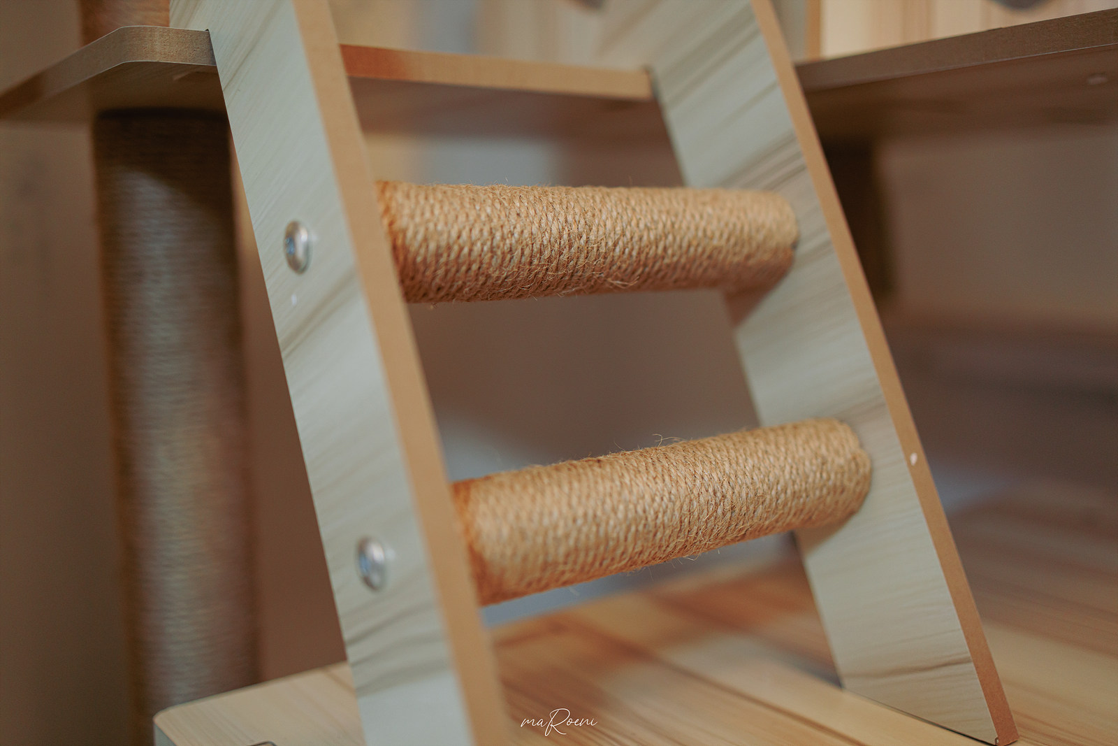 기둥들과 계단들은 튼튼하고 단단한 네츄럴 끈으로 만들어진 스크래쳐라 녀석들이 신나게 긁어댈 수 있다. 이 가격대에 이 정도 구성이면 정말 가성비 자체는 훌륭한 듯?