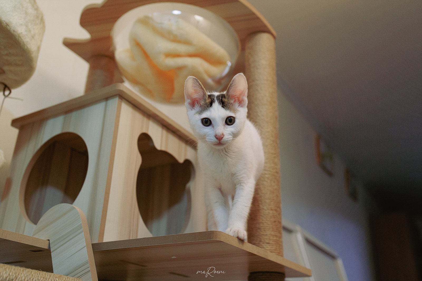 그래서 6단을 제거한 뒤 5단으로 사용하고 있는데, 5단까지만 설치하니 1m 40cm 정도로 이제 막 2개월이 넘어간 아기고양이도 이곳저곳을 탐방하며 잘 사용하는 것 같았다.