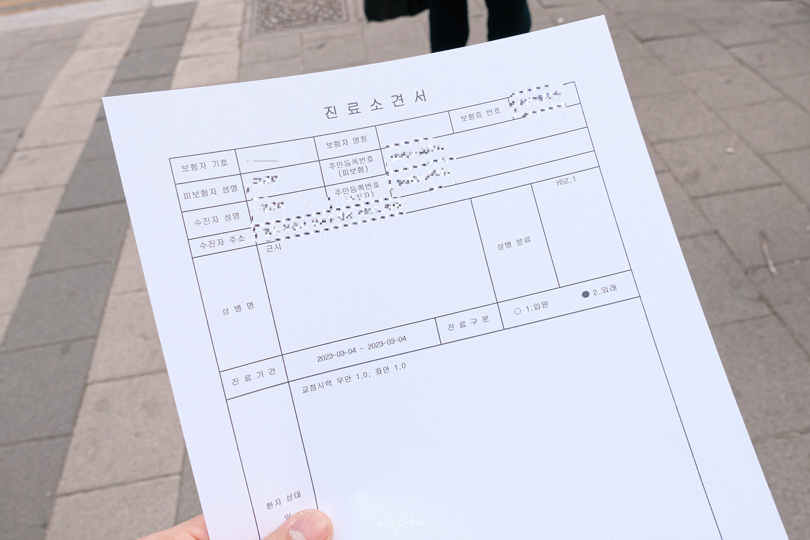 우리나라 행정업무는 뺑뺑이가 기본이라서 미리미리 준비를 해가면 시간을 알뜰하게 절약할 수 있다. 다른 블로그에서는 2년 이내 건강검진 자료가 필요하다고 하던데, 나는 그때 검사받은 기록 자체가 부적격 기준이기에 안과에서 새롭게 시력을 갱신하기로 했다.