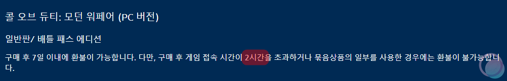 블리자드에서 말하는 환불 요건에는 7일 이내 환불은 가능하지만 만약 게임 접속 시간이 2시간을 초과할 경우 환불 불가능이라고 하는데 저는 3~4시간 정도를 플레이 했음에도 불구하고 정상적으로 환불을 해주었습니다.