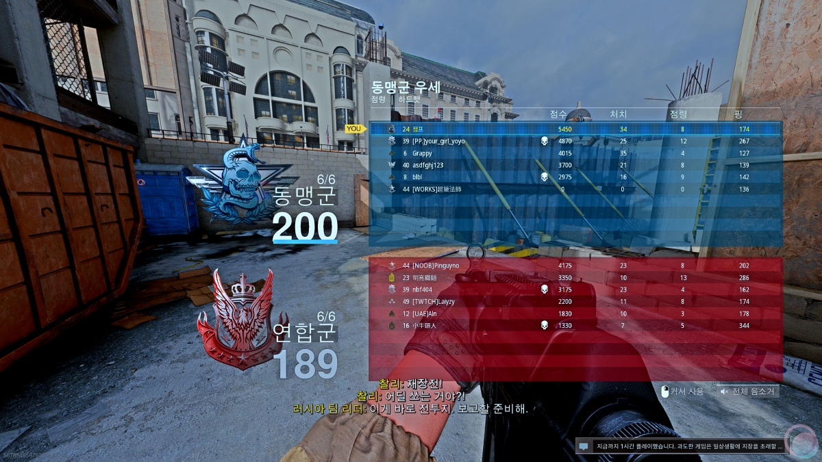 약 120GB를 추가로 설치한 후 신나게 모던워페어 멀티플레이 코어에 입장했는데 뭔가가 이상했습니다. 게임을 시작할 때마다 핑이 기본적으로 350을 찍고, 그렇게 기다리고 기다려서 게임이 시작되면 유저가 4~5명밖에 잡히질 않는 것이었습니다. 심지어 매판마다 월핵(벽을 뚫고 쏘는 핵)을 사용하는 유저들이 많아서 집중해서 플레이를 하는 것이 불가능했습니다.