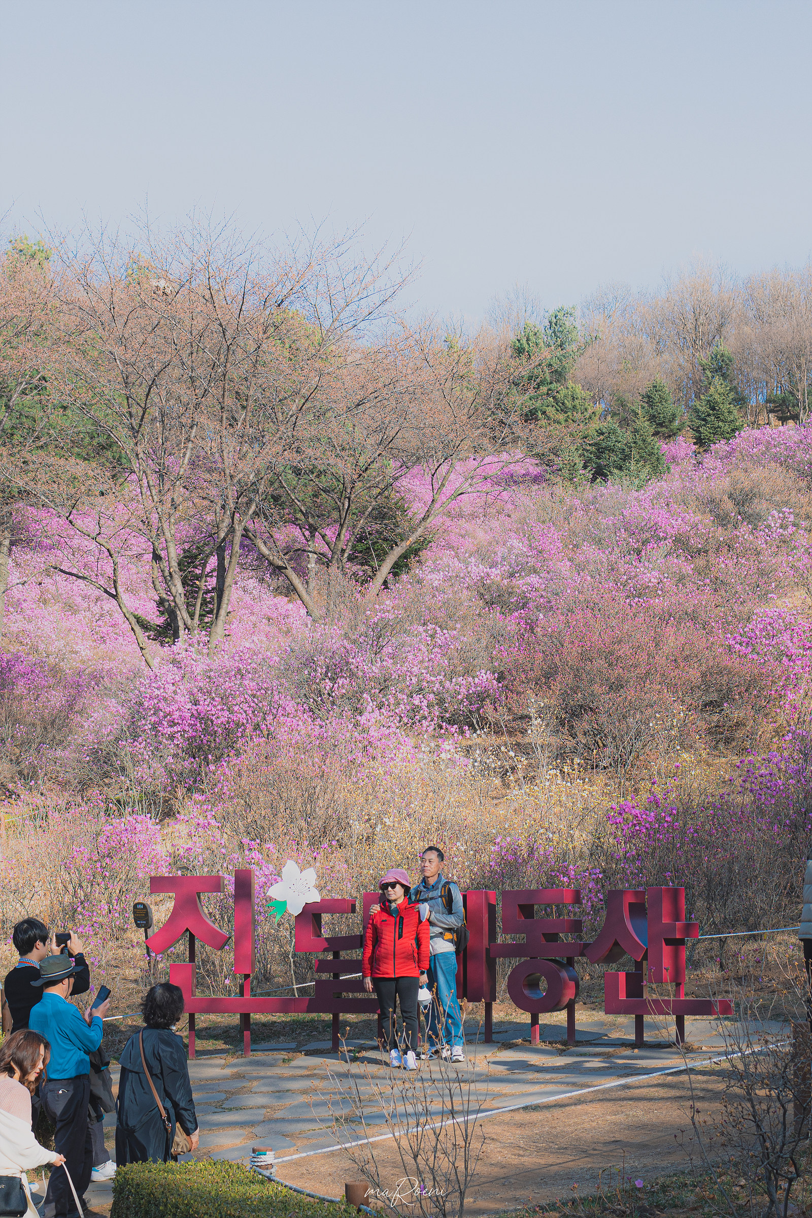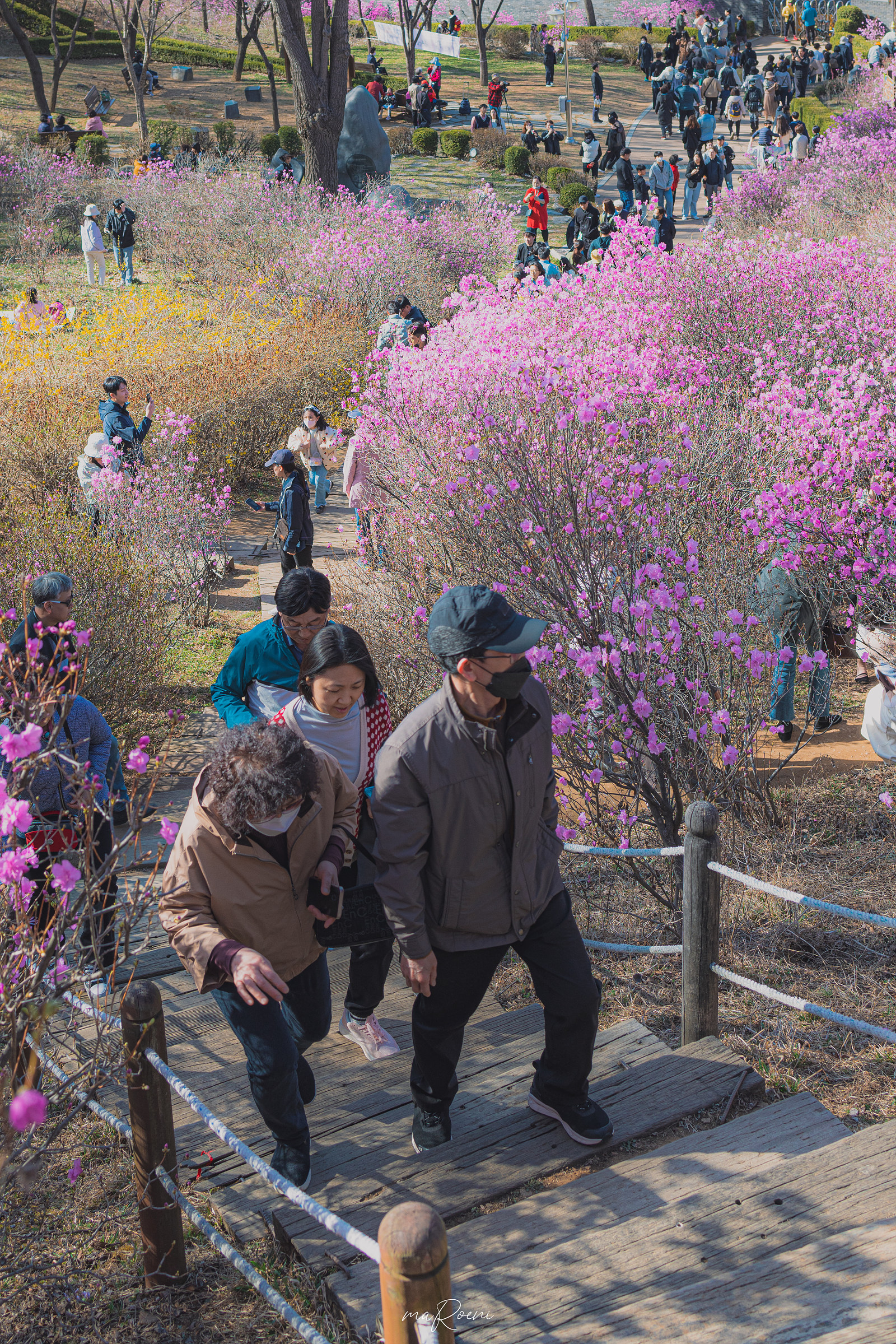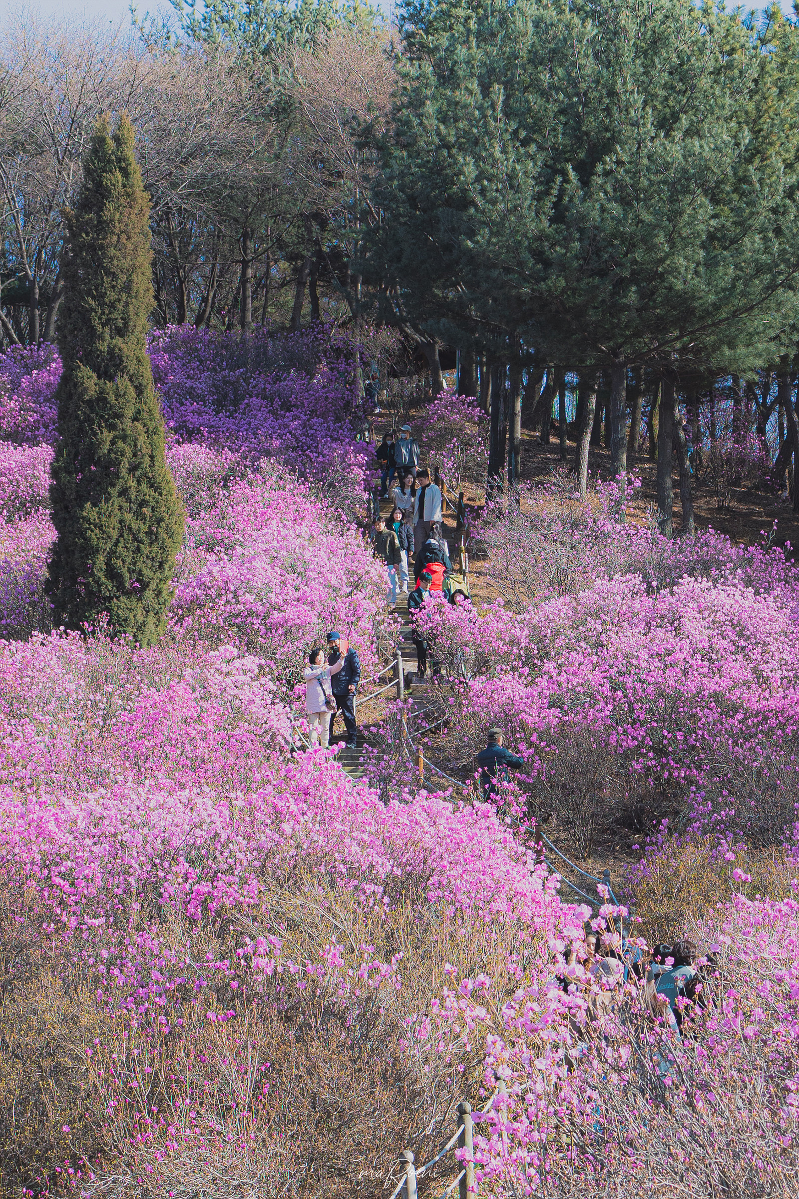 분홍빛 꽃잎 사이로 몸을 파고들어 사진을 남기는 관광객들. 진달래축제엔 <들어가지 마시오>라는 경고 문구가 없기 때문에 내가 원하는 장소에서 마음 놓고 사진을 찍을 수 있다는게 장점인 것 같다.