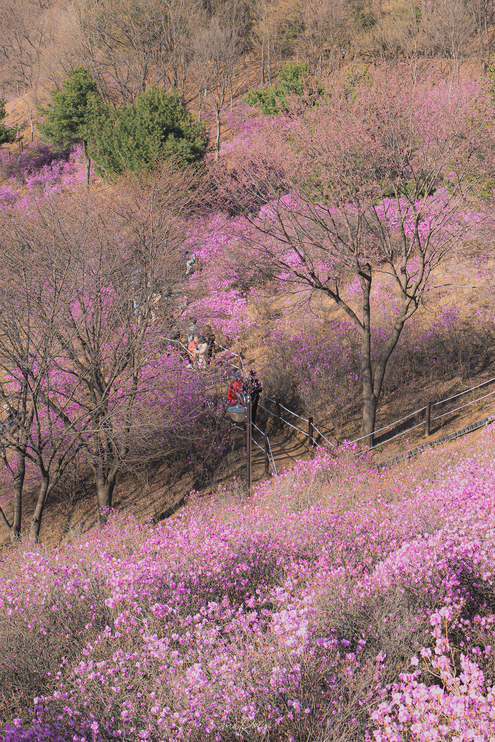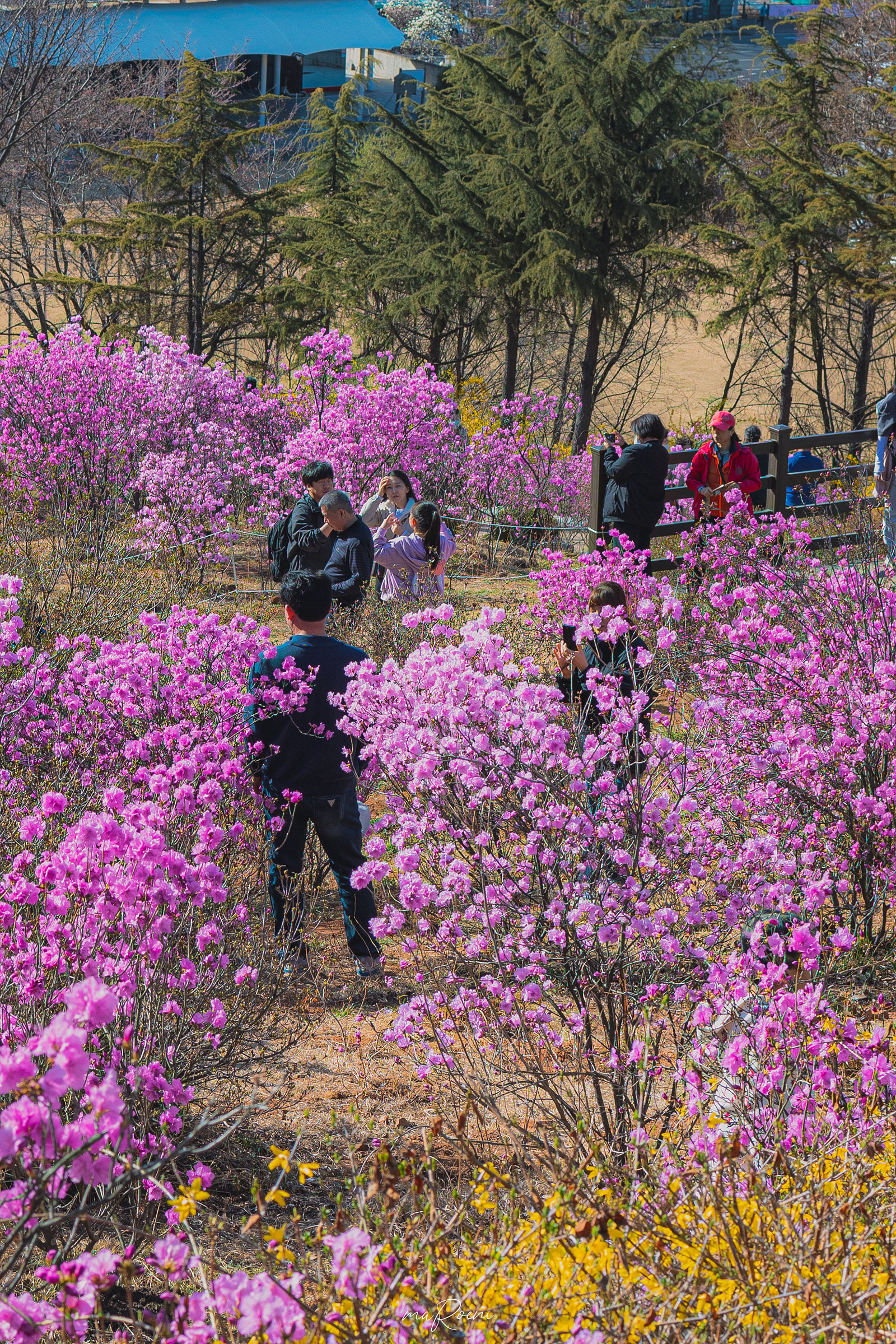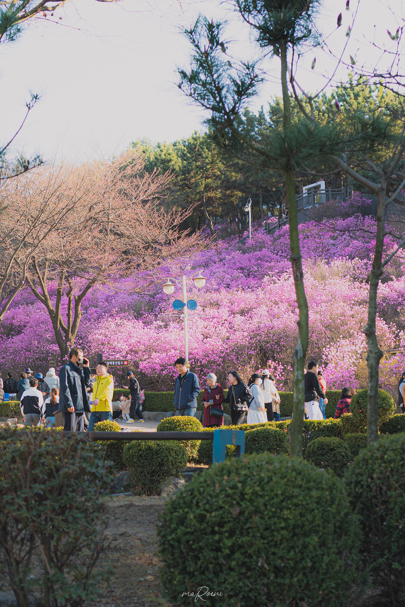 분홍빛 꽃잎 사이로 몸을 파고들어 사진을 남기는 관광객들. 진달래축제엔 <들어가지 마시오>라는 경고 문구가 없기 때문에 내가 원하는 장소에서 마음 놓고 사진을 찍을 수 있다는게 장점인 것 같다.