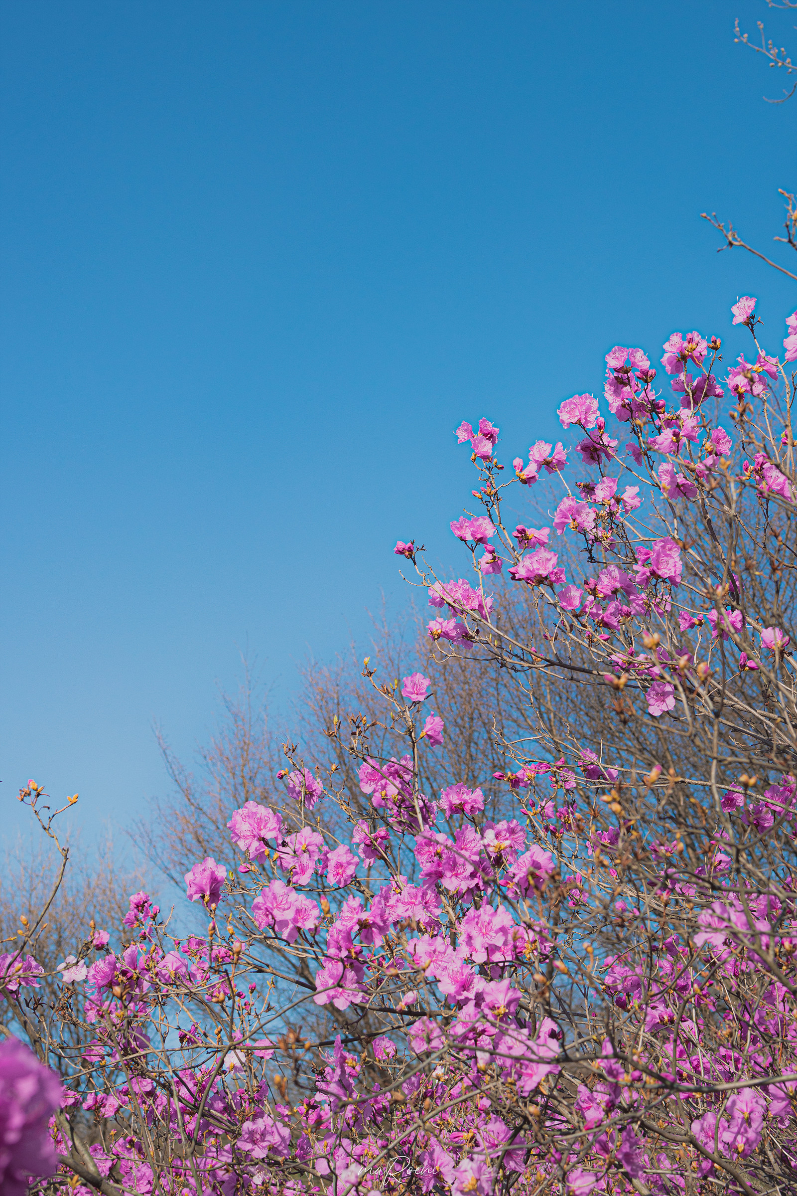 진달래 개화시기까지는 한참 남았을 줄 알았는데, 요즘 날씨가 워낙 뒤숭숭해서 그런가.. 80% 정도는 개화한 것으로 보였다.