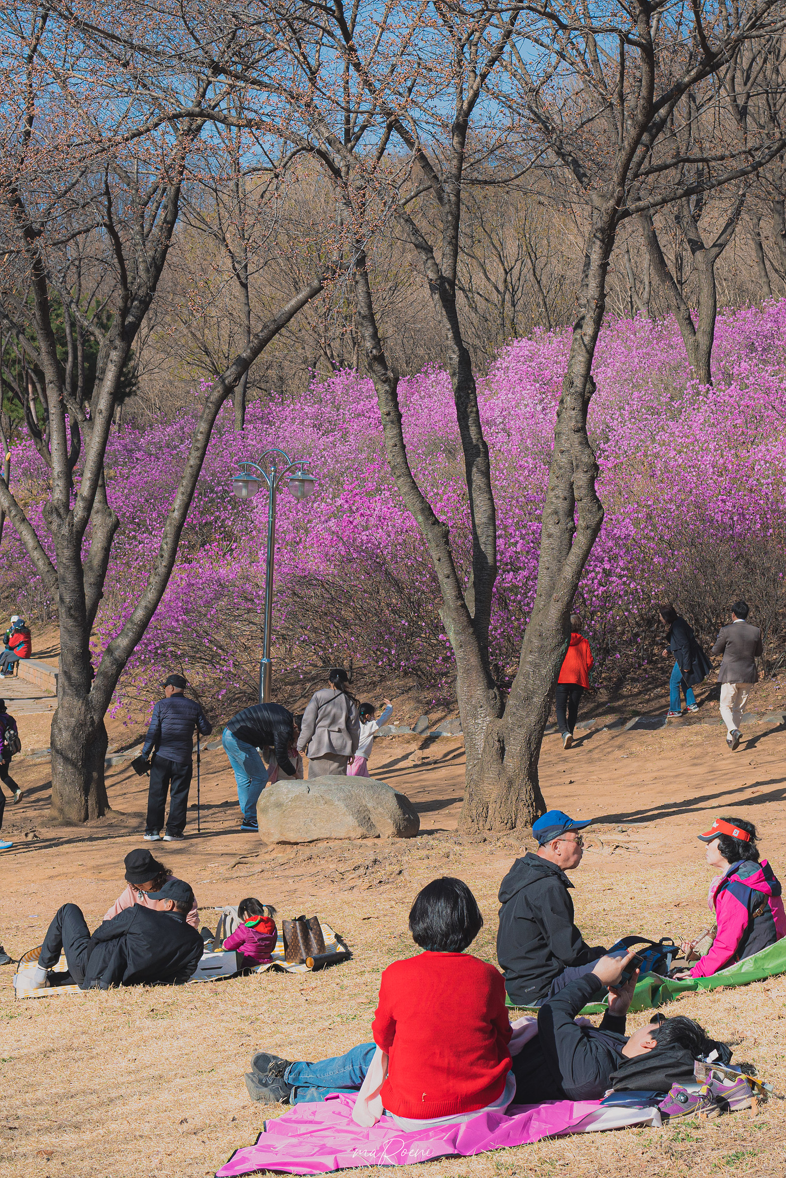 공연장 주변에서 봄의 기운을 만끽하는 사람들. 나도 돗자리를 깔고 여유롭게 주말을 즐기고 싶은 마음은 가득했지만, 진달래축제의 위치적인 장소 특성상.. 사람들이 지나다닐 때마다 흙먼지가 장난 아니게 날린다... 카메라에 붙은 먼지를 털어내려고 얼마나 고생을 했었는지..