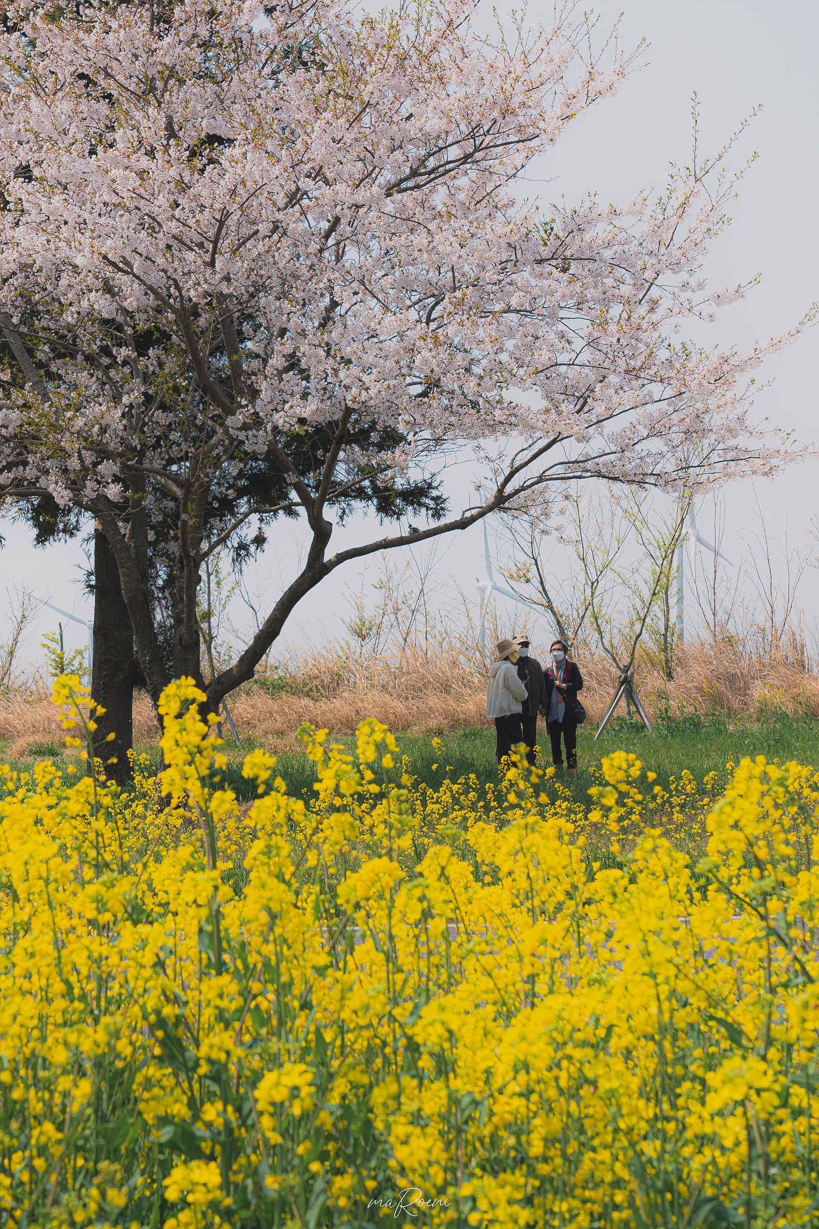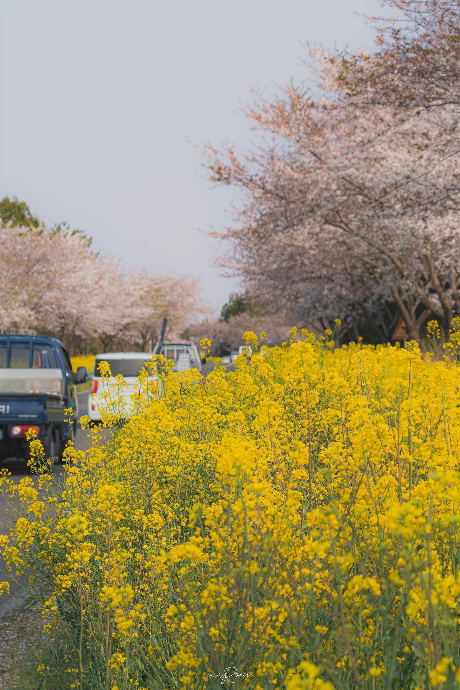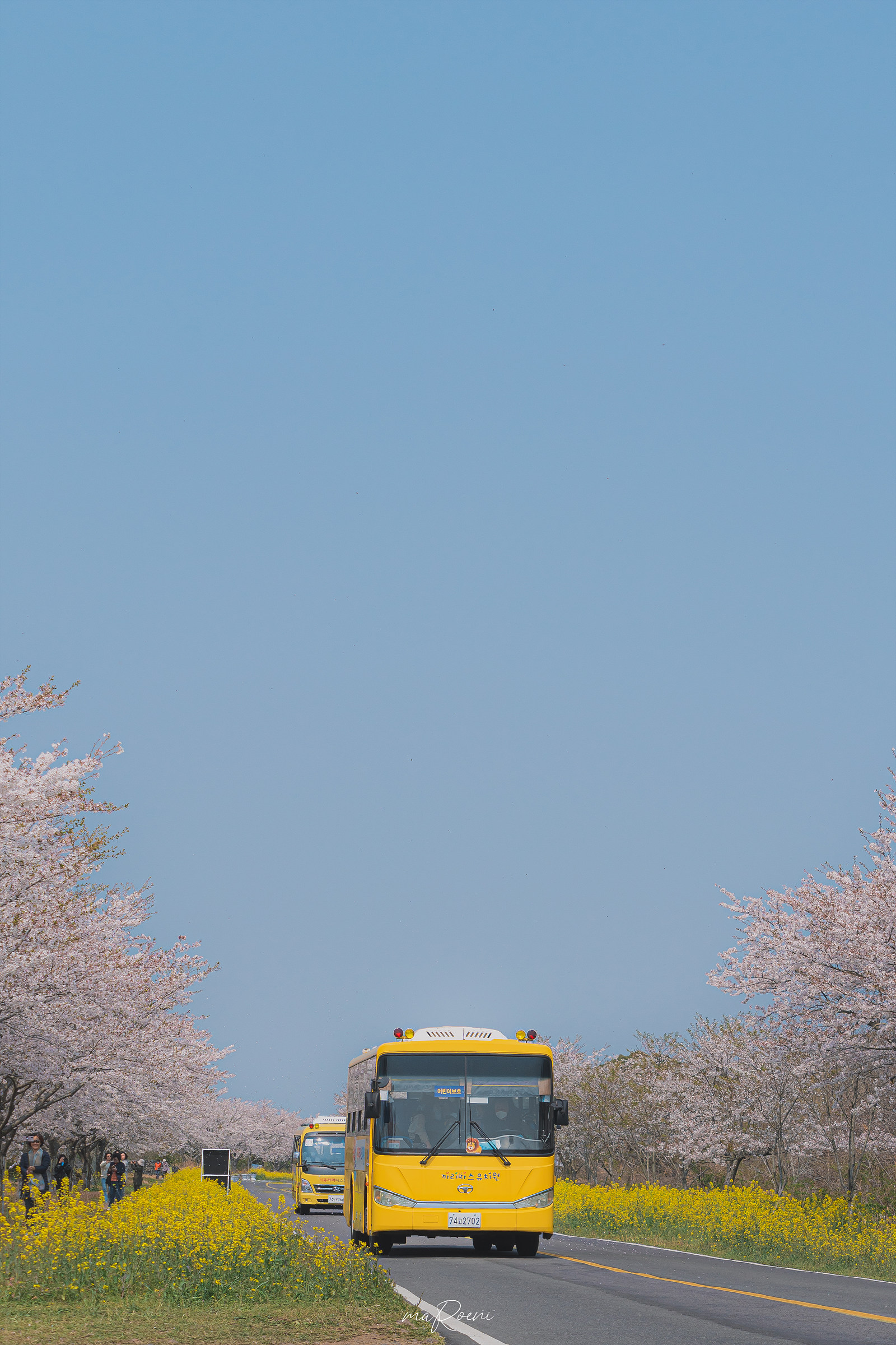 평소에는 오고 가는 차들이 별로 없는 한적한 도로에 불과하지만, 봄만 되면 유독 이곳을 찾는 관광객들로 인해 주차를 제대로 하기 힘들어질 지경에 이른다. 유채꽃만으로도 사람들의 시선을 사로잡기에 충분했을 텐데, 벚꽃까지 더해지니 갬성충들이 가만히 있을 수가 있을까?