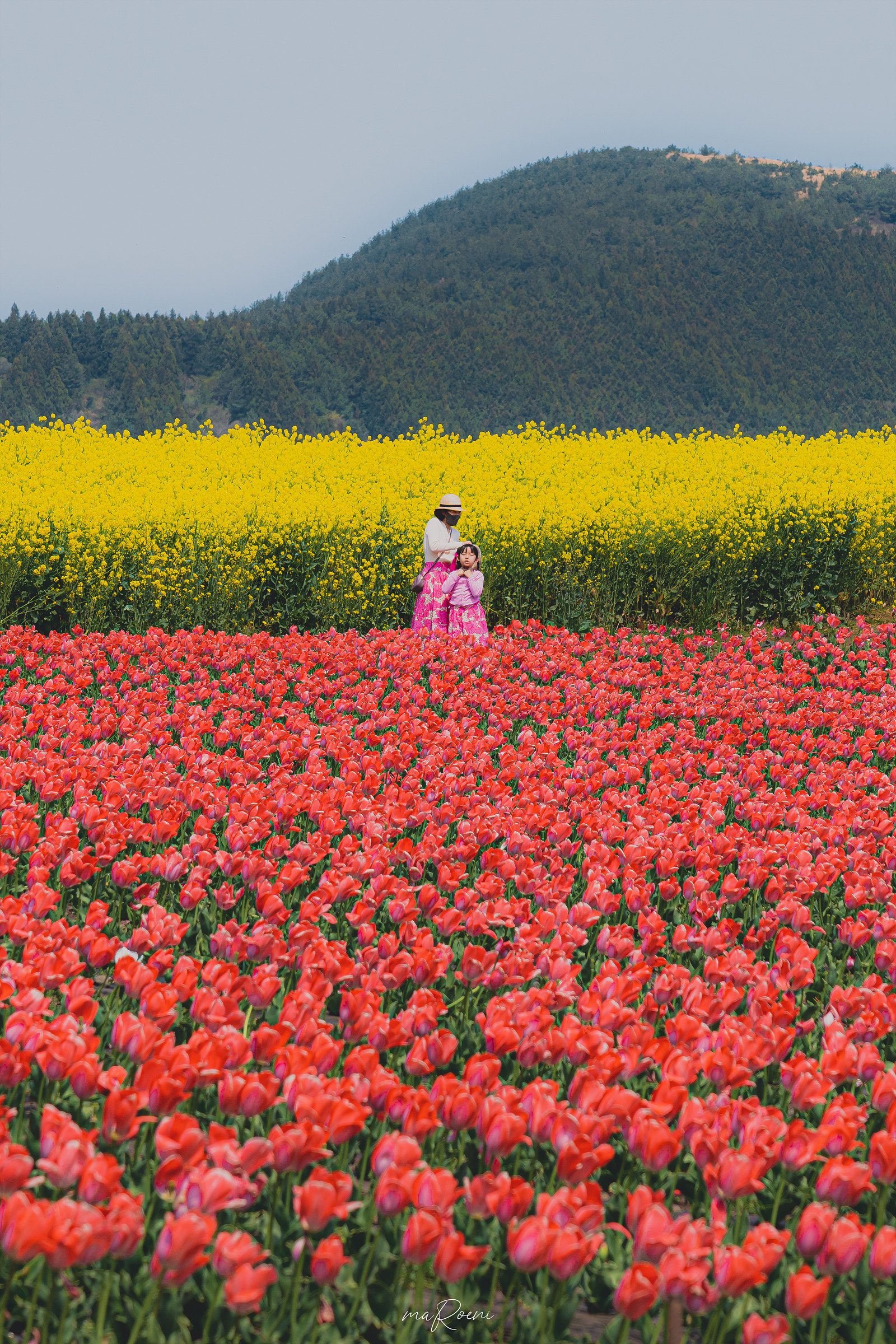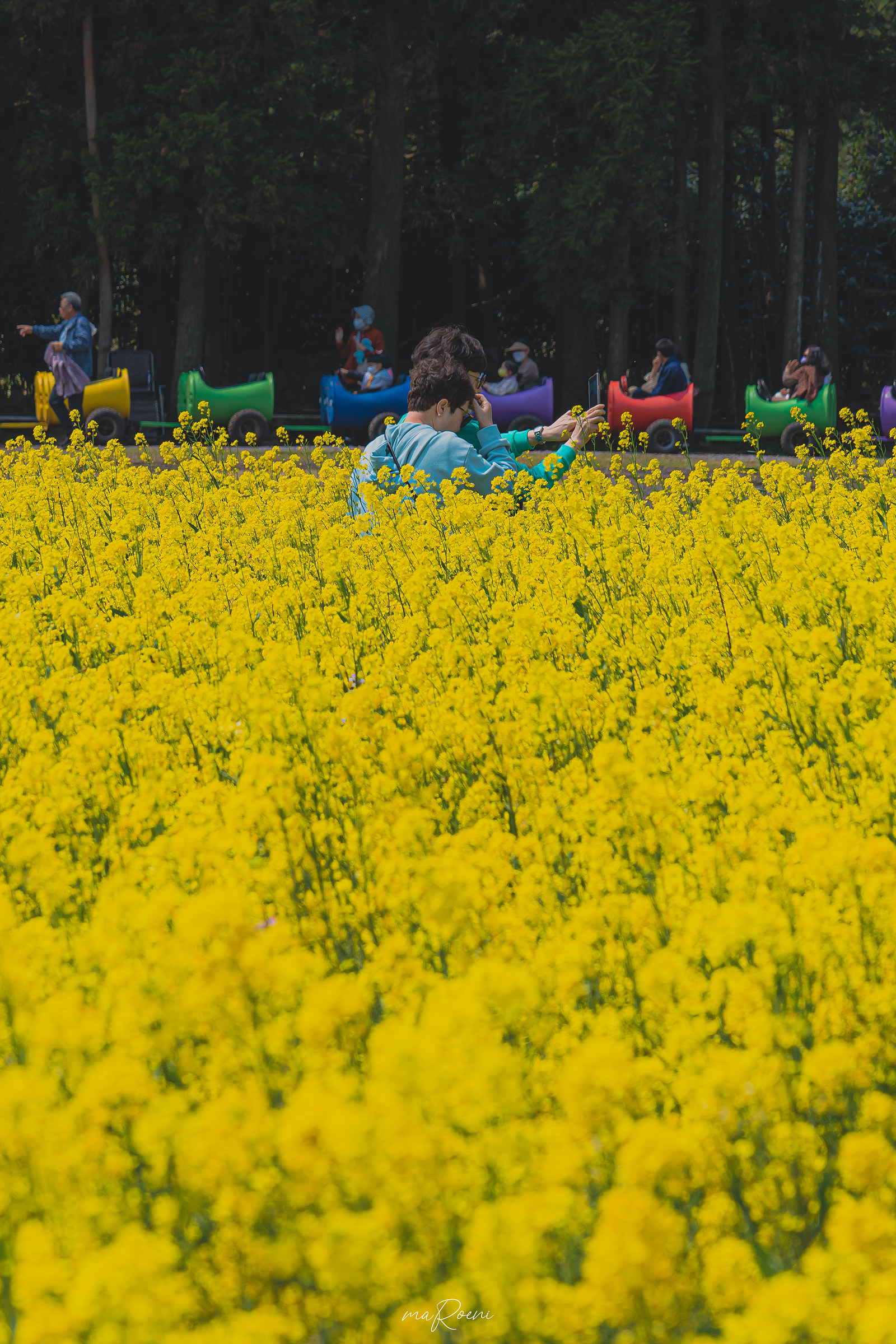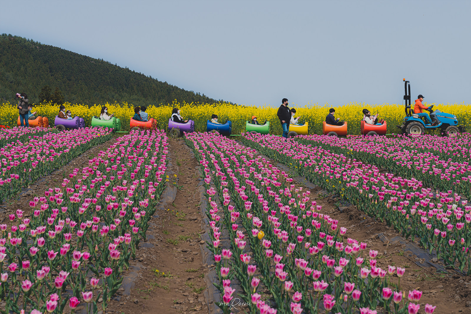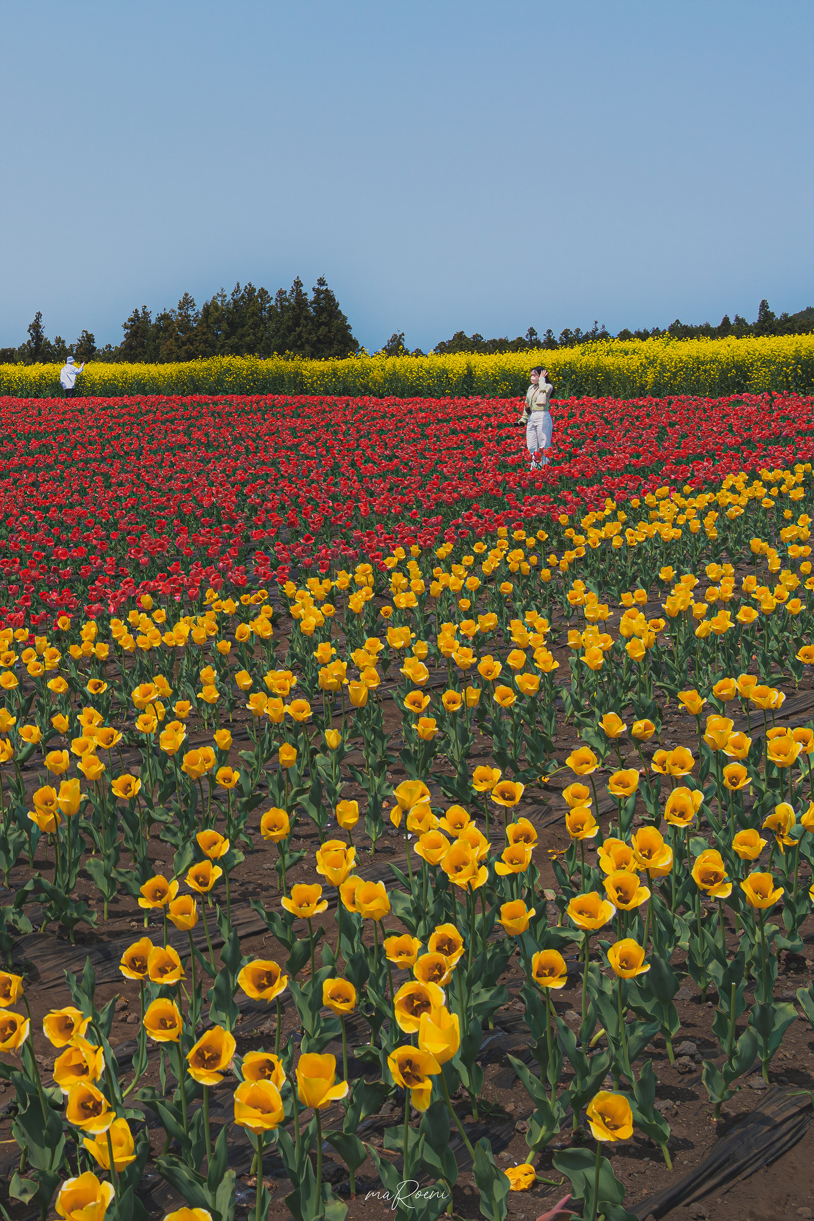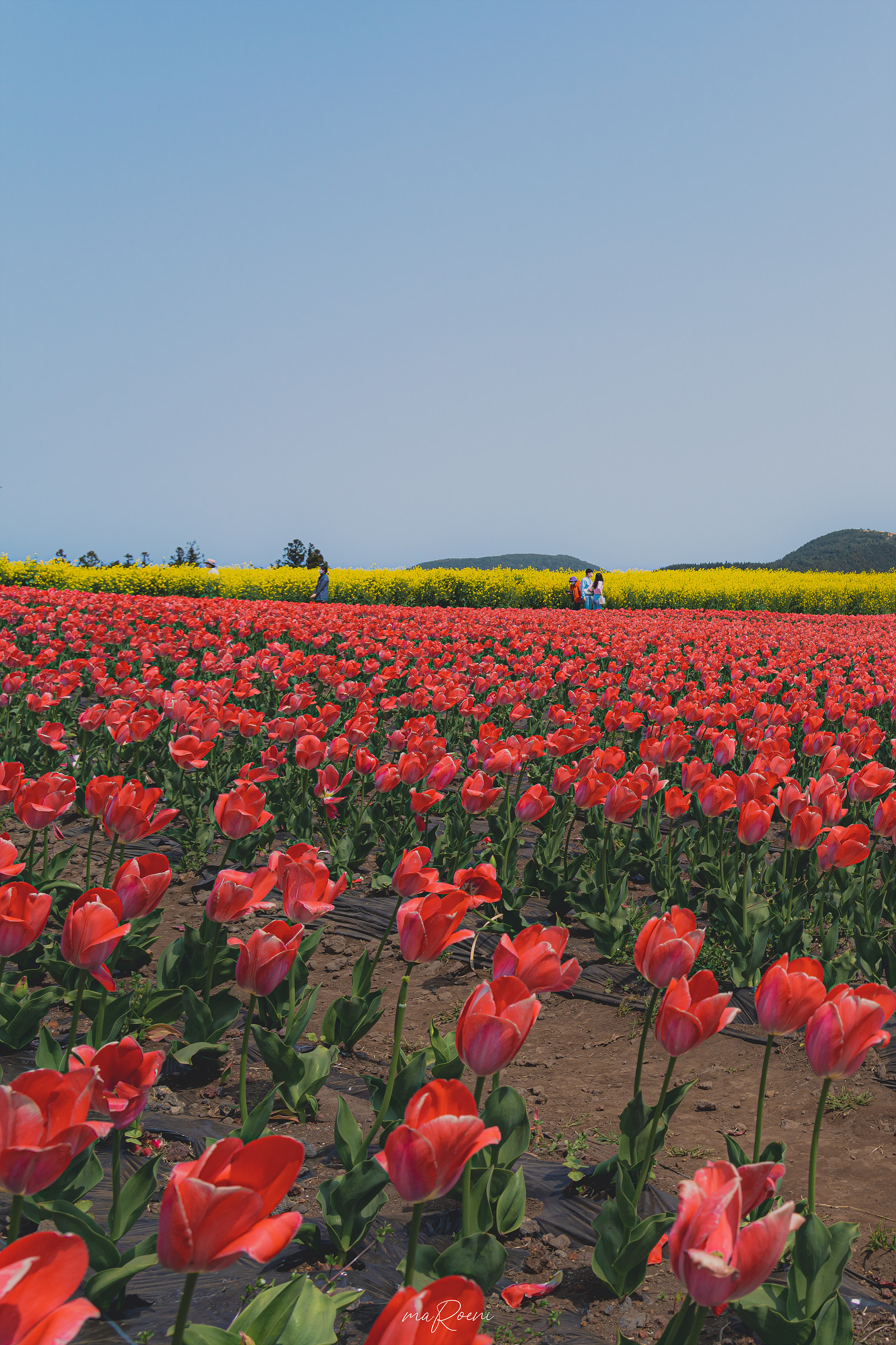 제주도 보롬왓은 수국과 튤립이 유명하지만, 유채꽃 명소이기도 하다. 튤립밭 뒤로 어마어마한 양의 유채꽃이 피어있는데, 어지간한 유채꽃 명소들보다 더 화려하게 피어있고 부지가 넓어서 편하게 사진을 찍을 수 있다는 장점이 있다. 단점이라면 벌들이 많다는 것..?