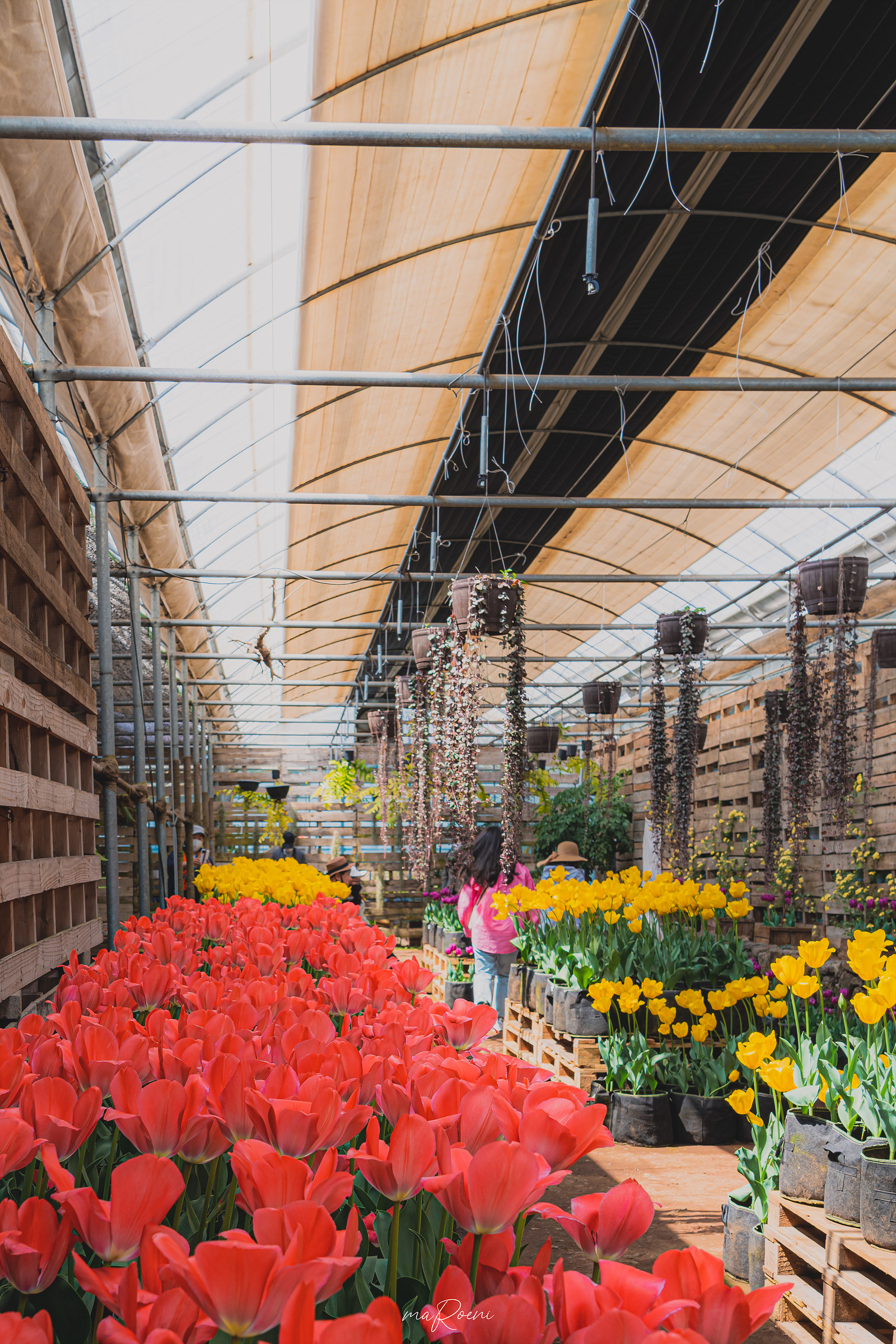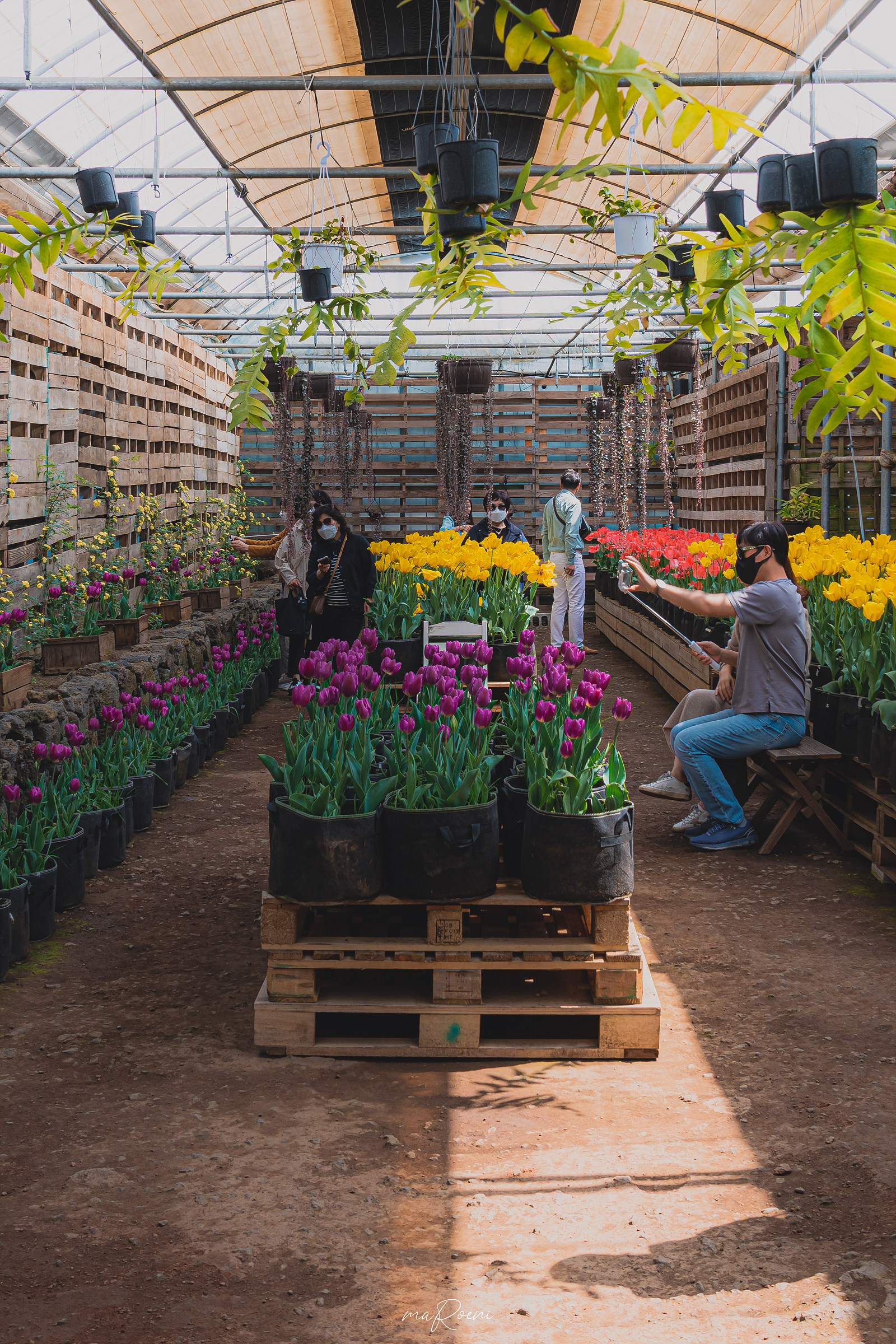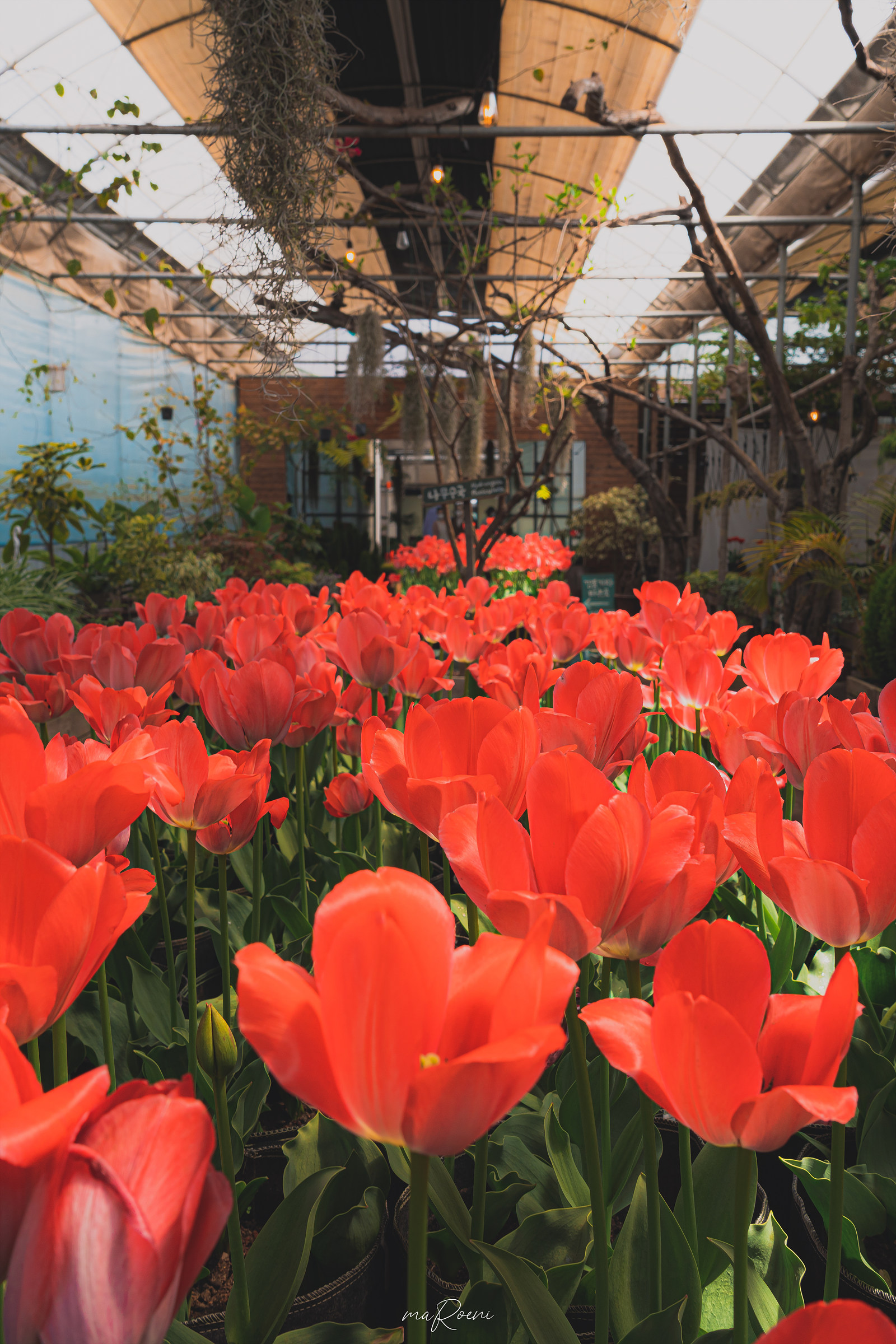 주차장에 주차하고 입장료를 지불한 후 매표소를 지나 보롬왓에 딱 들어섰을 때 가장 먼저 눈에 들어왔던 건 아름답게 피어난 튤립이었다. 비닐하우스를 개조한 것처럼 보이는 실내 온실에는 식물들 사이로 인증사진을 남길 수 있는 포토존이 마련되어 있는데, 다른 여행지에 비해 경쟁률(?)이 그렇게 치열하지 않은 편이라서 좋았다.