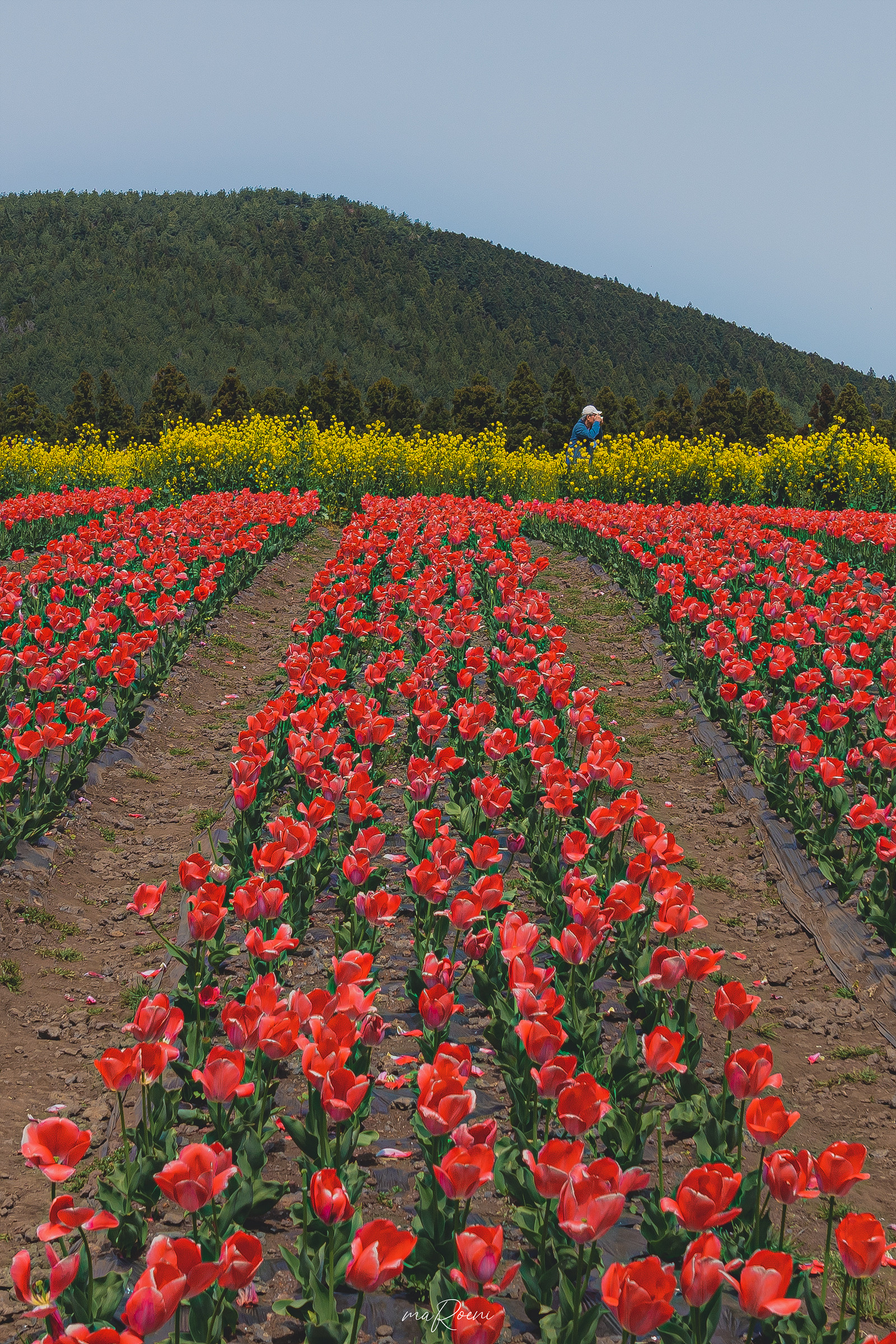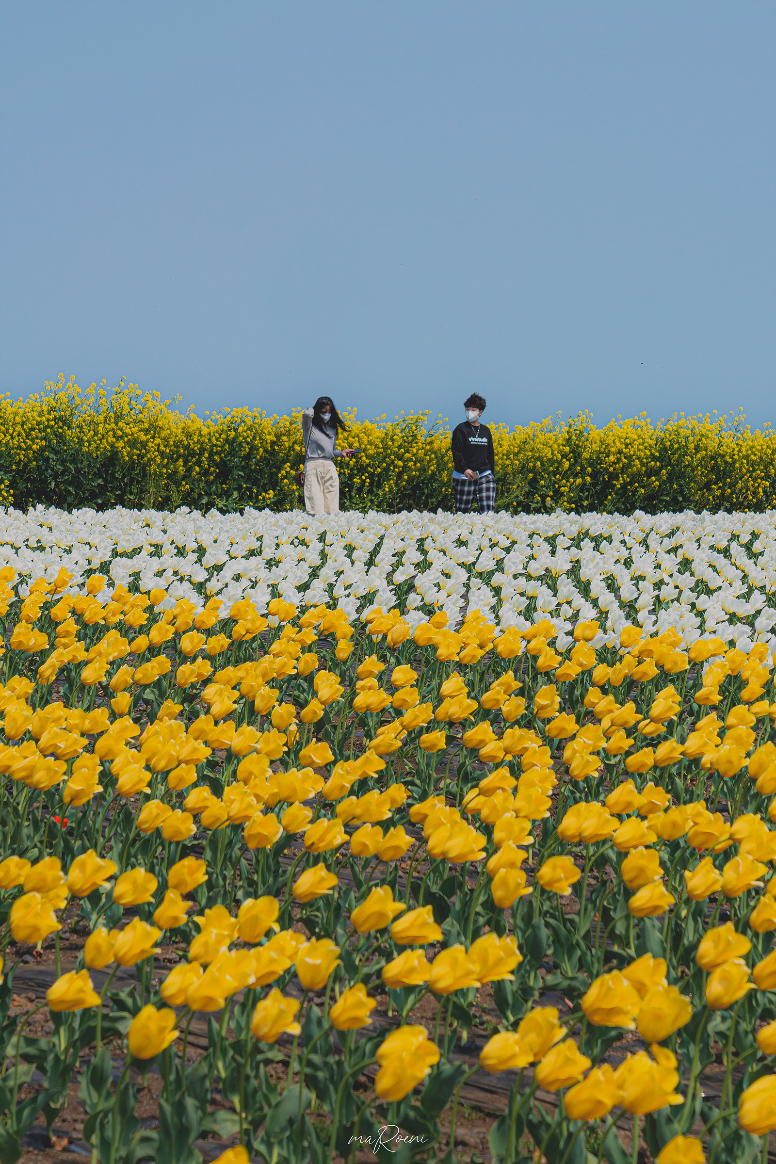 일렬로 가지런히 피어난 튤립은 빨강색/노랑색/흰색/핑크색 순으로 심어져 있었다. 내가 제주도 보롬왓을 찾아갔을 땐 운이 좋게도 모든 색상의 튤립들이 만개한 상태였는데, 다른 블로그의 글을 참고해 보니 색상마다 피어나는 시기가 조금씩 다른 모양이었다. 다양한 색상 중에서 하나만 꼽으라면 아무래도 노란색 튤립이 가장 내 취향인 듯.