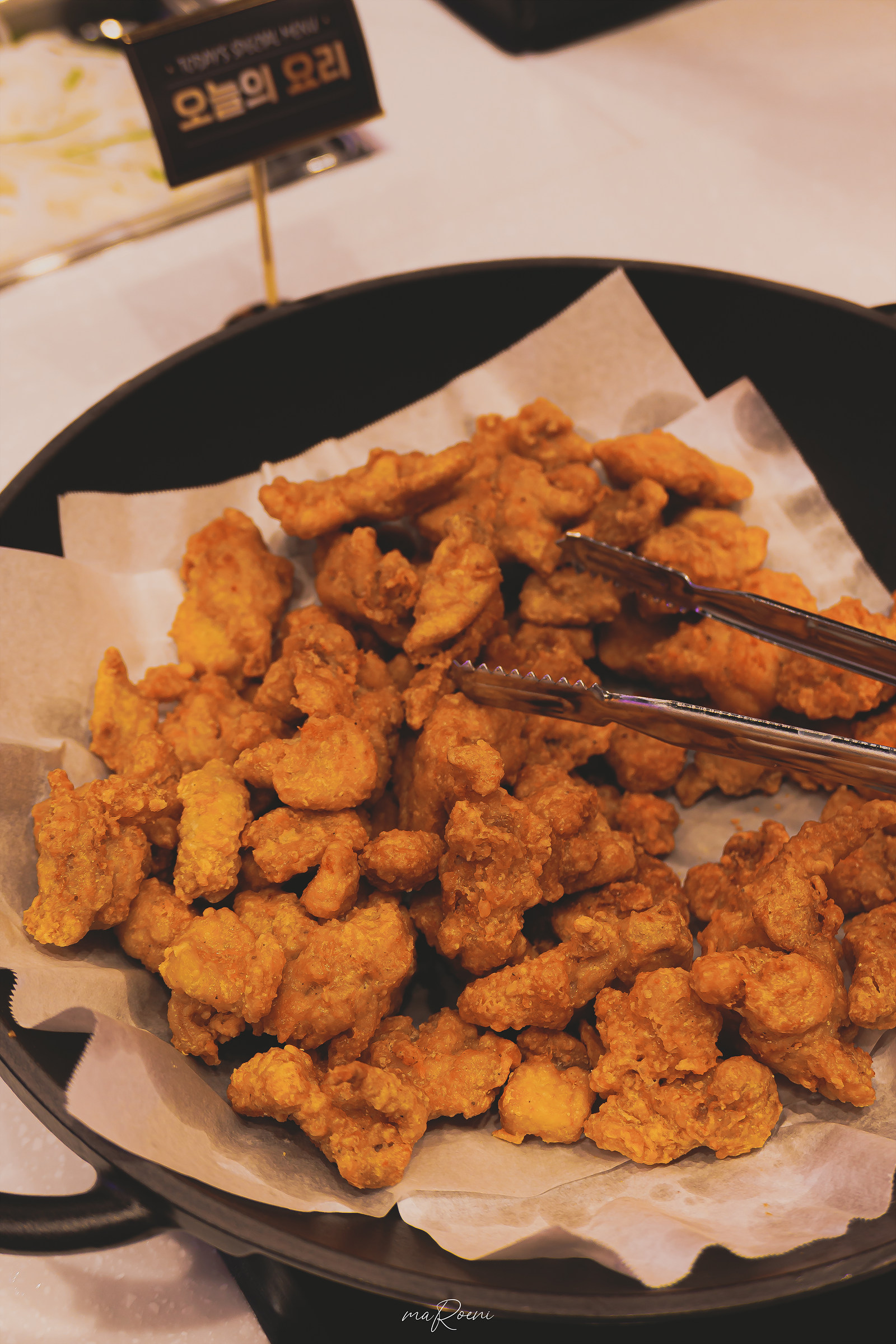 셀프바에는 다양한 먹거리들이 존재했는데, 치킨이라기 보다는 일본식 닭튀김인 가라아게와 튀김, 그리고 팥이 들어있는 만찐두빵이 있었다. 다른 지점을 방문해보지는 못했지만, 다른 블로그들을 참고해 보니 사이드메뉴는 지점별로 차이가 있는 것으로 보였다.