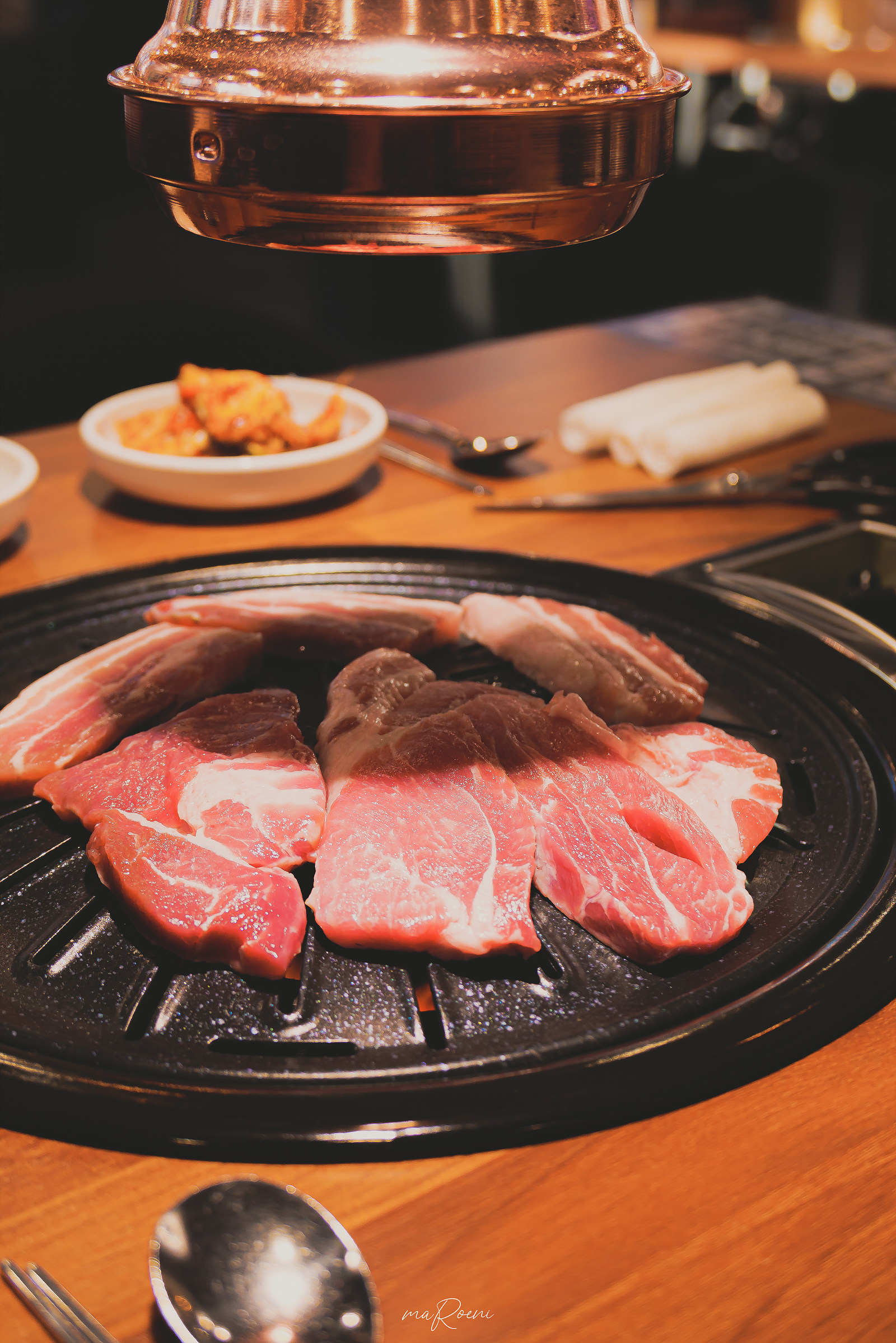 무한리필의 국룰은 기본으로 시작해서 양념으로 마무리하는 것. 우리도 처음엔 삼겹이랑 주먹고기, 목살로 스타트를 했다. 엄마가 말씀하신대로 고기의 질은 나쁘지 않았고 잡내 없이 맛도 아주 훌륭했다. 고기 잡내에 예민한 내가 먹어도 만족스러웠을 정도.