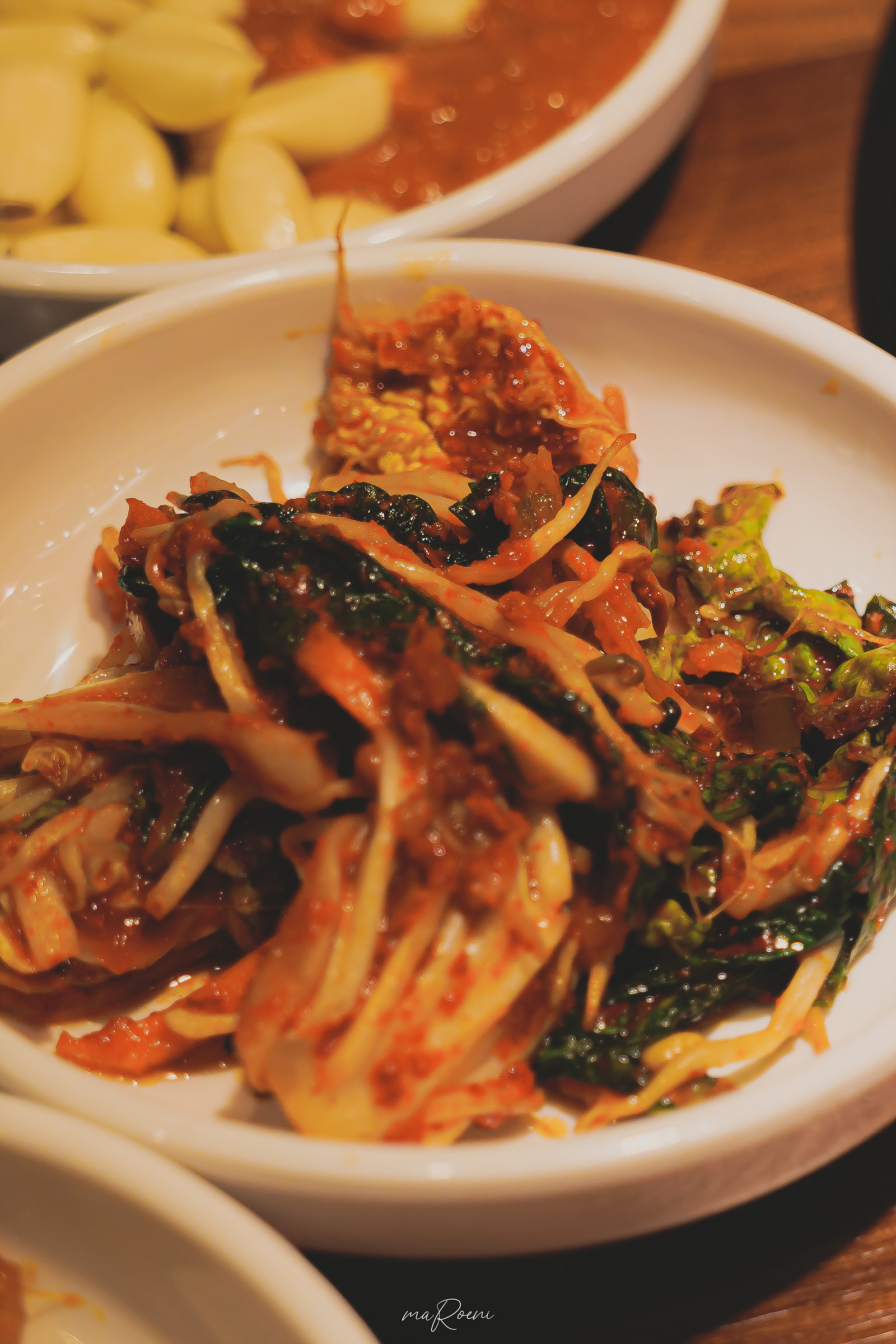 신기한 건 고기싸롱 겉절이 김치에 콩나물이 섞여있다는 것인데, 이게 은근 잘 어울리더라. 아삭함이 2배로 느껴졌음. 근데 너~무 달아서 많이 먹지는 못하겠더라. 더 먹으면 혈당 올라갈 것 같아서..