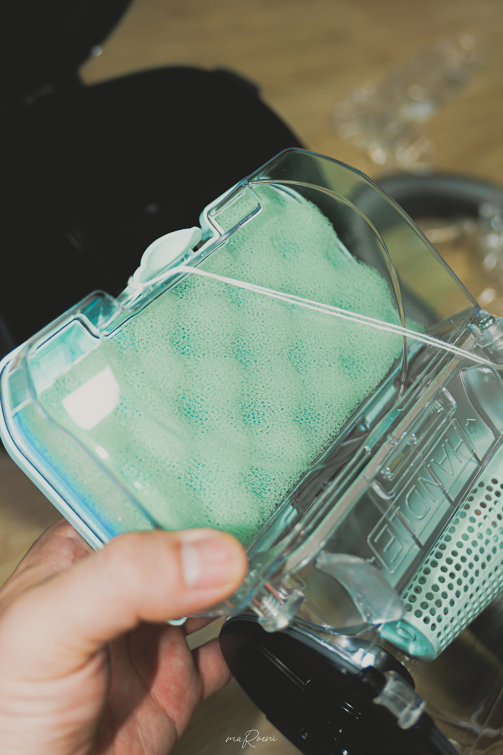내부에 필터가 하나 더 들어있다. 초록 스펀지가 필터기능을 하는데, 여기에 먼지가 많이 붙어있을 경우 스펀지를 탈거한 후 물로 잘 헹궈준 후 잘 말려서 사용하면 된다고 기사님께서 말씀해 주셨다. 매번 헹궈서 사용할 필요는 없고, 극한으로 더러워질 때 하면 될 것 같다.