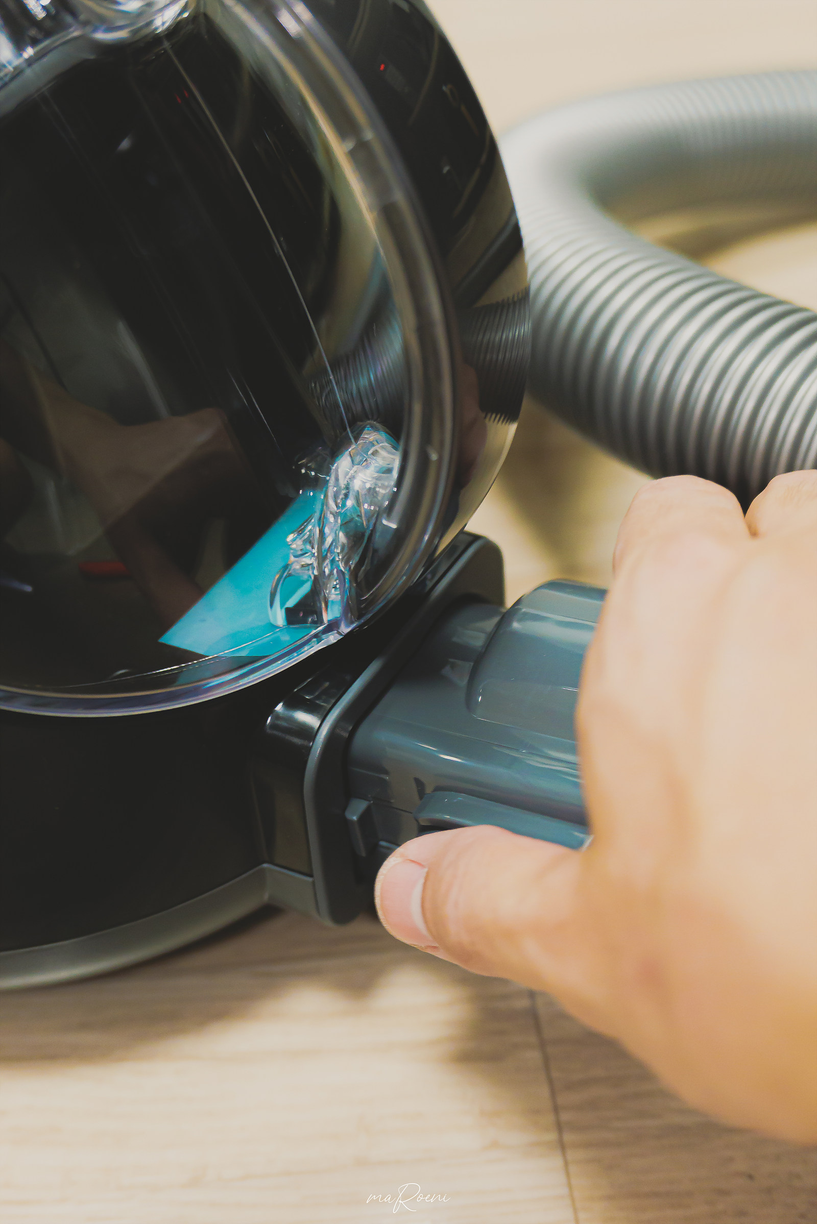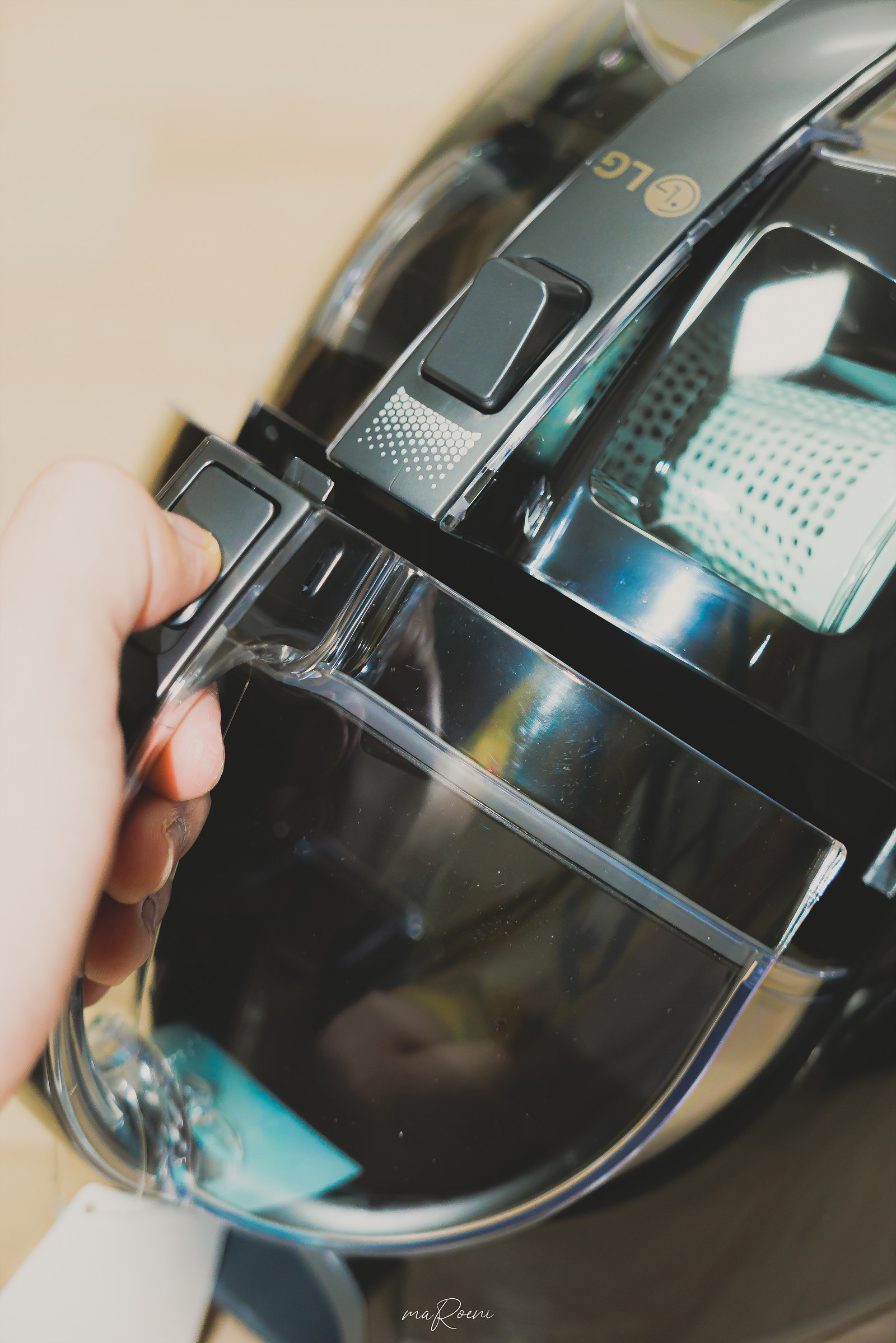 그리고 예전 유선청소기들은 부직포로 되어있는 먼지통..? 같은 걸 사용했고 먼지가 가득 차면 제조사에서 똑같은 제품을 구매하여 교체하는 것으로 알고 있는데, 요녀석은 요즘 나오는 무선청소기처럼 먼지통을 쉽게 비워낼 수 있었다. 당연히 물로 세척하는 것도 가능하다.