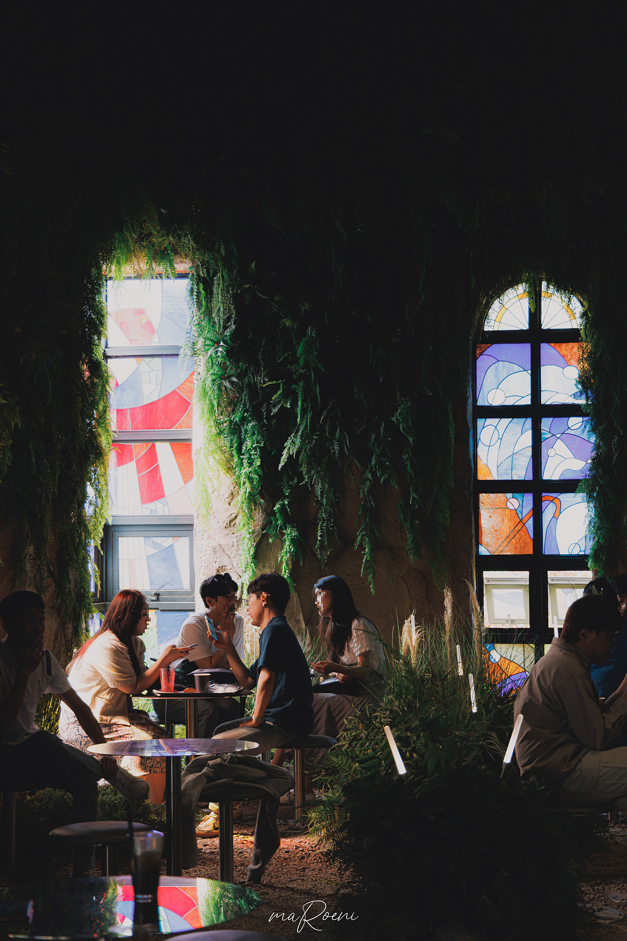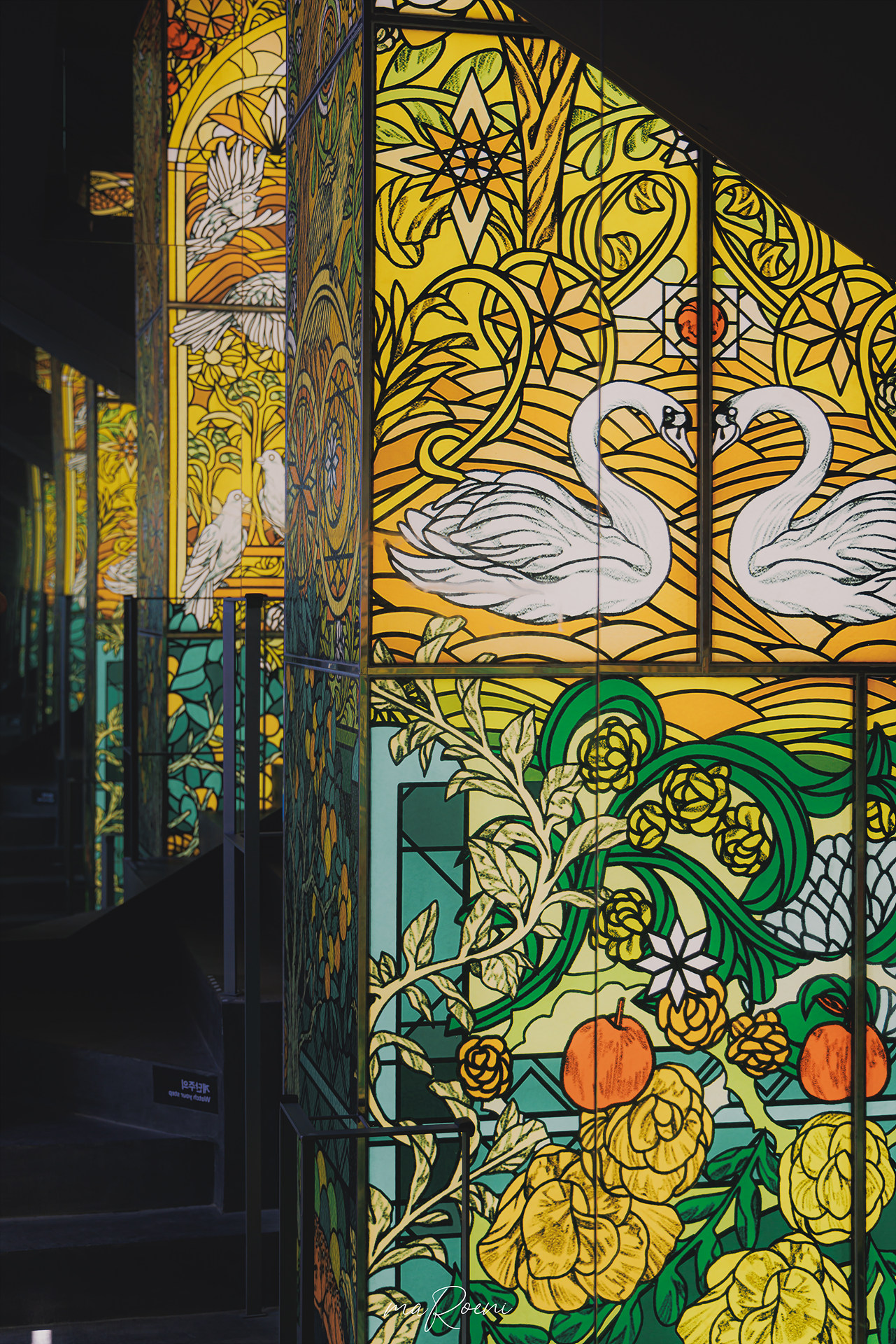 다른 스팟들보다 층을 오르내리는 계단이 가장 교회라는 컨셉과 잘 어울리는 인테리어라고 느꼈는데, 계단 통로에 통으로 스테인드 글라스를 박아두고 사방을 거울로 해놓으니깐 롯데월드 거울미로 느낌이 나서 아주 멋졌음. 집에 와서 사진을 열어보니 다른 장소보다 여기서 찍은 사진들이 분위기 있게 나온 것 같기도..?