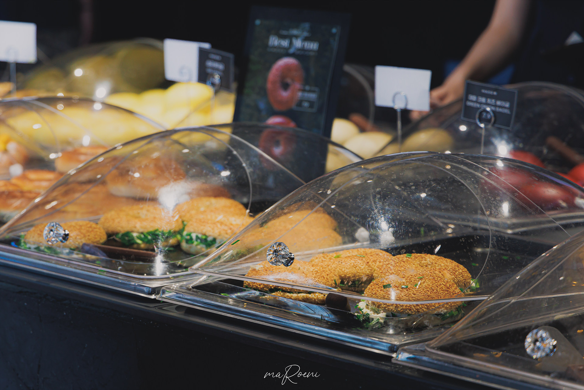 솔직히 말해서 메이드림의 빵 비쥬얼은 최상급이었다. 그중에서 대파 크림 치즈 베이글은 여러 인플루언서들이 추천했던 메뉴인 만큼 기대가 컸었는데, 막상 집으려고 보니 가격때문에 움찔하게 되더라. 진열된 빵들의 가격은 기본적으로 8,000원 이상.. 이정도 규모에서 이정도 인건비를 감당하려면 어쩔 수 없겠지 하는 마음으로 조심스럽게 빵을 쟁반에 올려놓았다.