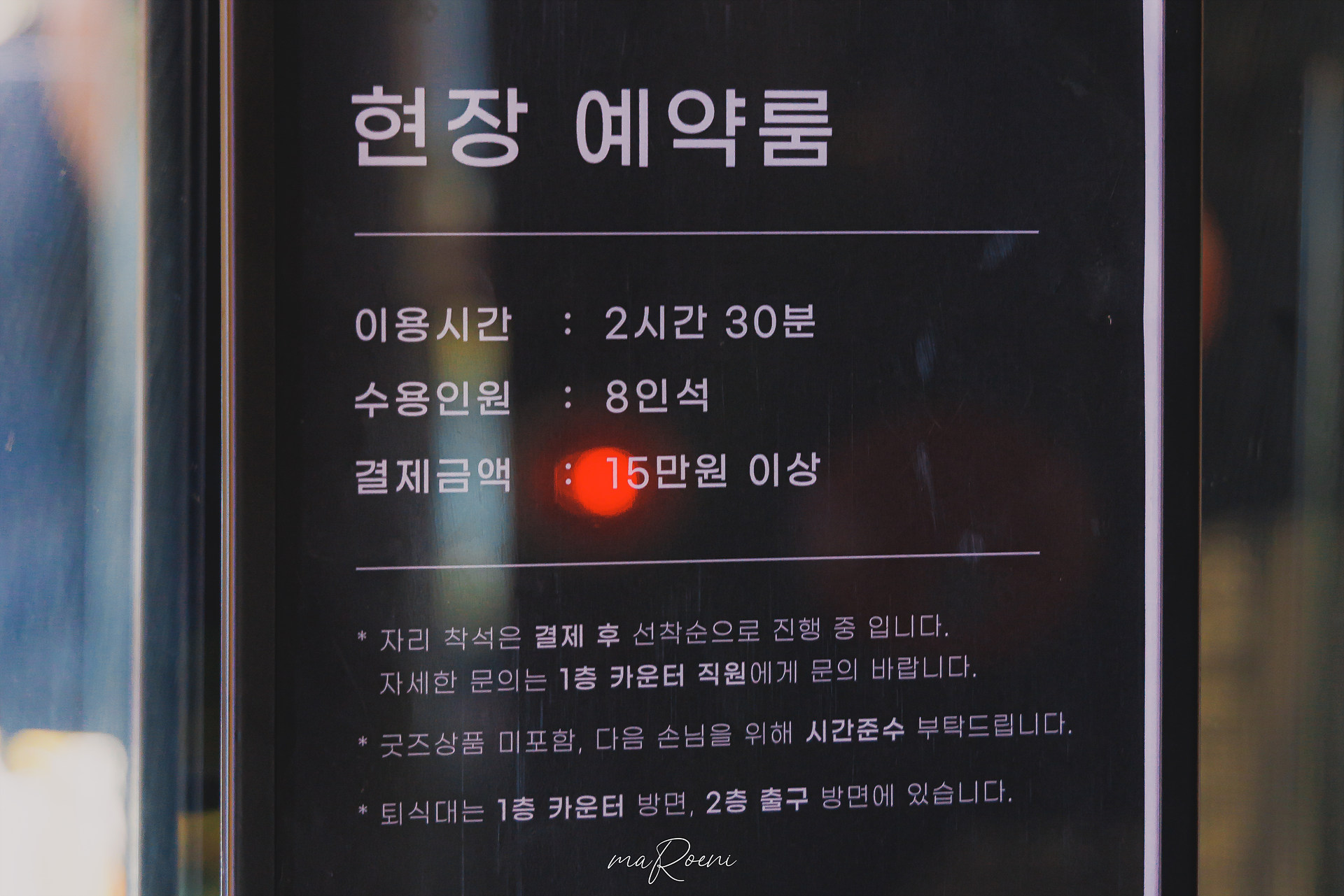 내가 가보지 못한 공간들은 현장 예약룸이라는 유료존이었는데, 처음엔 "누가 이돈주고 여길 들어가냐ㅋㅋ" 싶다가 우리가 주문한 계산서를 보니깐 "2명이서 3만원이 넘어가는걸 보면 8인이면 15만원이 가능하기도 하겠구나" 싶더라.