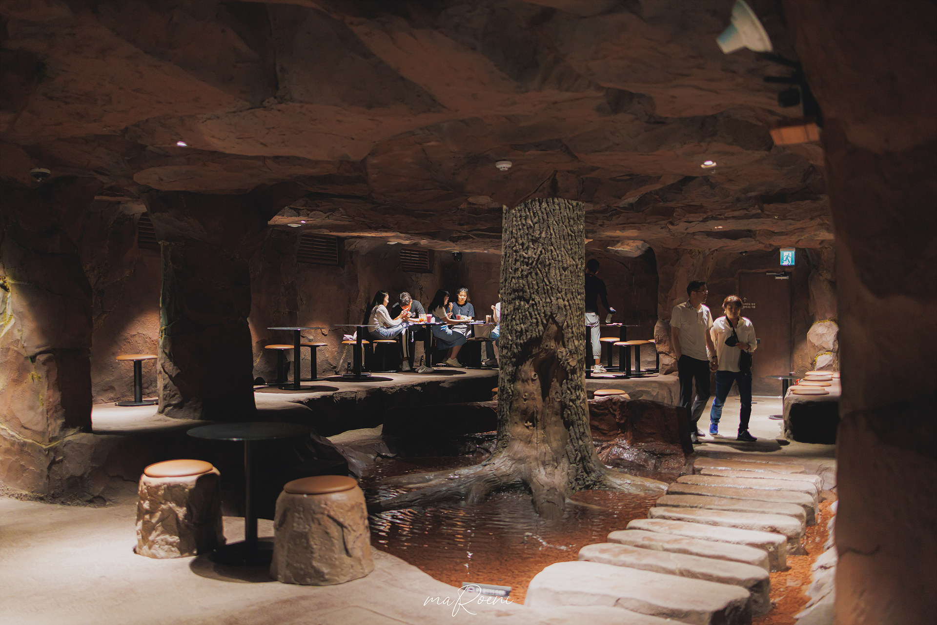 음료와 빵의 맛을 대충 음미했으니 영종도 교회 카페 메이드림의 인테리어나 구경해 보기로 했음. 사실 이게 메인이니깐! 아무튼 위 장소는 1층으로 커피를 주문하는 곳 옆에 있는 통로를 통해 진입할 수 있음. 나무 기둥 아래에 물이 잔잔하게 깔려있고 그 주변으로 테이블이 놓여져있음. 예쁘긴 예뻤는데, 교회라는 메인 키워드에 어울리지 않는 공간이라고 느껴졌음.