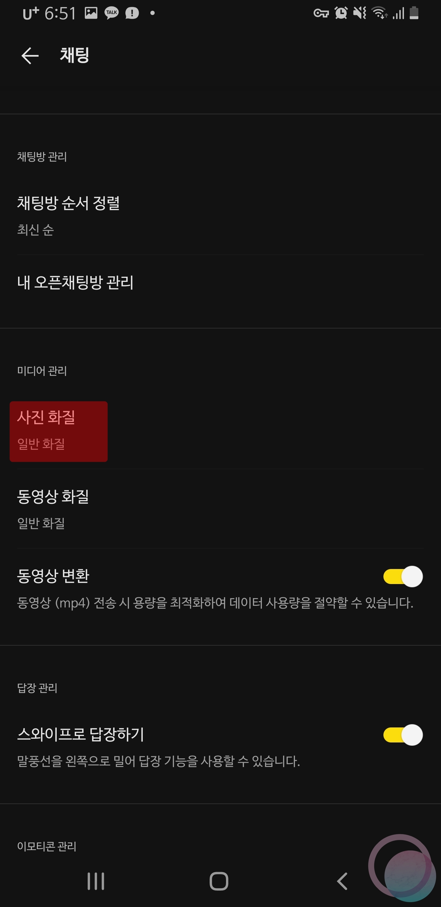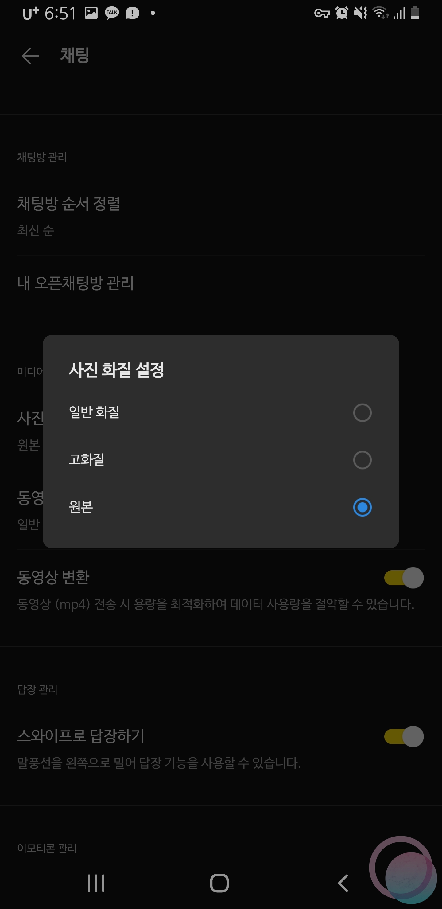 카카오톡 이미지 전송 화질 설정 방법