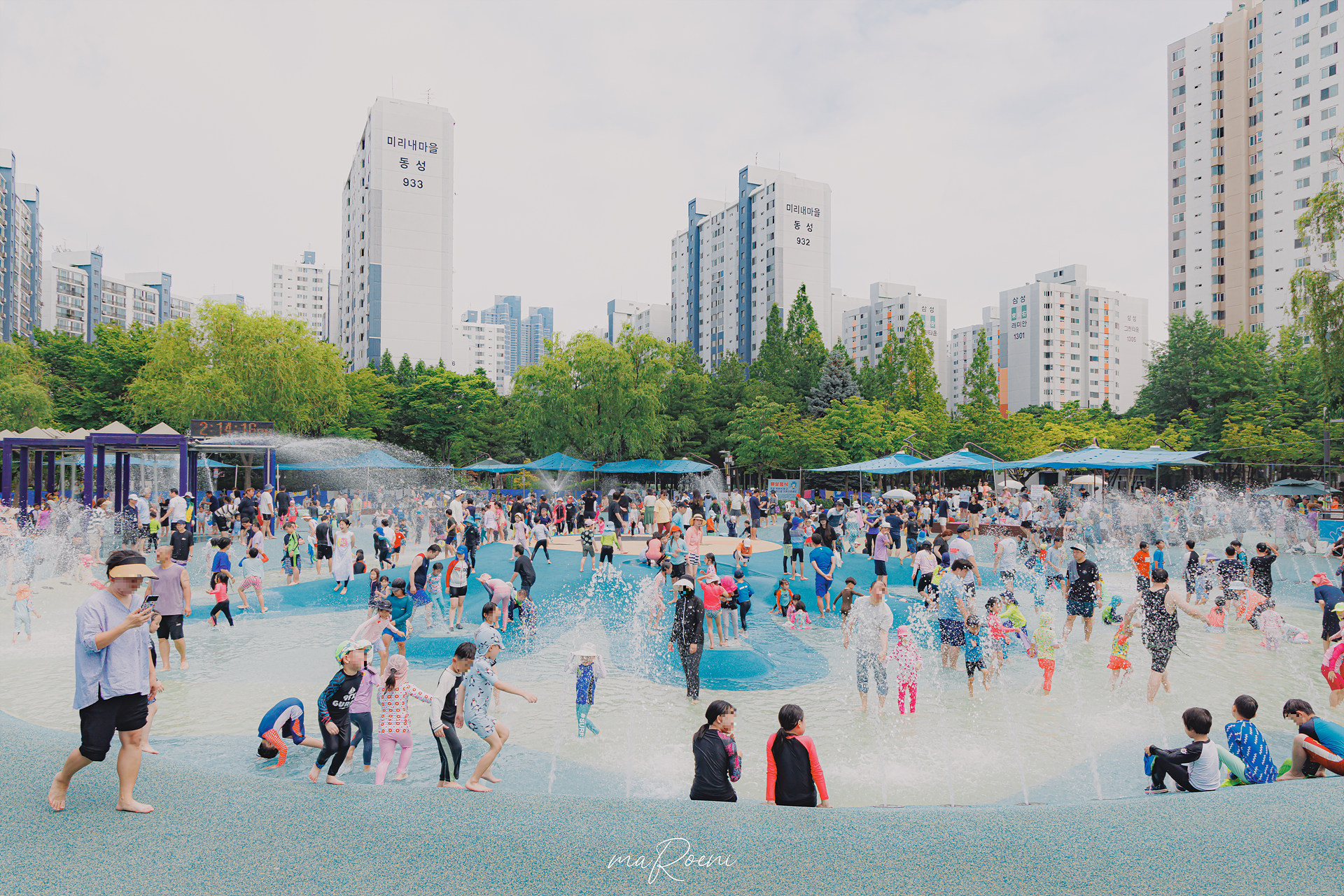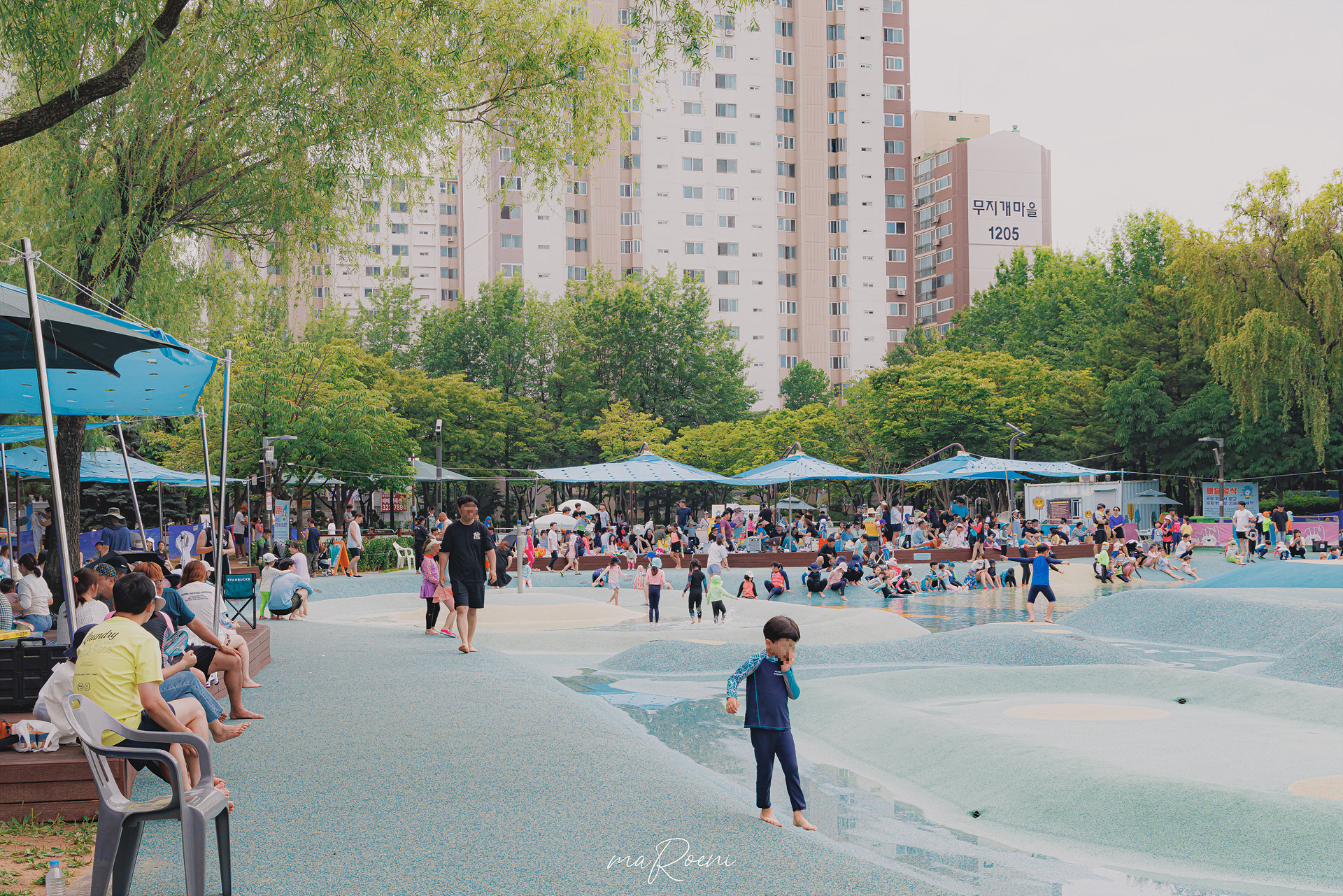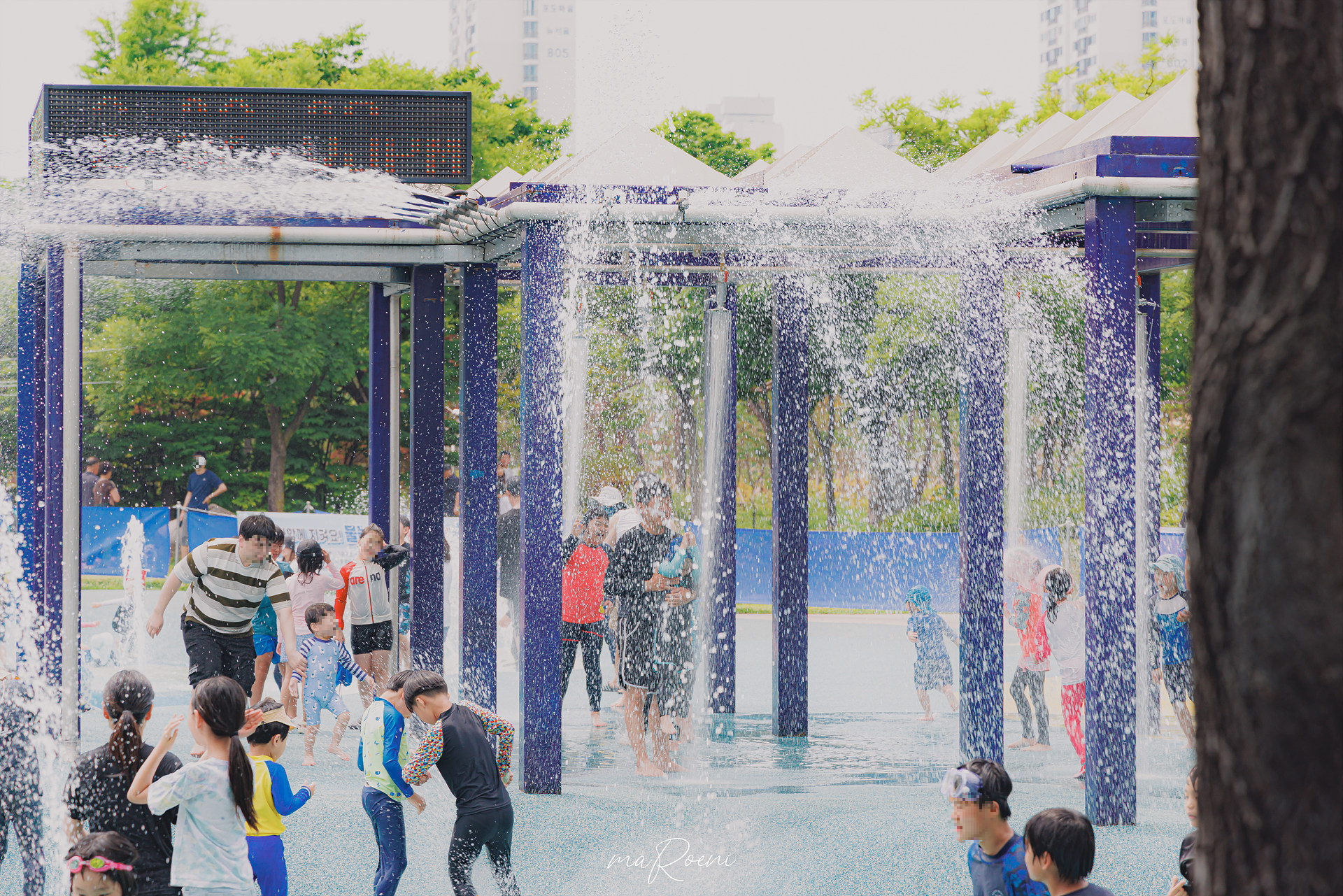 이미 아이를 가지고 있는 친구들은 이 시기에 워터파크나 물놀이장을 찾아가느라 바쁘다고 하던데, 나는 아직 아이가 없어서 그런가.. 한가로이 사진이나 찍으러 다니는 중이시다. 아무튼, 잠잠했던 겨터파크가 개장할 정도로 뜨거운 태양이 내리쬘무렵.. 부천에서는 아이들이 자유롭게 뛰어놀 수 있는 부천 중앙공원 물놀이장이 오픈하는데, 이거이거.. 인기가 장난 아니다.