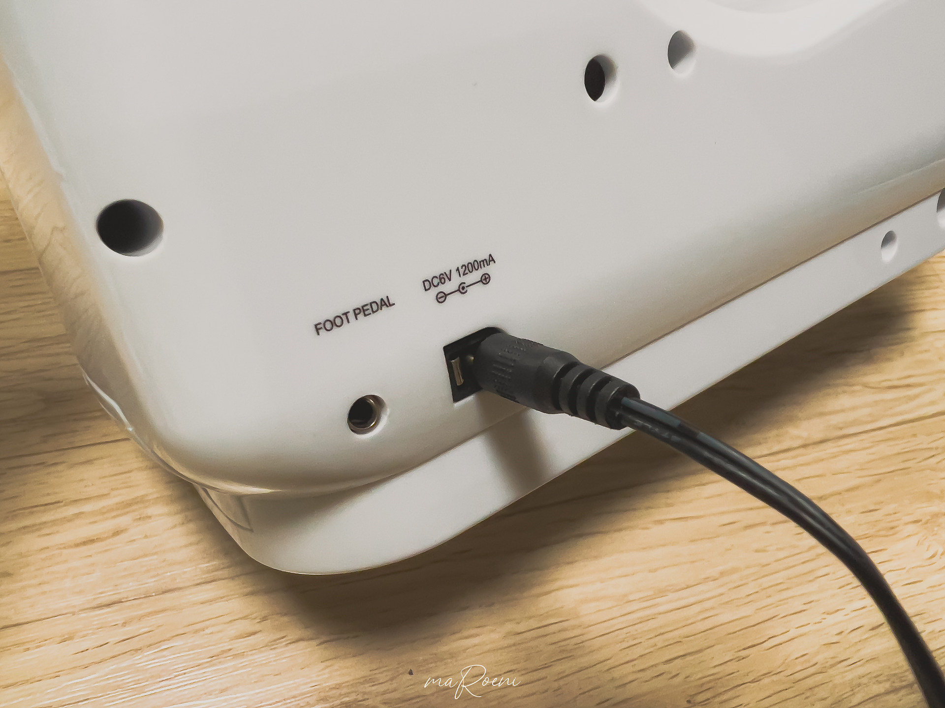 혼스 미니재봉틀은 배터리를 넣어서 사용하거나, 어댑터를 연결해서 사용할 수 있다. 보통 재봉틀은 지정된 자리에서 사용하기 때문에 배터리를 넣어서 사용할 상황이 있을까 싶지만 있어서 나쁠건 없다.