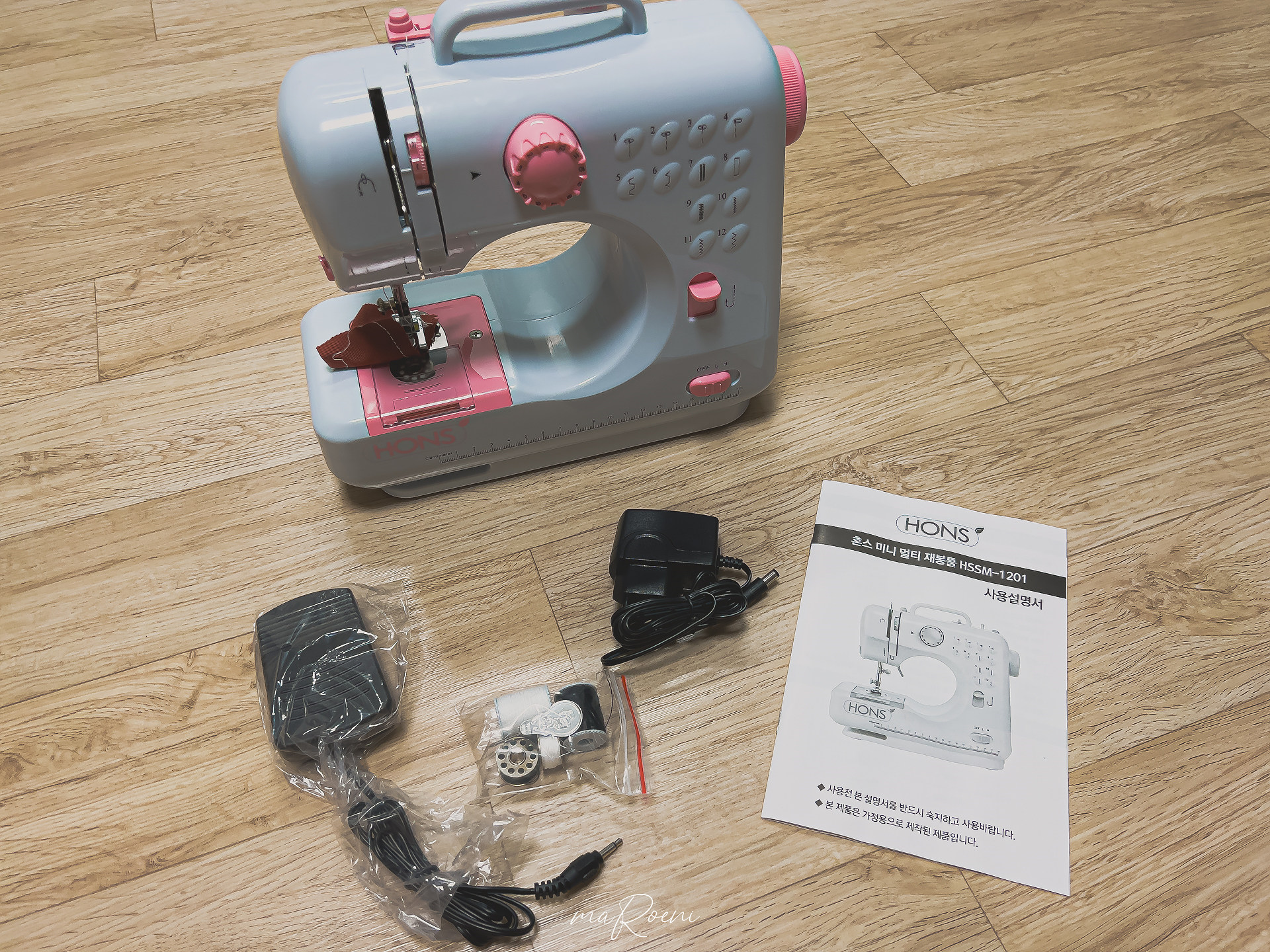 그래서 구매한 제품! 혼스 한땀한땀 프로 미니재봉틀(HSSM-1201)이라는 모델로 쿠팡에서 59,900원을 주고 샀다. 태어나서 단 한번도 재봉틀을 사용해 본 적이 없어서 과연 이 제품을 잘 사용할 수 있을까 싶었는데, 지금은 잘 적응해서 요긴하게 사용하고 있는 중이다.