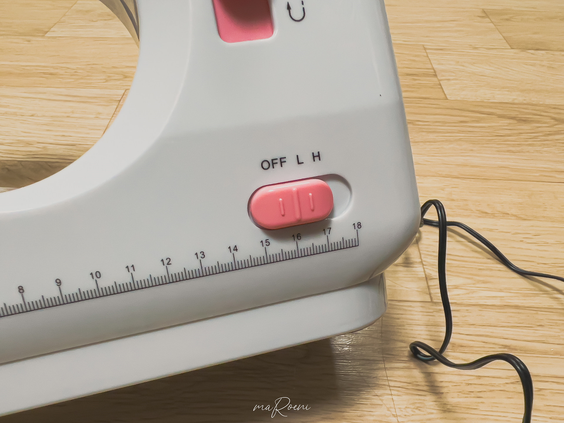 하단부에서는 수동(OFF), 느린자동(L), 빠른자동(H) 모드를 설정할 수 있다. 전원을 연결할 경우엔 무조건 OFF로 설정을 해두어야 하며 페달을 사용할 경우 역시 OFF로 설정해야만 한다. 만약 L이나 H로 설정한 후 전원을 연결할 경우에는 바늘이 혼자 우다다다 움직일 수 있으니 주의하고 또 주의하자.