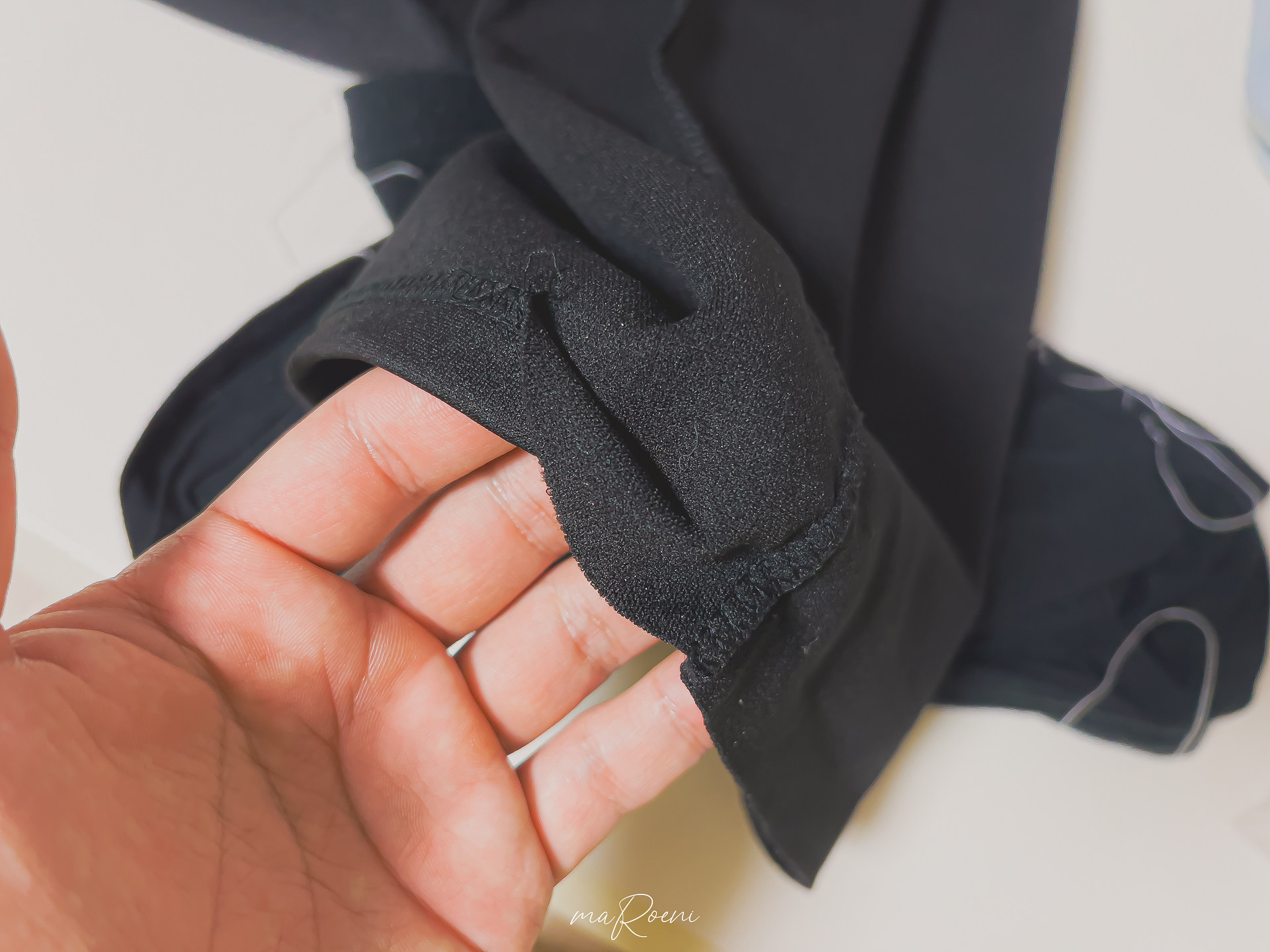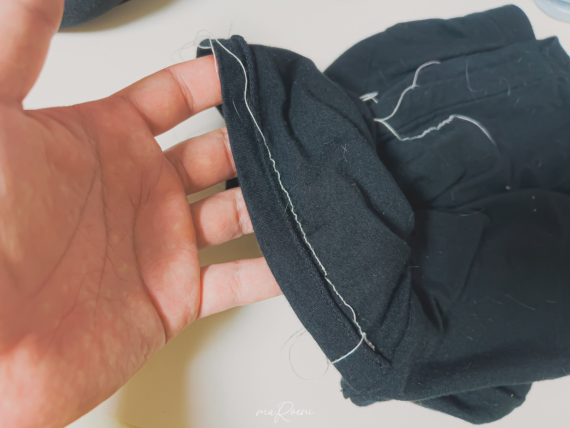 적당히 연습하고 나서 밑단이 풀려버린 와이드 팬츠를 수선해 봤다. 1번 박음질 모드로 천천히 페달을 밟아봤는데, 살짝 틀어지긴 했지만 처음 시도한 것 치고는 상당히 잘 나온 것 같아서 기분이 좋았다.