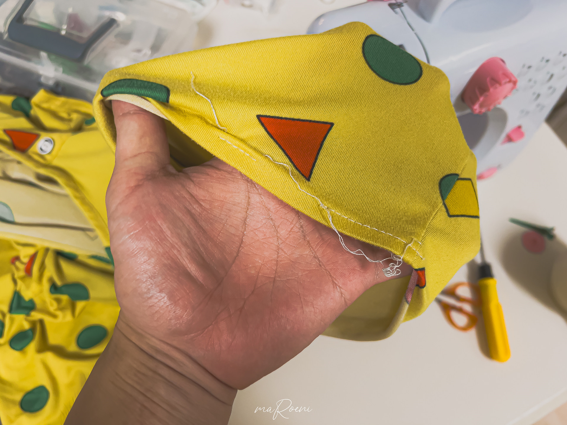 재질이 두꺼운 것들은 잘 박히는 것 같은데 잠옷같이 부들부들한 재질은 실이 살짝살짝 빠지더라. 아마도 실의 장력이 강해서 그런듯?