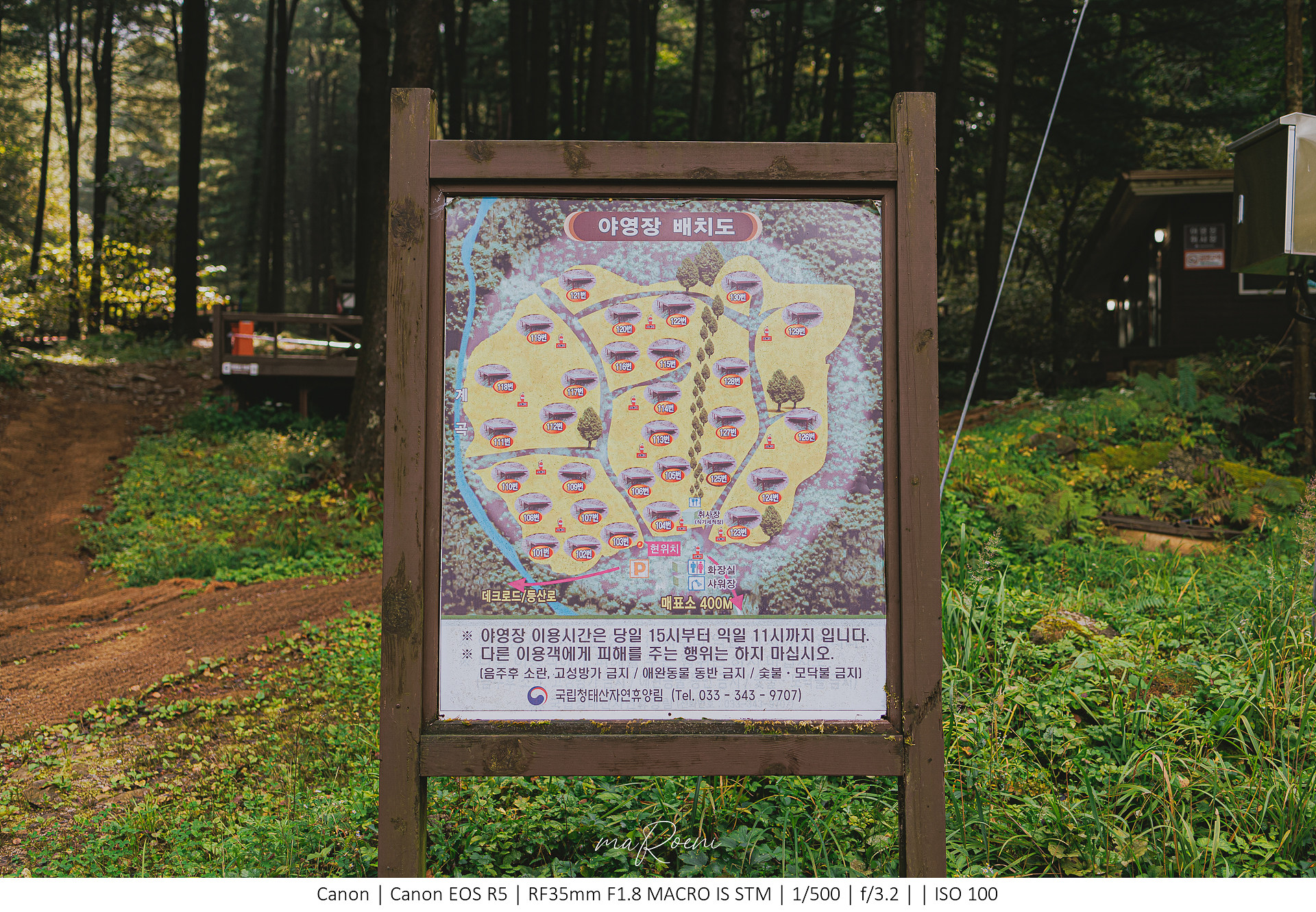 한 10분 올라가니깐 청태산 자연휴양림 야영장이 등장했다. 이곳 야영장은 약 30개 정도이며 모두 야영데크로 만들어져있다고 한다. 나는 캠핑에 관심이 없어서 이런 캠핑장을 알아볼 때 어떤 것을 중요하게 봐야 하는지 잘 몰랐는데 캠핑광인 동생이 말하기를 야영데크의 크기와 전기 사용 유무정도라고 하더라. 인터넷으로 찾아보니깐 크기는 360x360 정도의 크기고 전기는 600w 이하로 사용 가능하다고 하니 참고하시길!