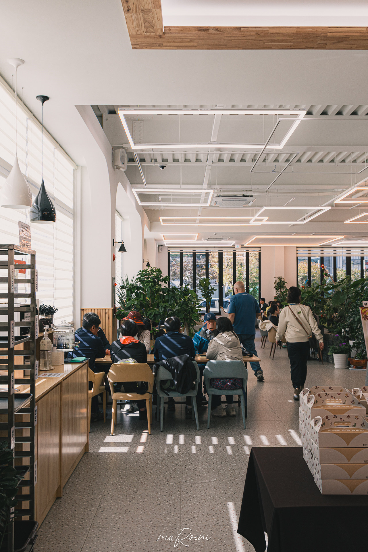 내가 이만한 카페를 보유하고 있고, 갬성쪽으로 소비자들에게 접근한다면 이렇게 창문 옆에 테이블만 잔뜩 배치하는게 아니라, 가운데에 물 웅덩이 하나 만들어놓고, 주변에 화단을 만들어서 사람들이 인테리어에 조금이라도 더 관심을 가지고 집중할 수 있게 만들었을 텐데 여긴 감성보다는 회전율을 더 생각하여 테이블만 잔뜩 배치한 인테리어를 구상한 모양이다. 대형 카페를 많이 다녀봐서 그런가... 조금 아쉽긴 했었음.