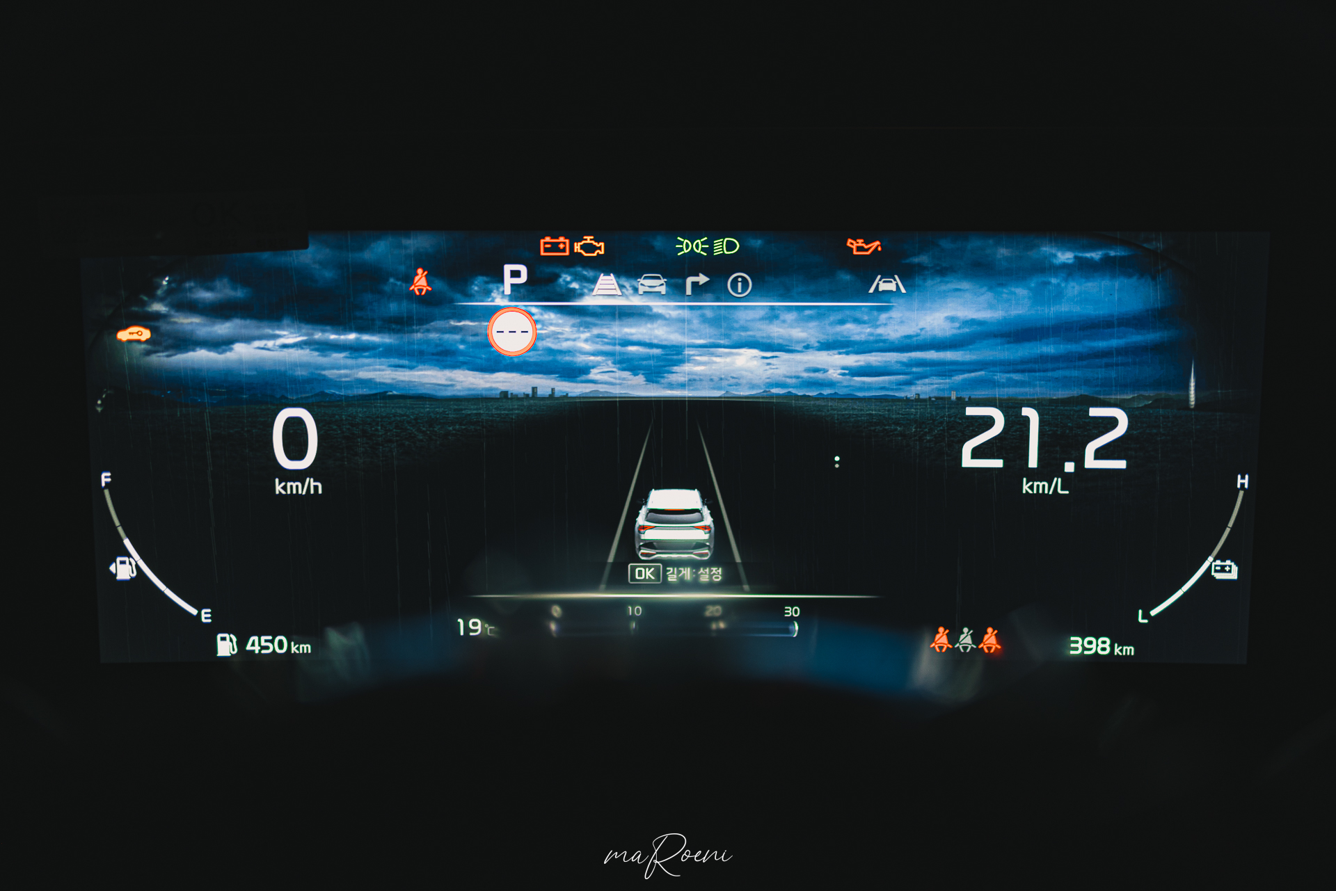 주행감은 확실히 좋다고 느껴짐. 왜냐고? 내가 탔던 차들은 제주도에서 굴러다니는 렌트 경차라던가 쏘카나 그린카에서 굴려먹던 경차였기 때문이지요. 스포티지 하이브리드가 출발할 때는 EV모드로 조용~히 출발하고 가속할 때는 1.6터보라서 시~원하게 나가니깐 외제차 안부럽더라.(는 구라고 많이 부럽다..)
