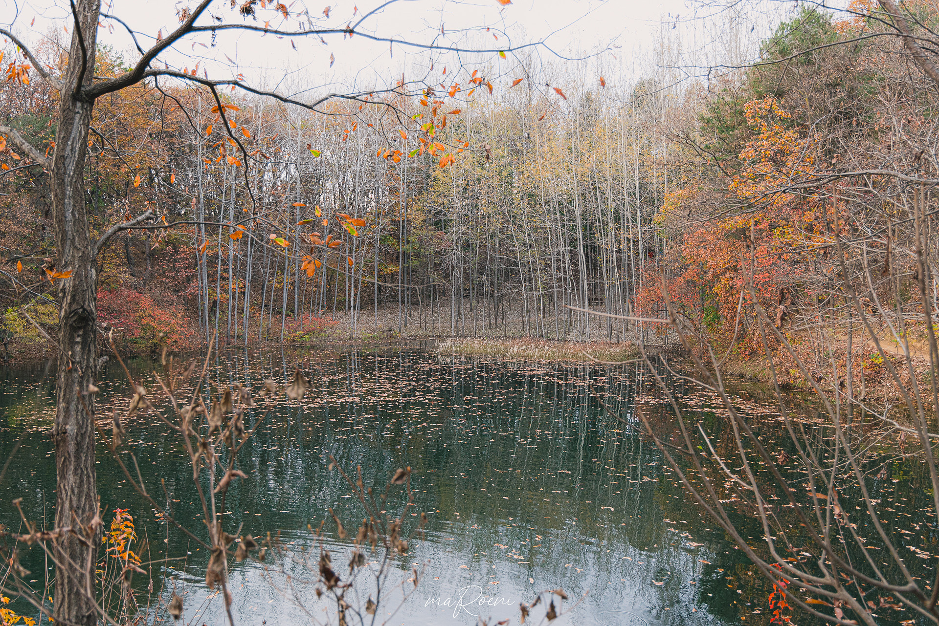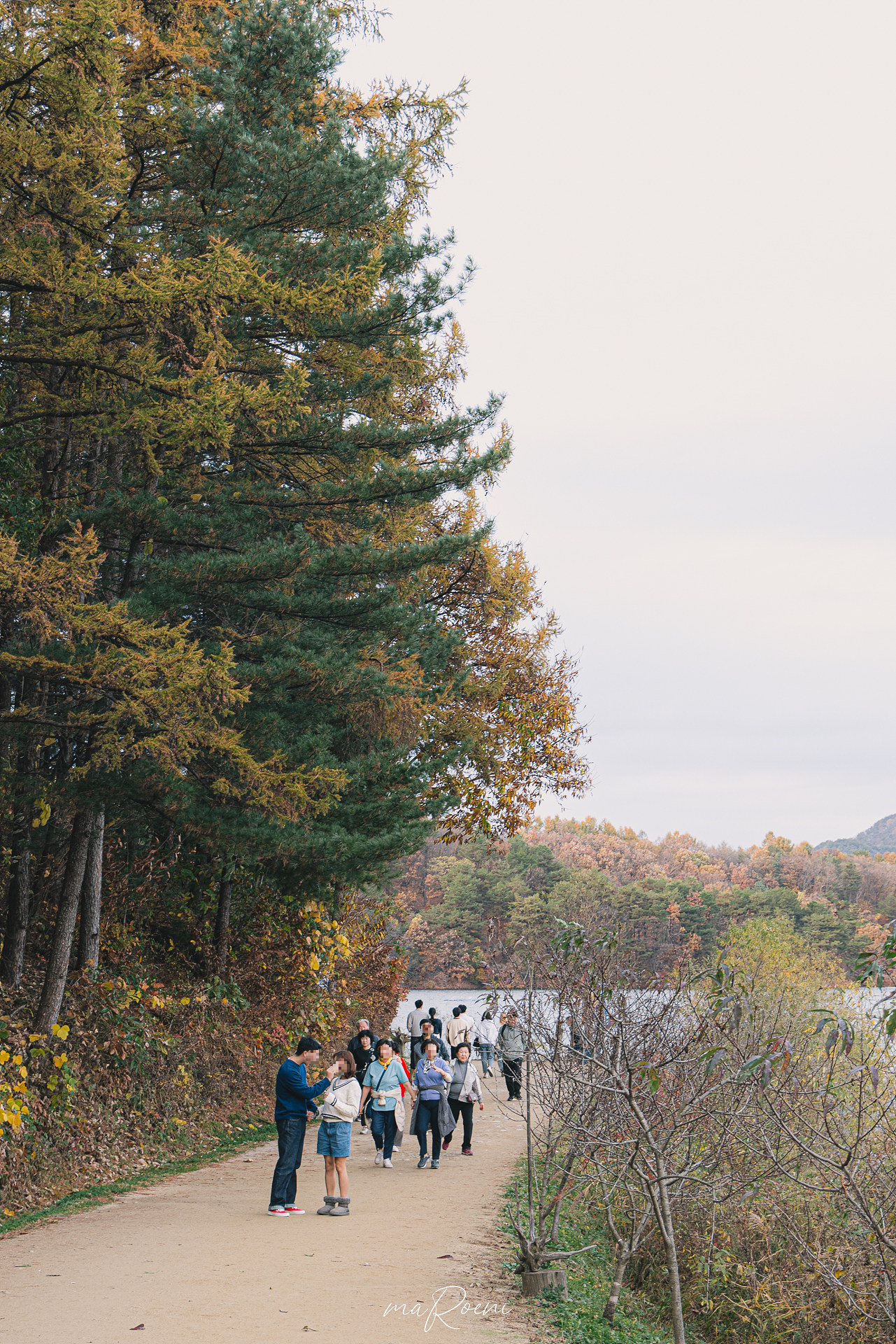 요 사진만 후딱 찍고 나서 호다닥 B코스로 달려나왔음둥. 날씨만 맑았었다면 정말 멋진 사진들을 남길 수 있었을 텐데, 너무 흐려서, 시간대도 너무 늦어서 만족스러운 사진을 남기지 못했다. 비록 사진은 구리지만 내가 봤던 횡성호수길 5코스 둘레길은 호수에 반영되는 울긋불긋한 단풍도 아름다웠고 깊이를 알 수 없어서 멍하니 바라볼 수밖에 없었던 호수도 매력적이었기에 기회가 된다면 또 한 번 방문해보고 싶은 장소다.